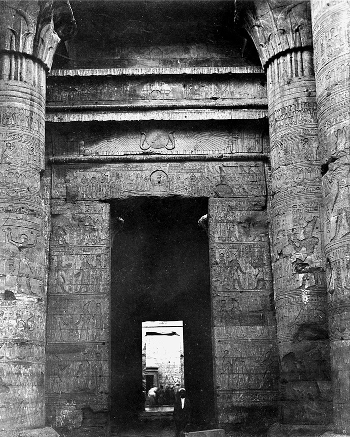 Fotografi. Vy från pelarsalen, Edfu, Egypten.