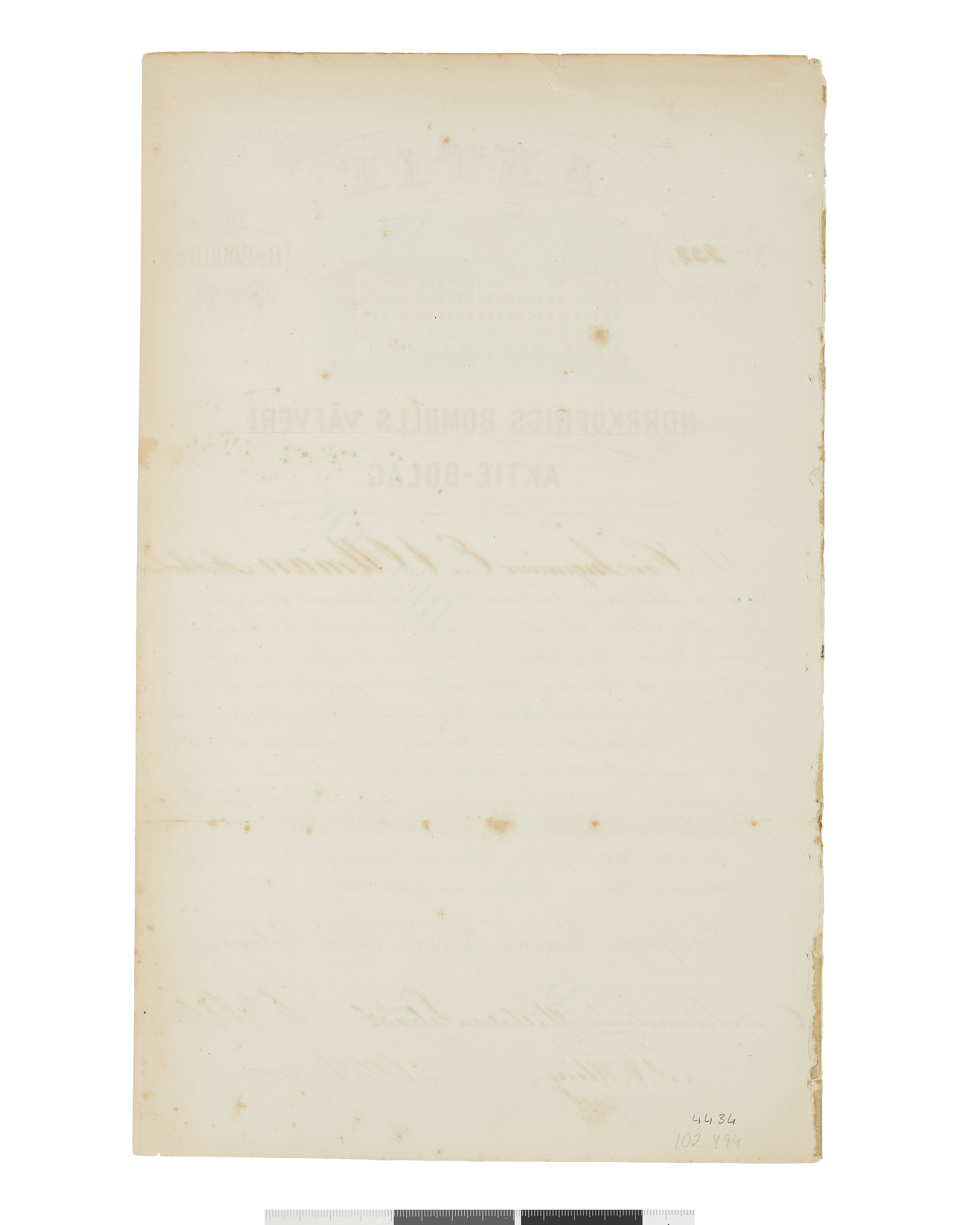 Aktie no 252 Norrköpings bomulls väfveri Aktie-Bolag, Rdr 2000 Rmt