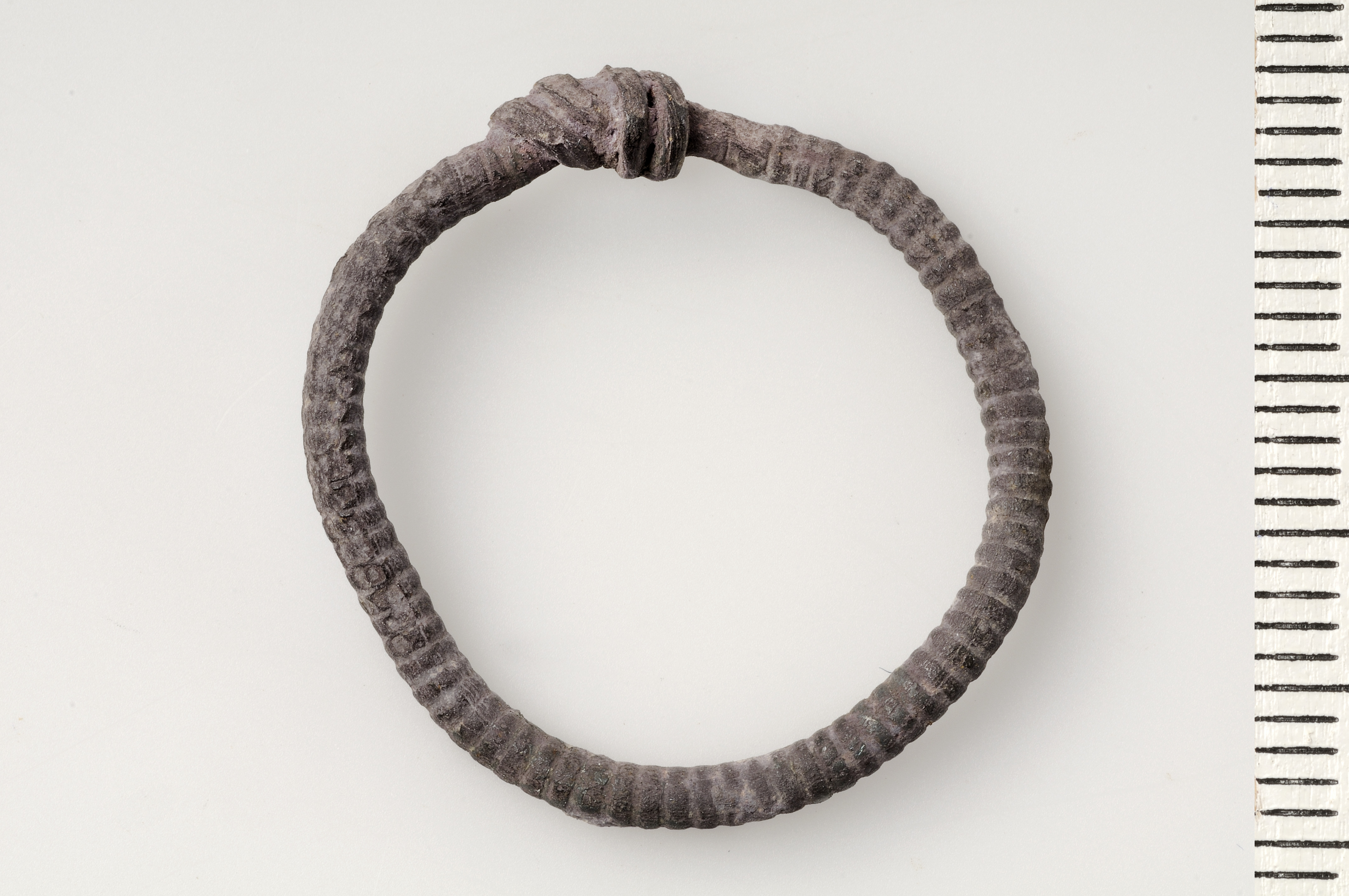 tvärstrierad silverring funnen nära saxen - sannolikt bärring till densamma.