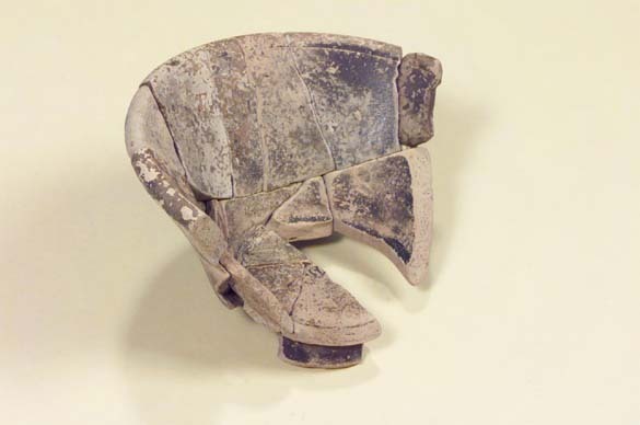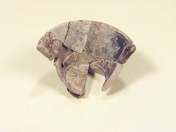 Dekor av två linjer på utsidan samt en linje på insidan vid mynningen. Del av tydbar stämpel i botten "CINTVSMIM". Cintimus var verksam som krukmakare i Lezoux i Centralgallien mellan 160-180 e.Kr. men funnen i en vendeltida grav