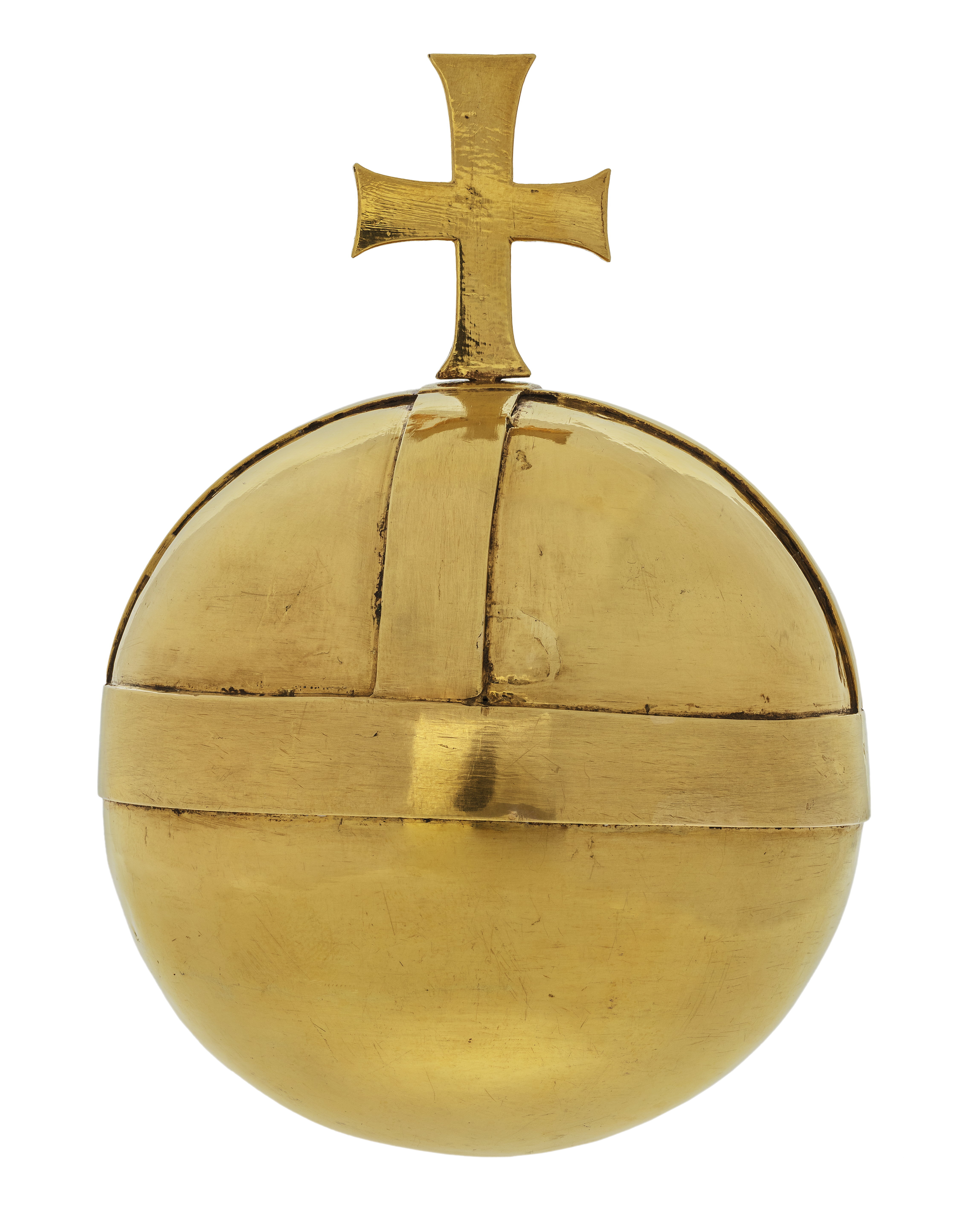 Riksäpple av guld, tillhörande Karl X Gustavs begravningsregalier (nr 47-53).