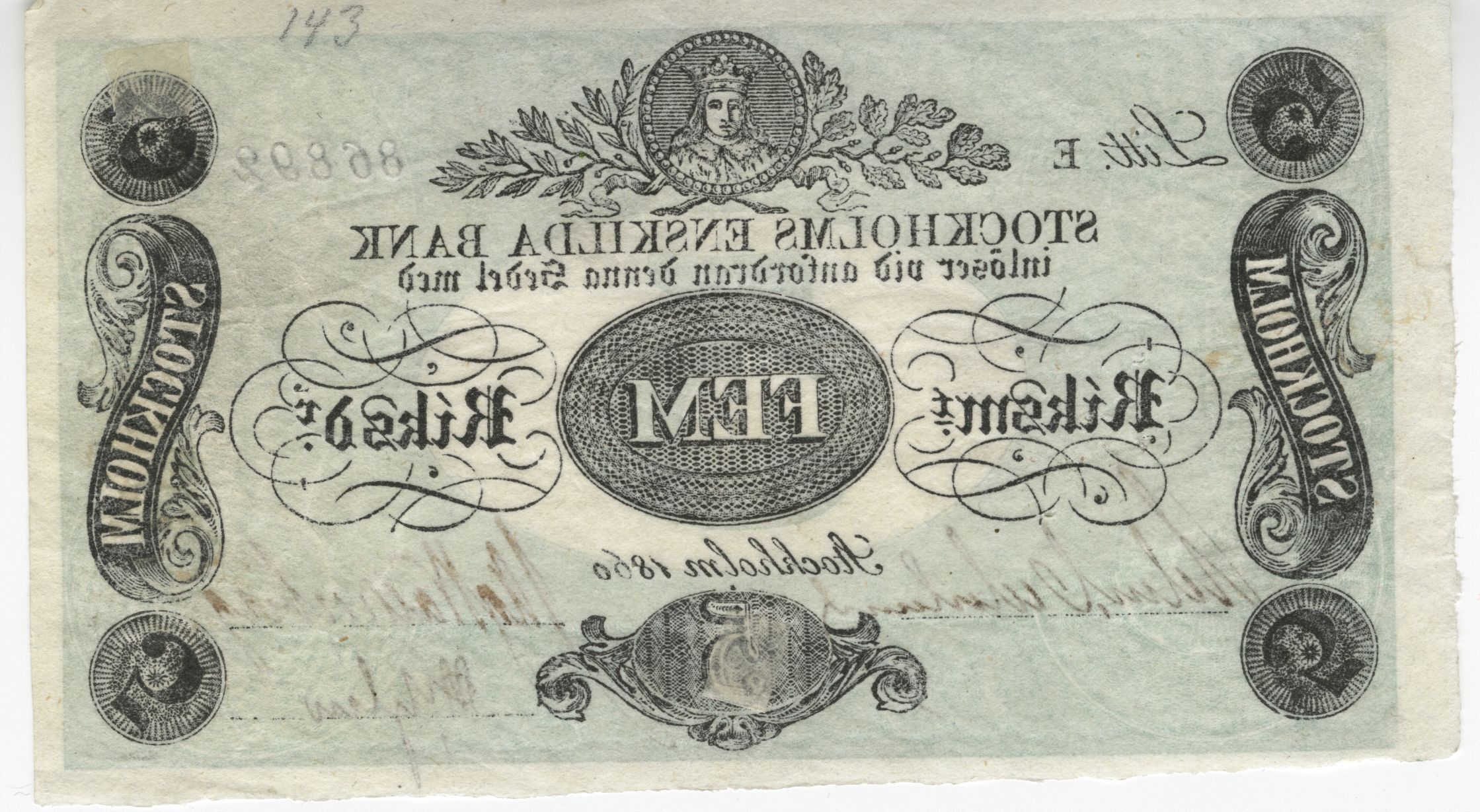 Upphov: Stockholms enskilda bank. Media: Bonnevier, Helena. Ekonomiska museet - Kungliga myntkabinettet/SHM, (PDM) Upphovsrätten till detta verk har gått ut och är därmed fritt att använda på alla sätt. Ange gärna upphovsperson om denne är känd.