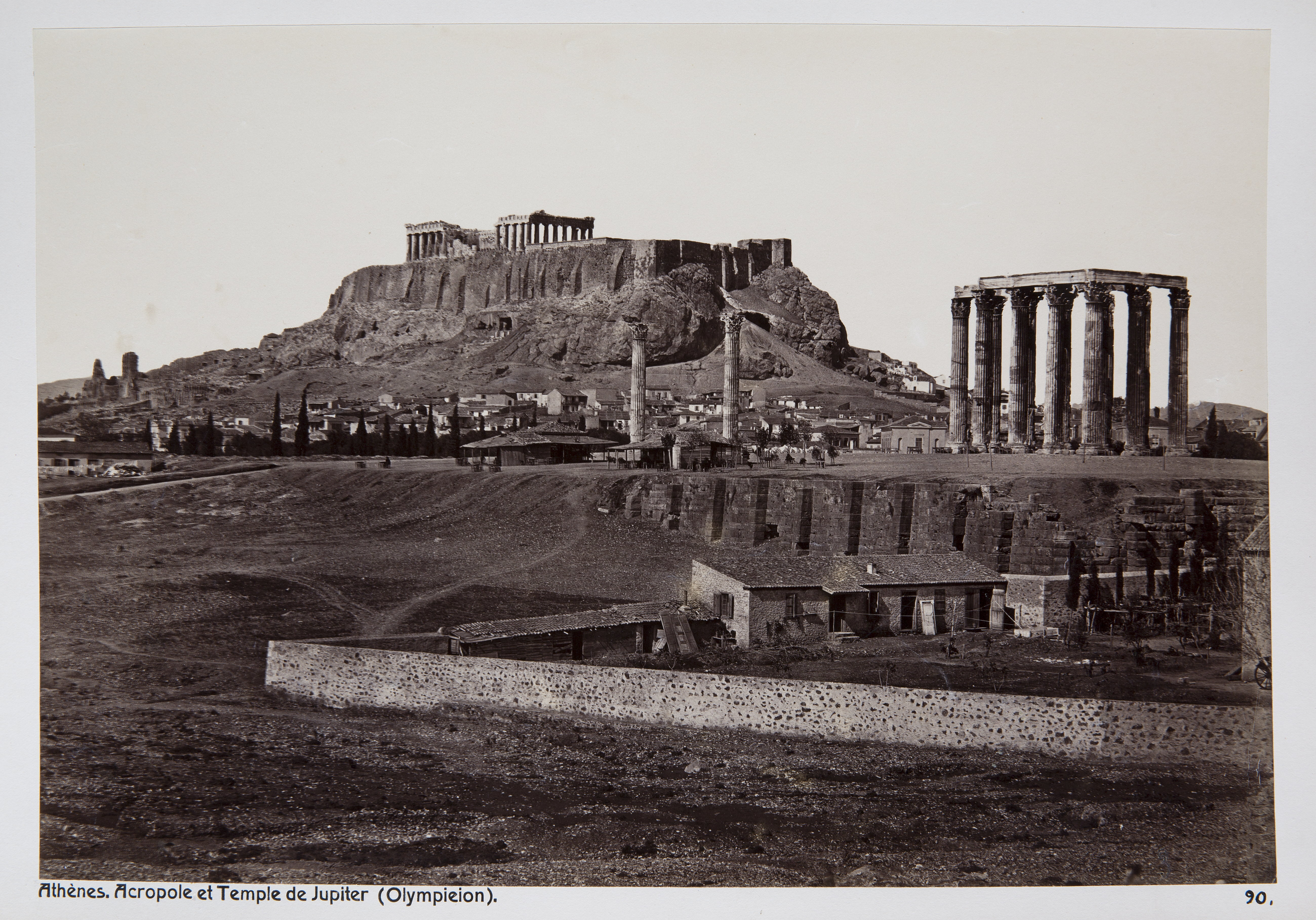 Zeustemplet (Olympeion) och Akropolis i Aten, Grekland. Text på originalet: "Athènes. Acropole et Temple de Jupiter (Olympieion)" Foto från resa genom Grekland, Makedonien och Serbien, 15 mars-6 juni 1896. Fotografierna LXVI:K.18.-147. är köpta av Wilhelmina von Hallwyl, f. Kempe på Korfu samt i Patras, Nafplion, Aten, Thessaloniki och Belgrad. Med på resan var maken Walther von Hallwyl och fröken Ida Uhse. Uppgifterna kommer från Ida Uhses reseanteckningar.
