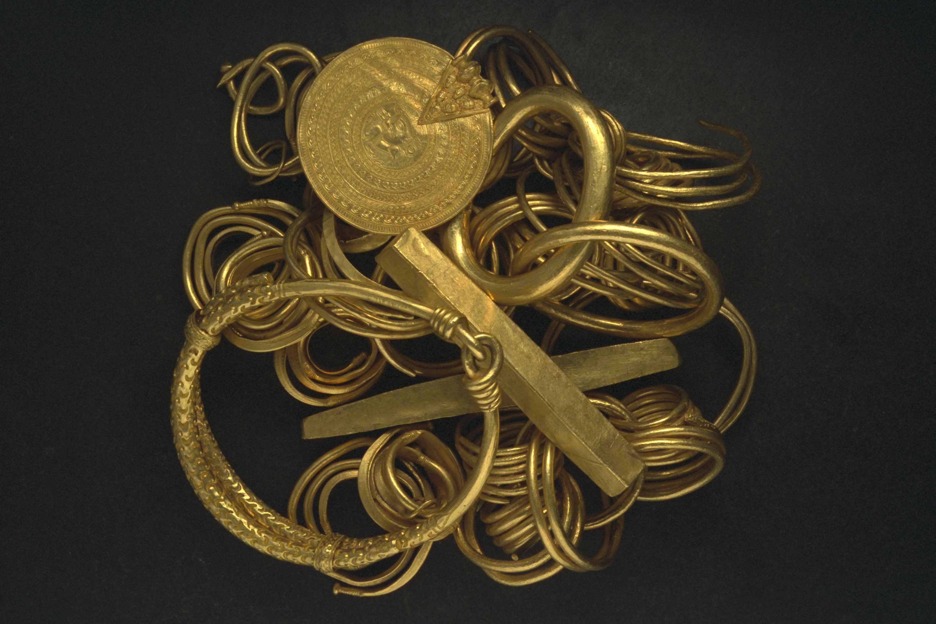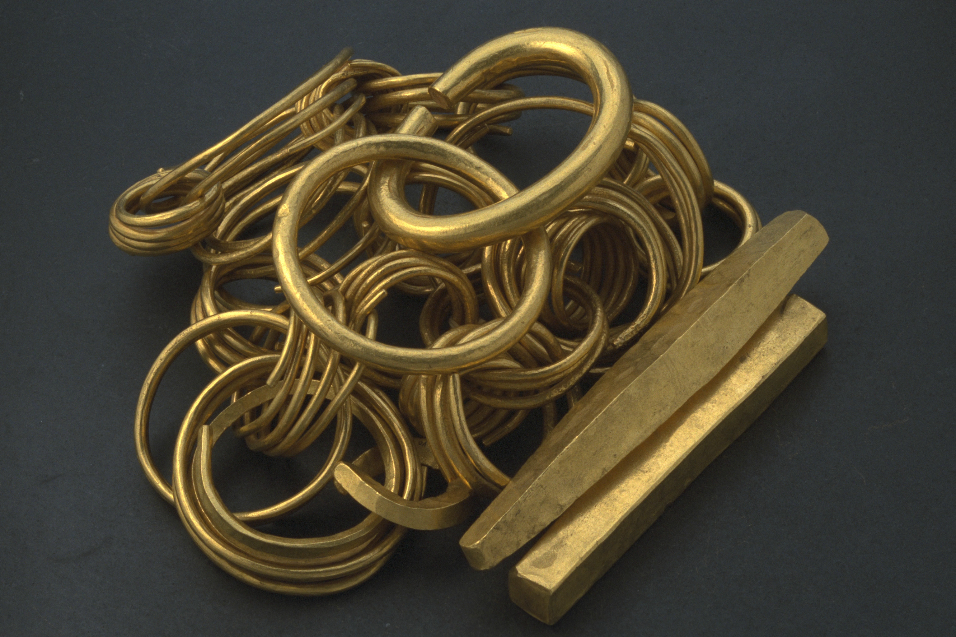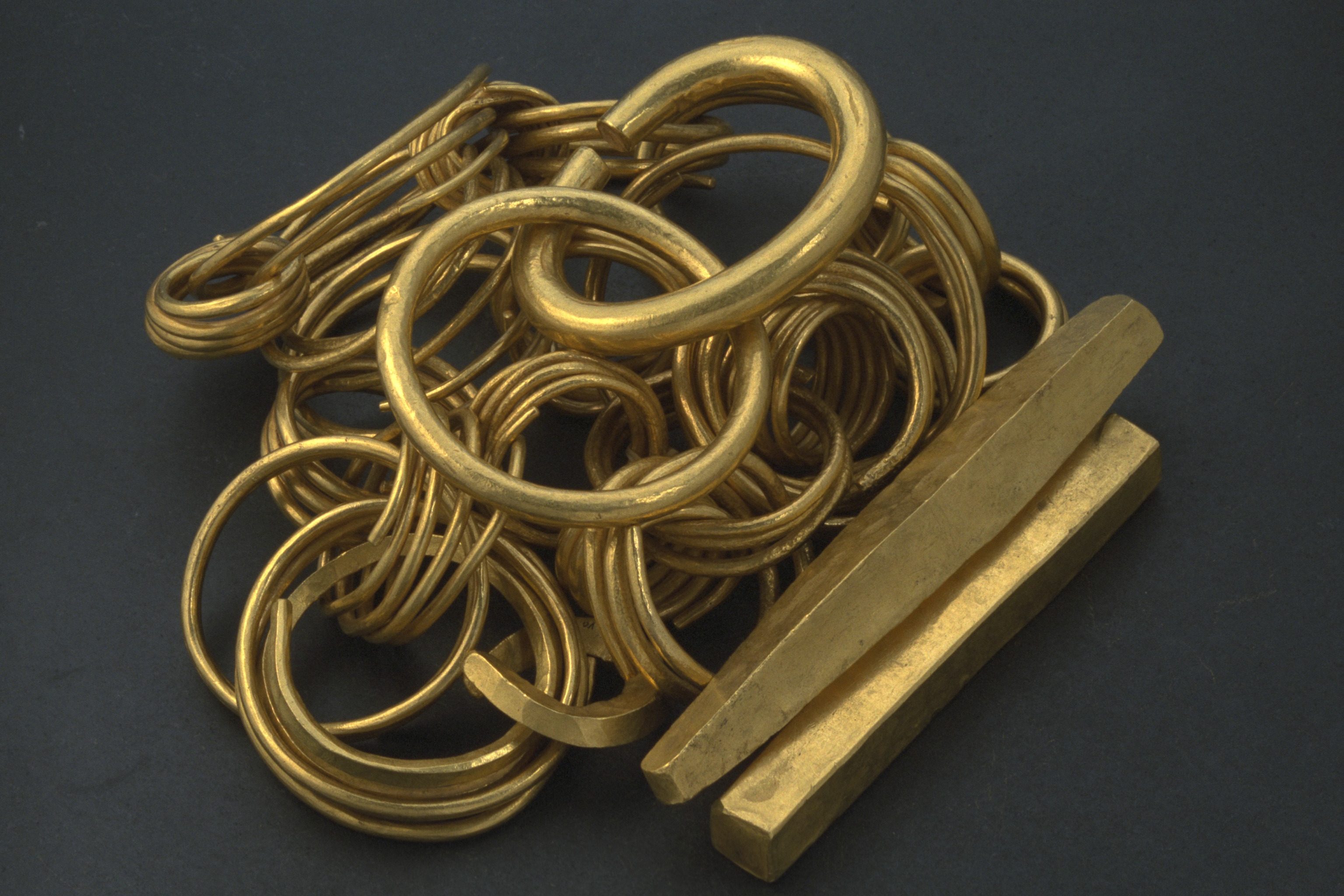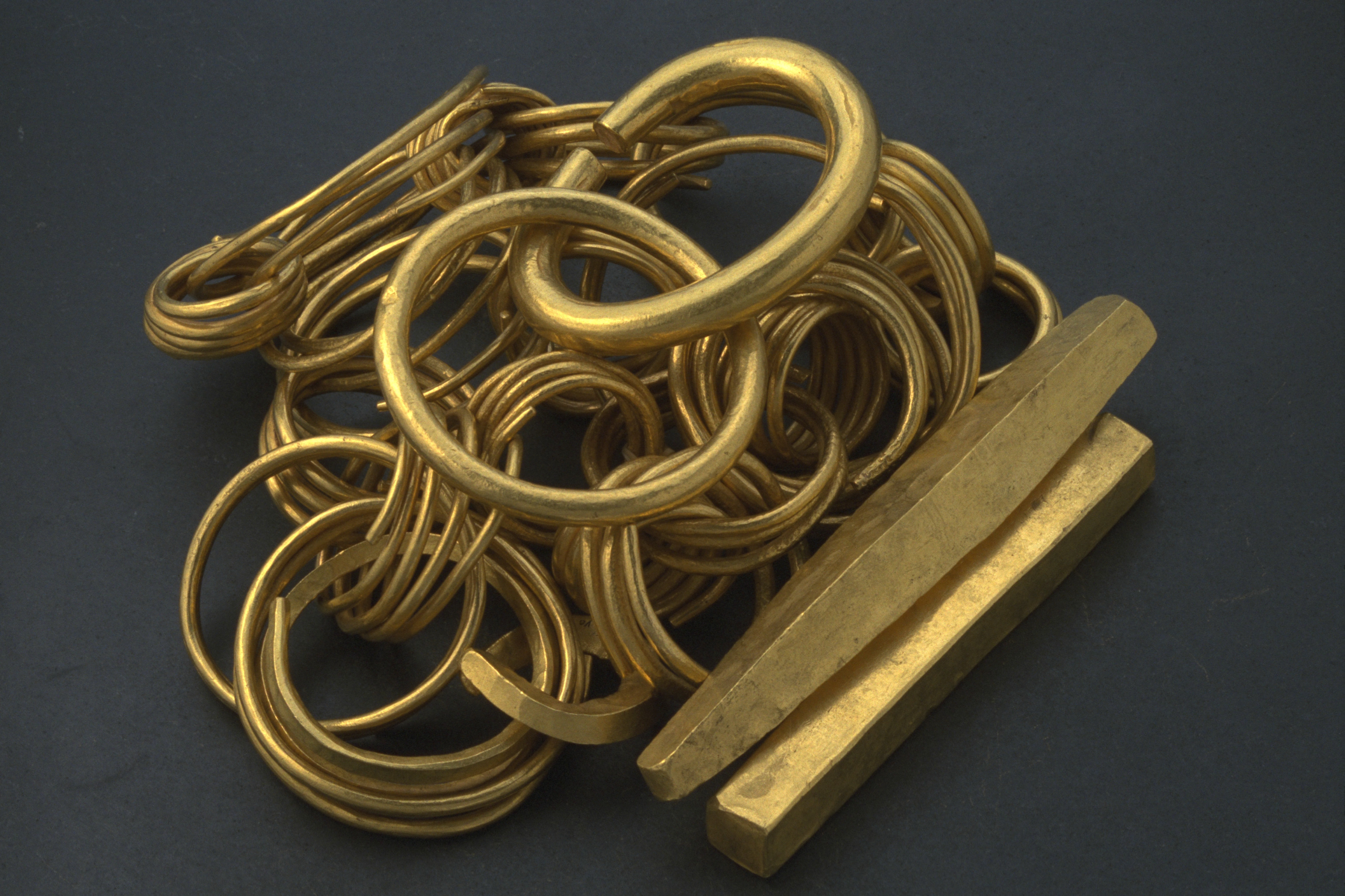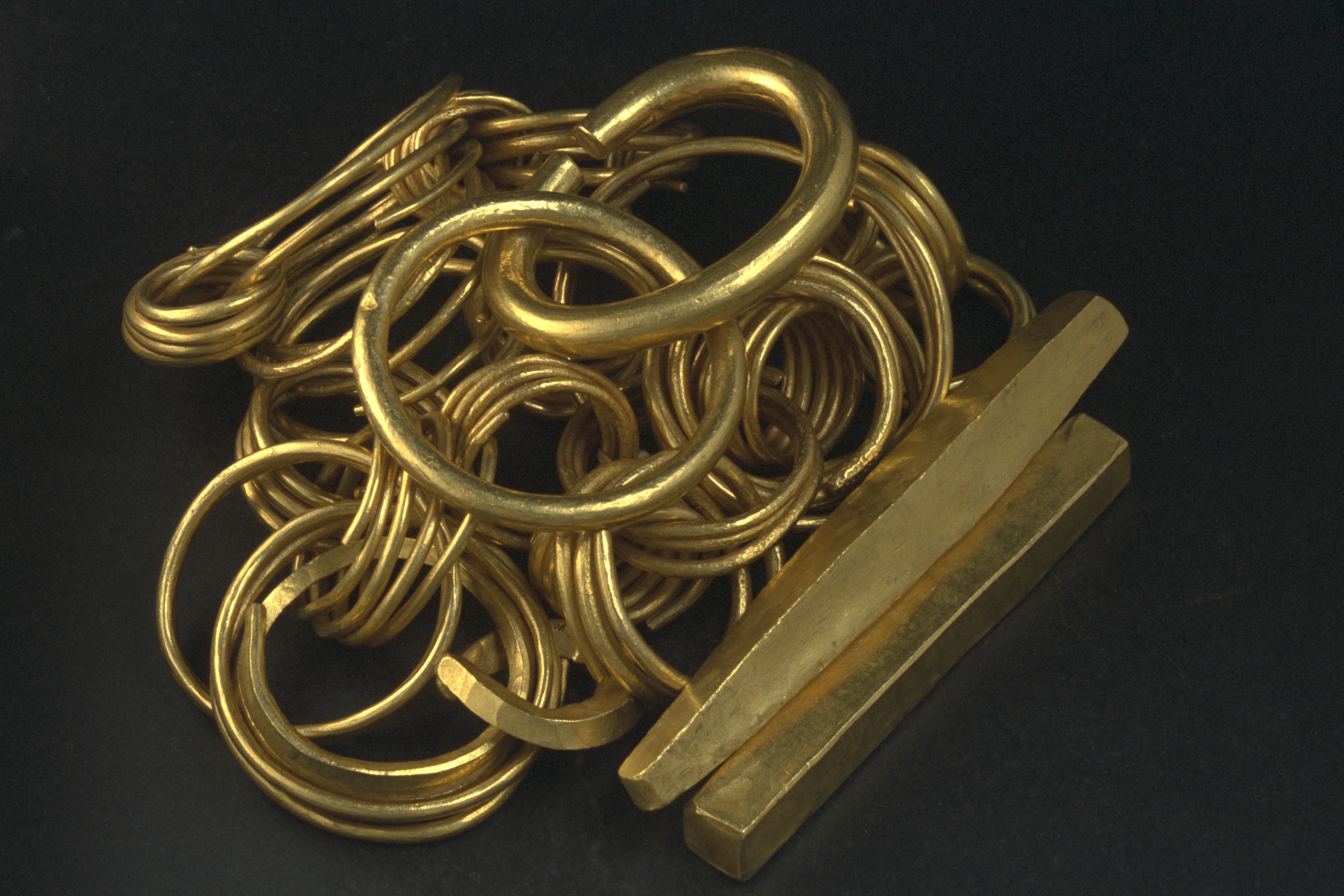 Kedjan består av 10 delar som utgörs av 8 sammanlänkade spiralringar och 2 massiva släta guldringar, varav en är en Kolbenarmring. De massiva släta guldringarna var ursprungligen sammanlänkade med spiralringarna.