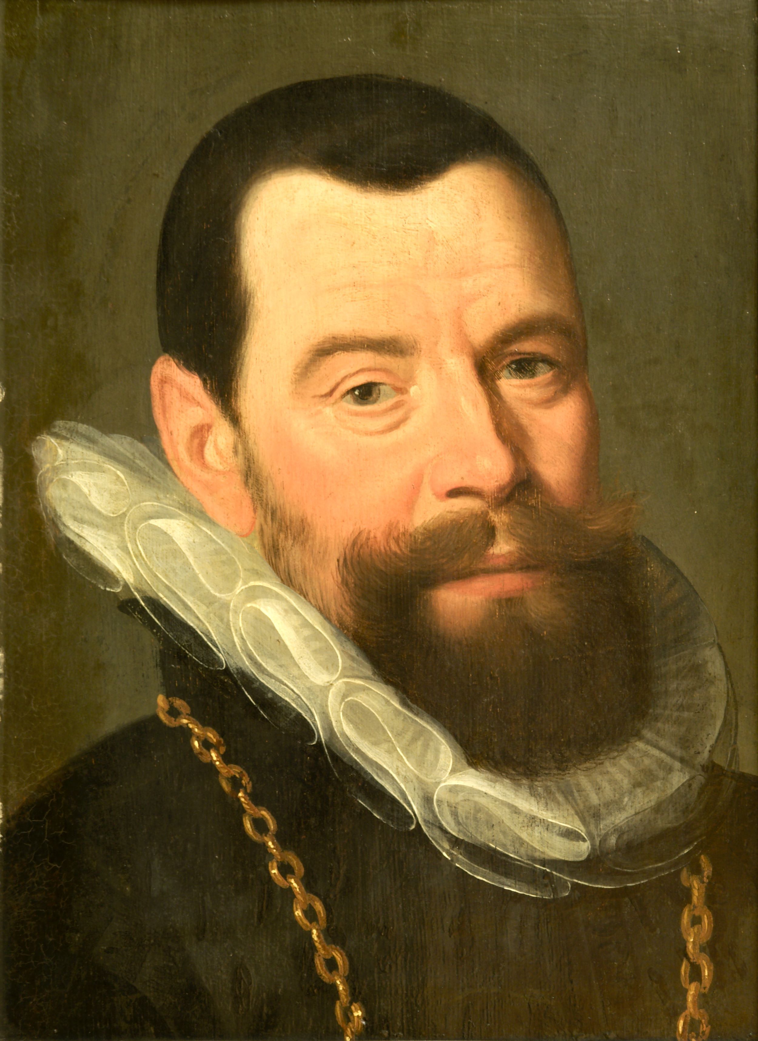 Målningen kan vara ett fragment av ett porträtt av civilgardet i Amsterdam. -*- This may be a fragment of a portrait of the Amsterdam militia.
