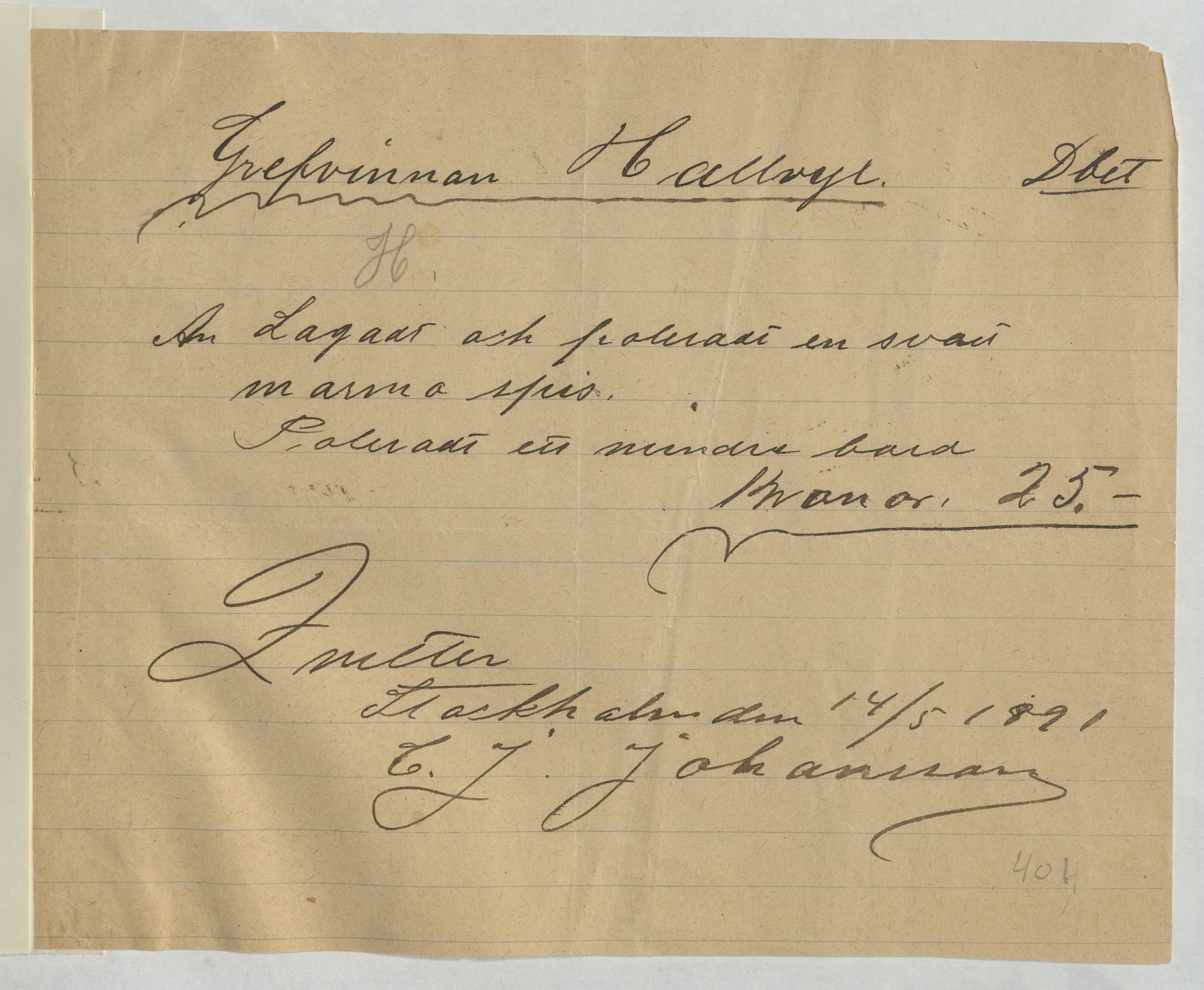 Kvitto från C. J. Johansson