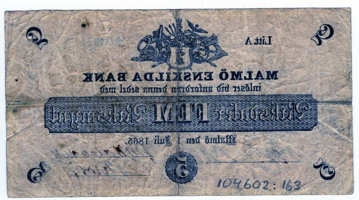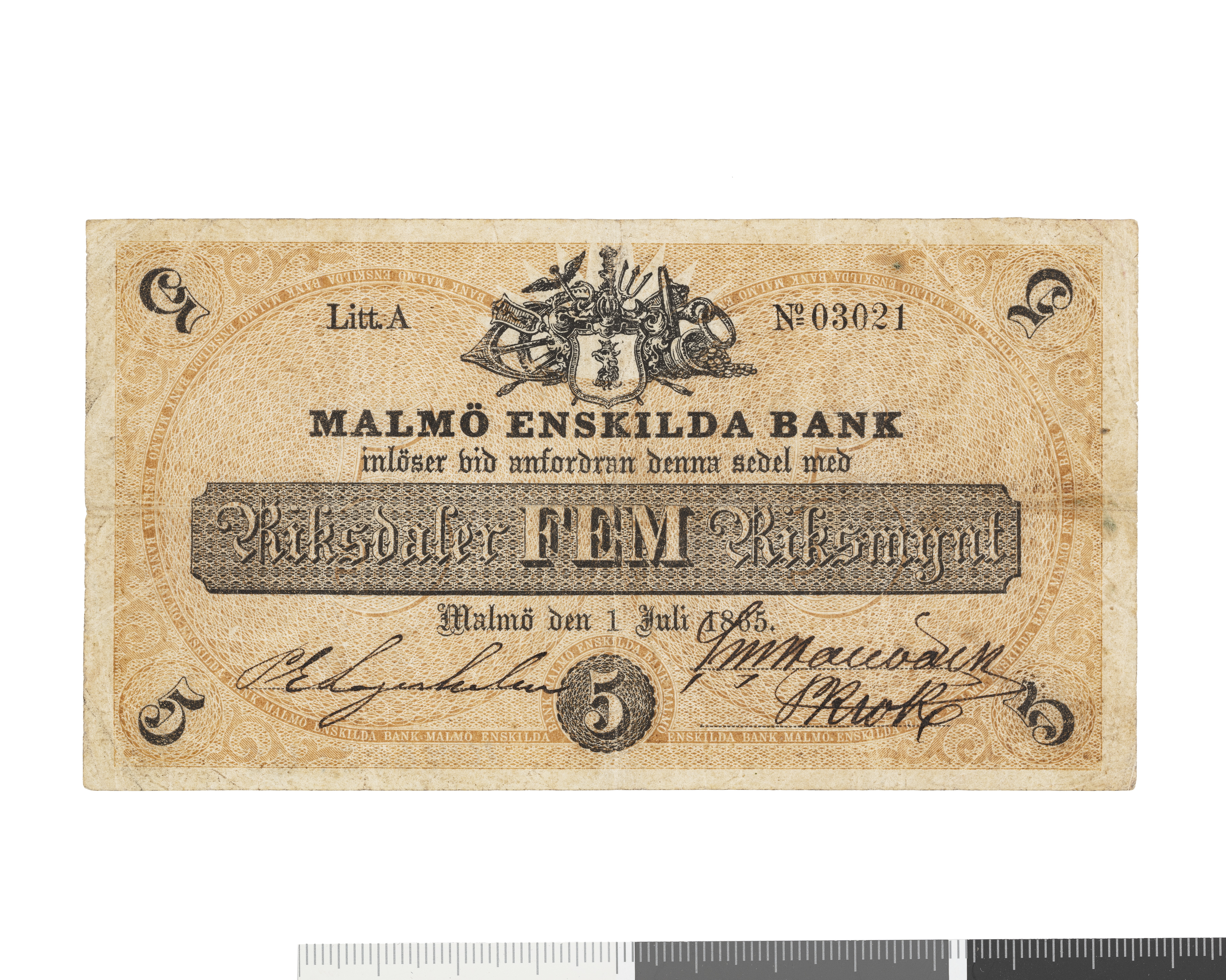 Upphov: Malmö Enskilda Bank. Media: Bonnevier, Helena. Ekonomiska museet - Kungliga myntkabinettet/SHM, (PDM) Upphovsrätten till detta verk har gått ut och är därmed fritt att använda på alla sätt. Ange gärna upphovsperson om denne är känd.
