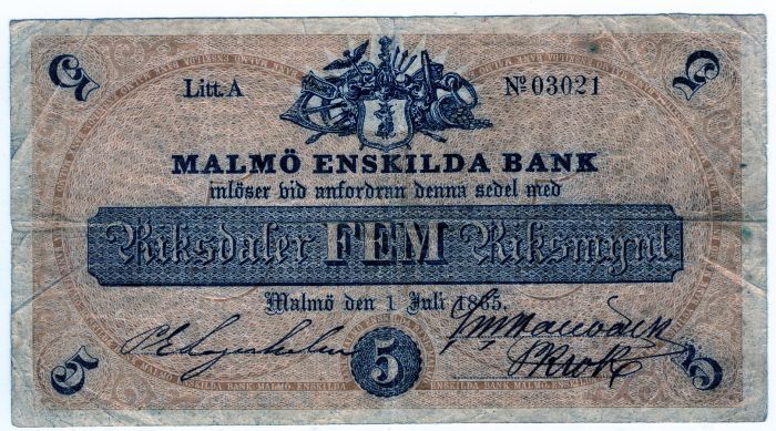 Malmö Enskilda Bank - Fem riksdaler riksmynt