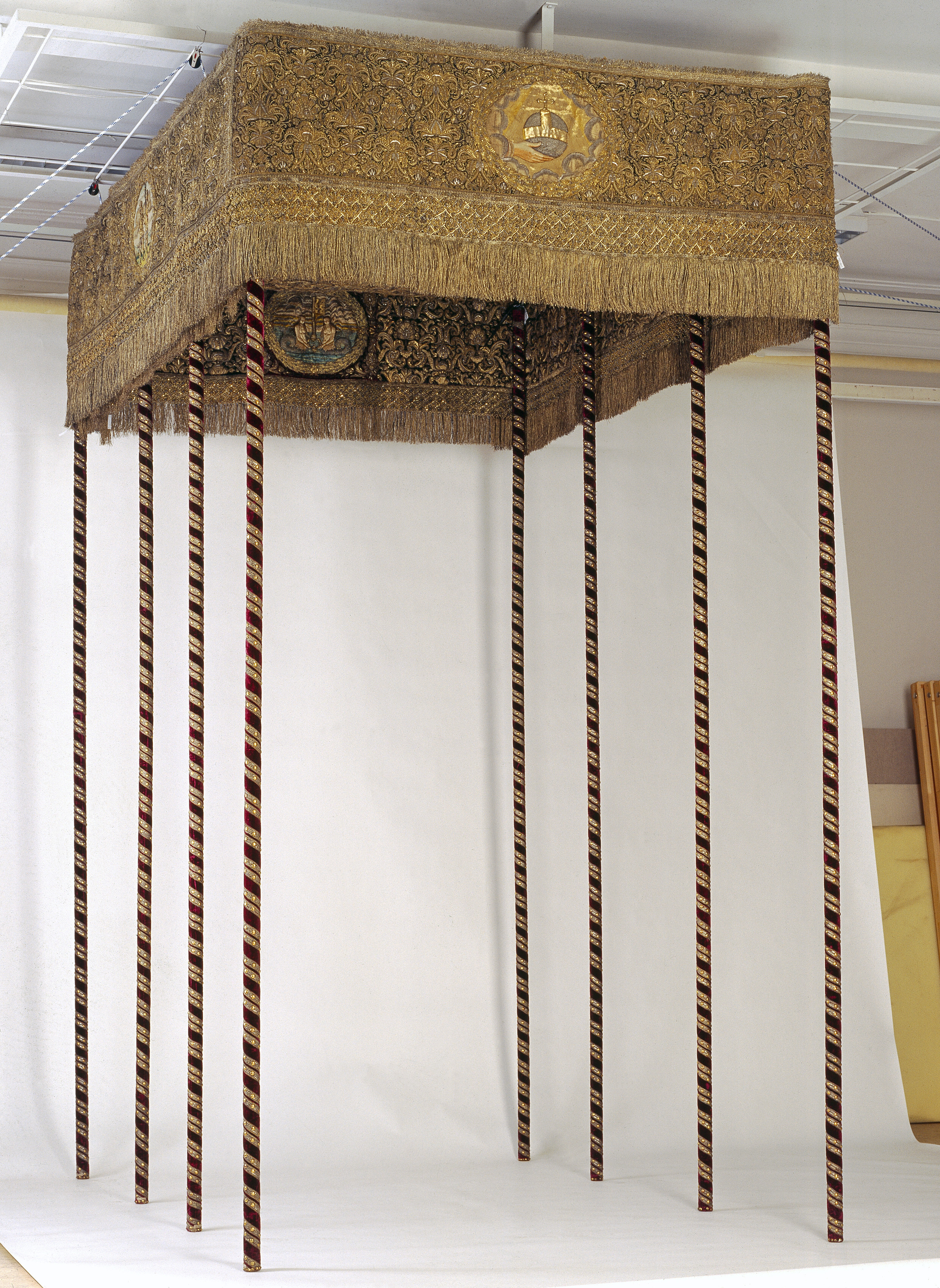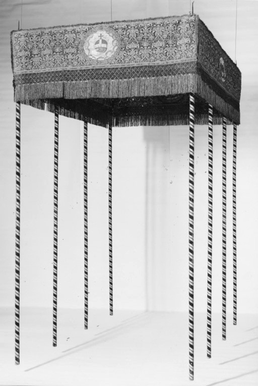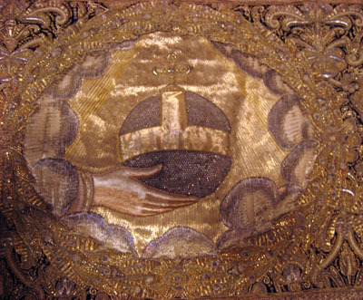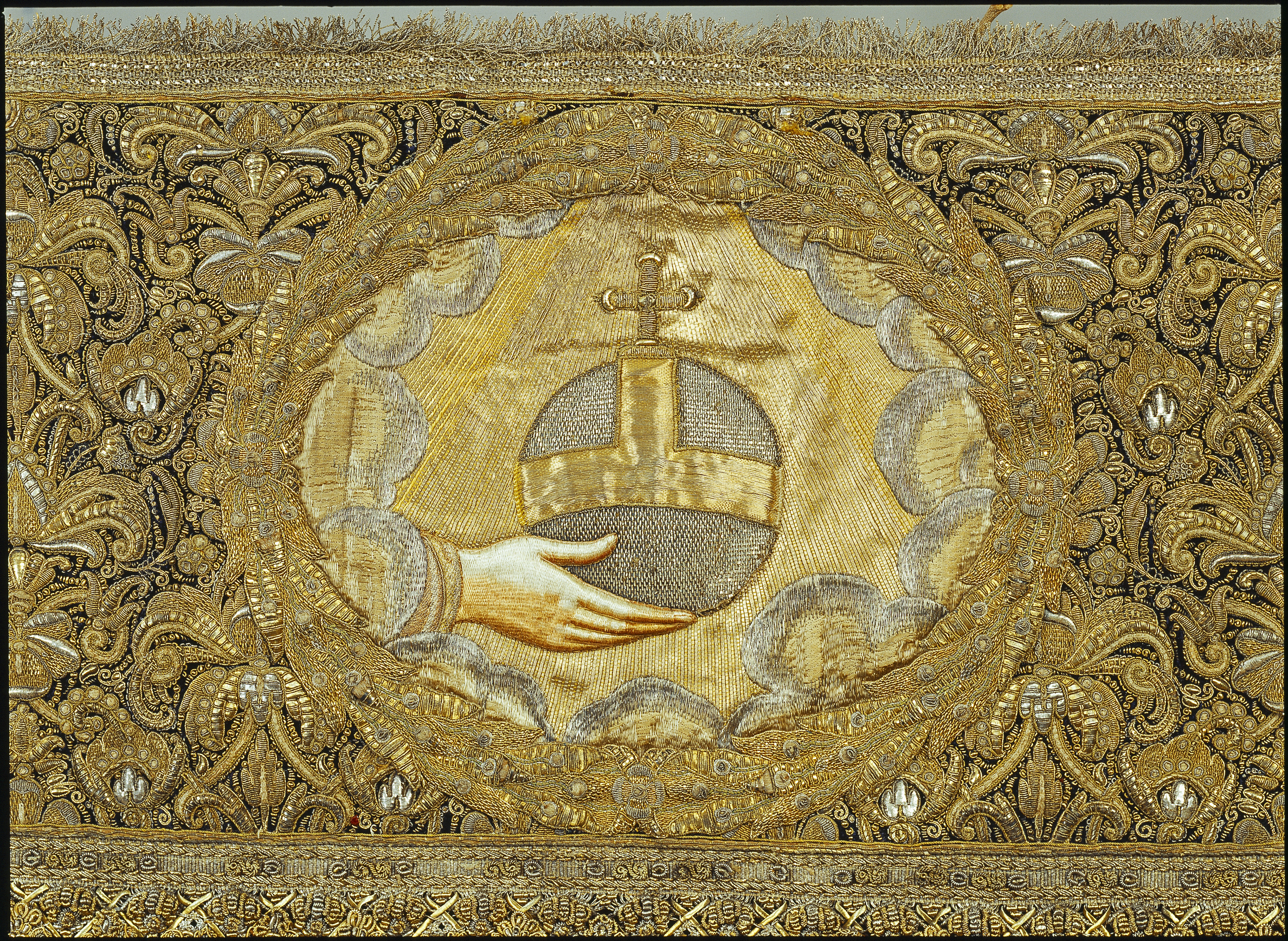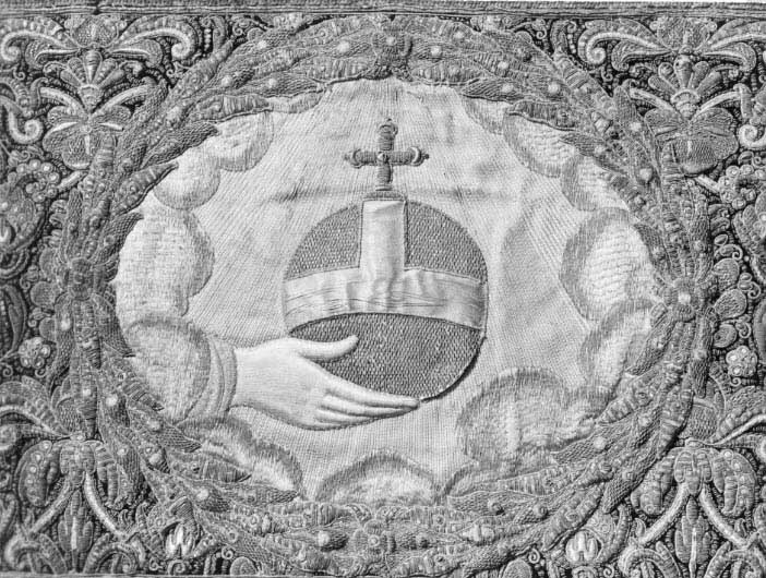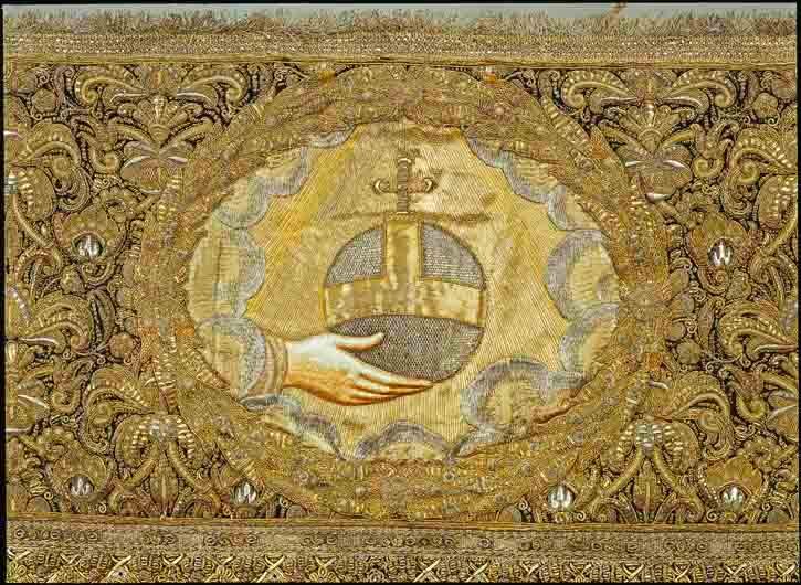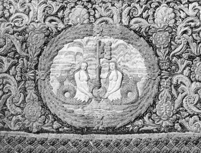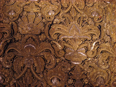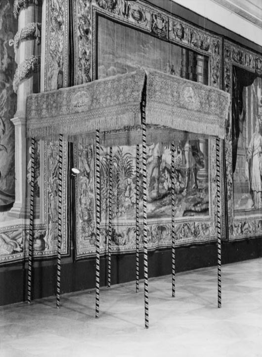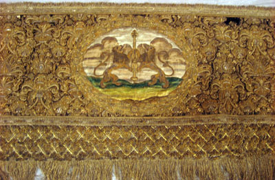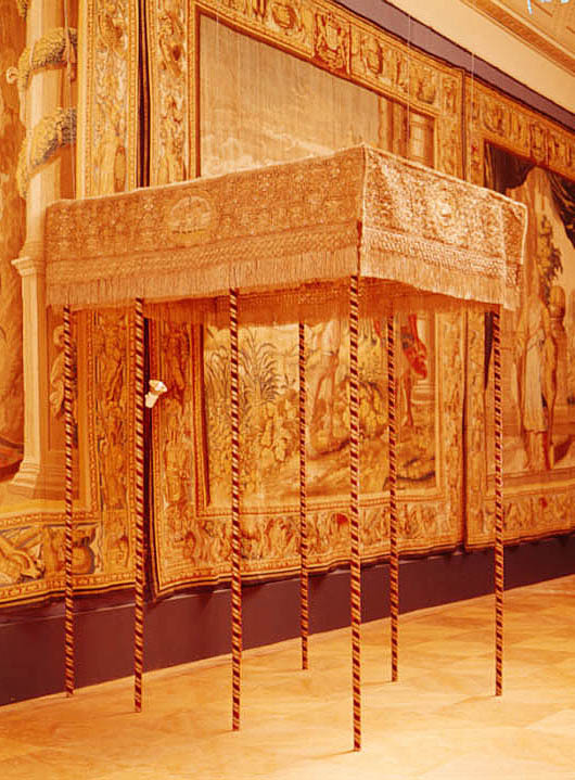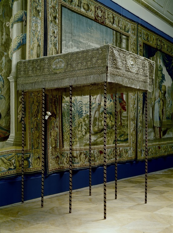 Drottning Kristinas kröningshimmel gjord på 1640-talet i Paris av siden, linne, pärlor, guld och silver.