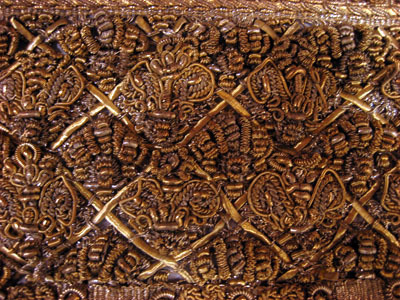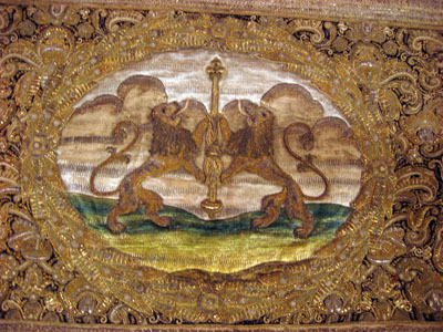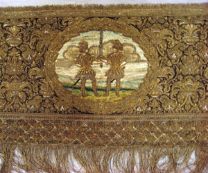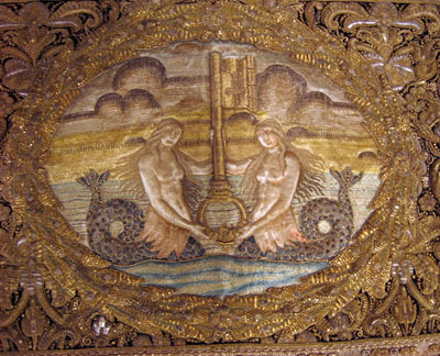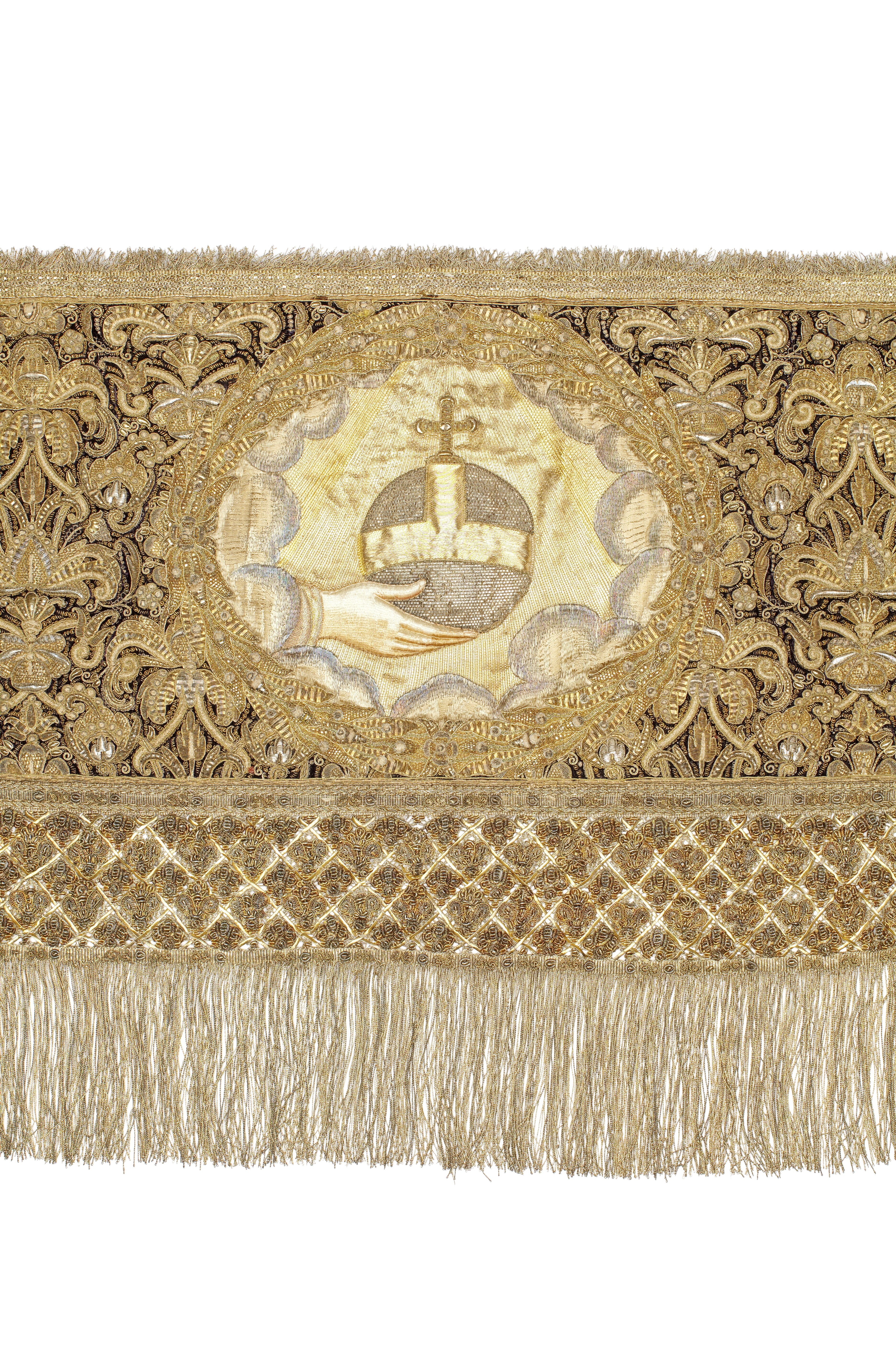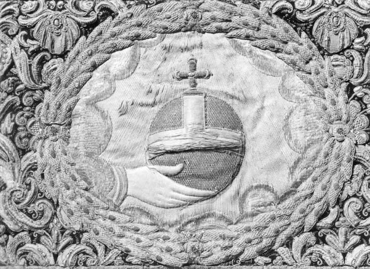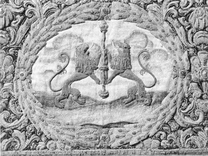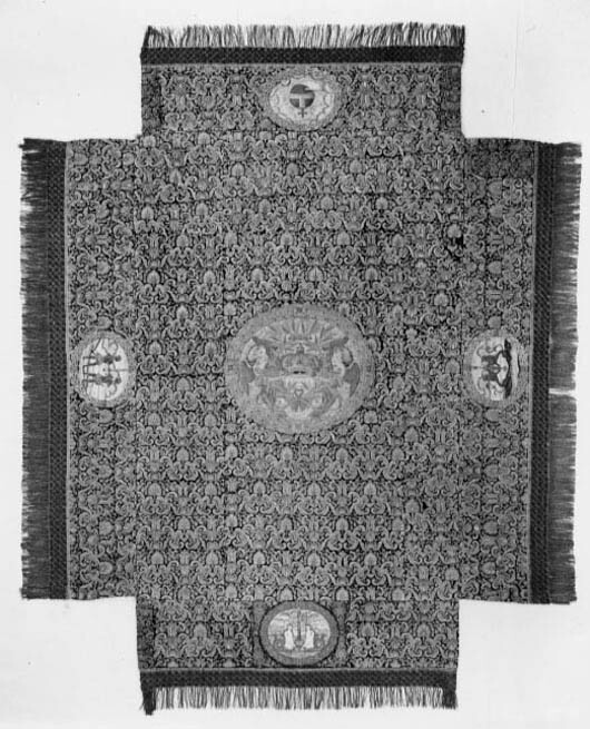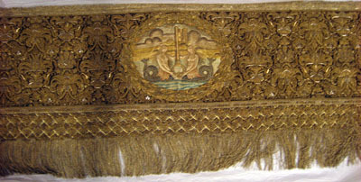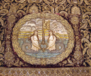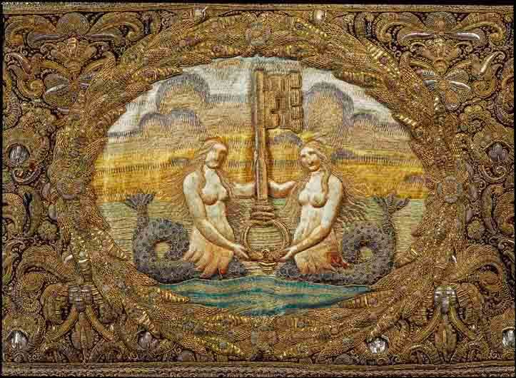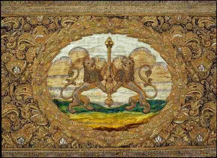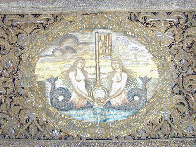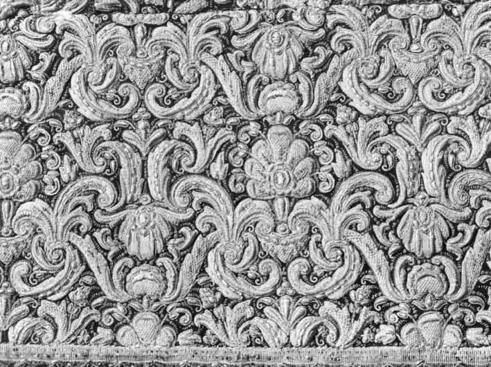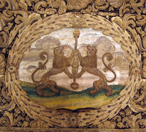 Drottning Kristinas kröningshimmel gjord på 1640-talet i Paris av siden, linne, pärlor, guld och silver.