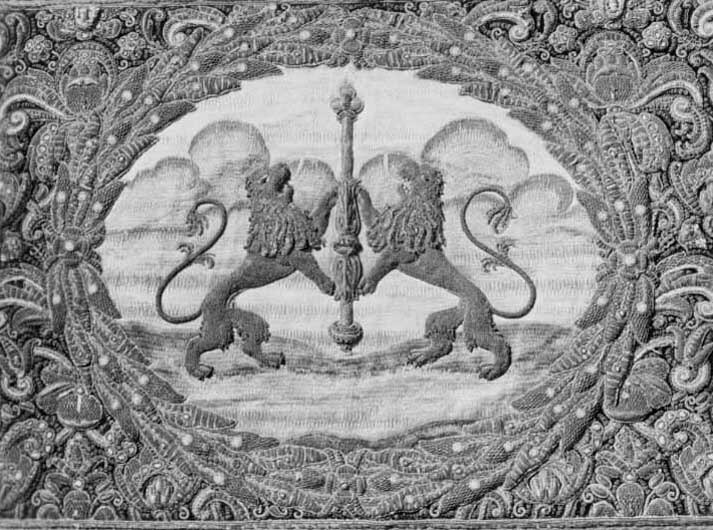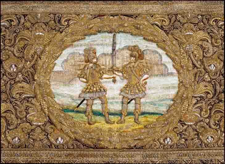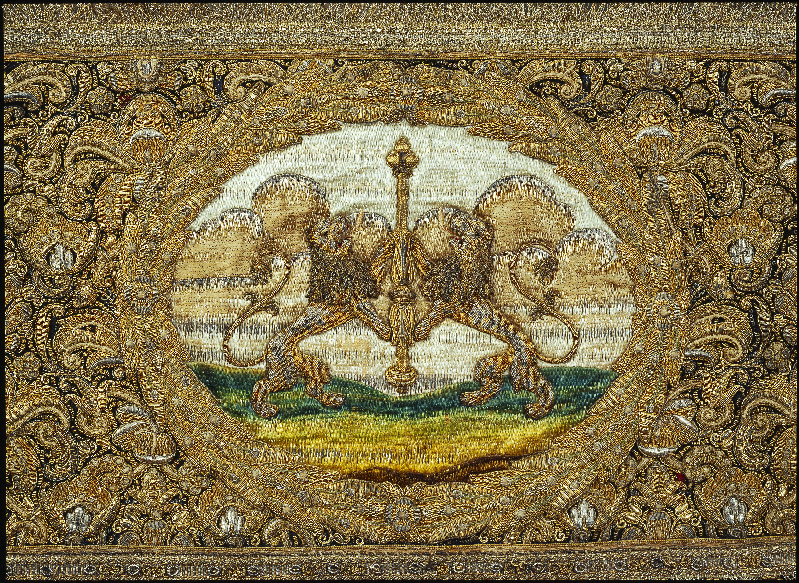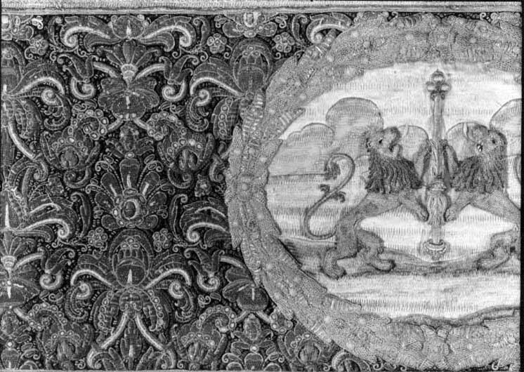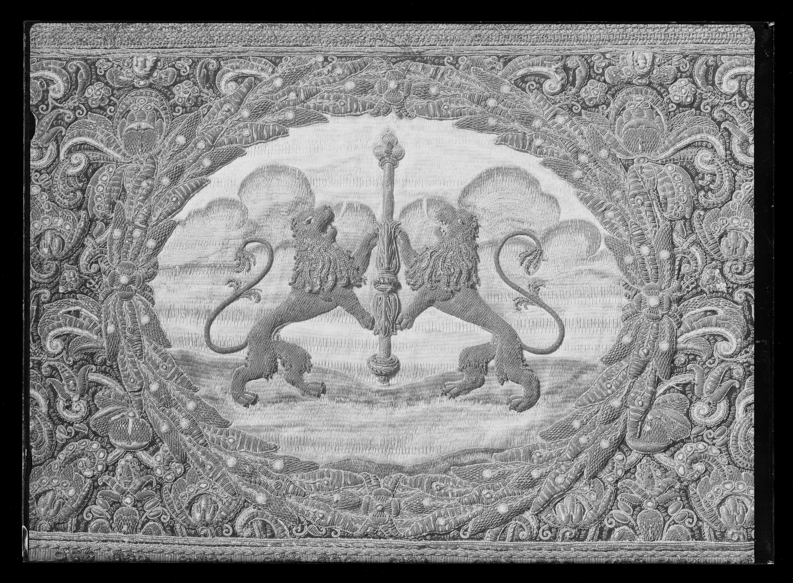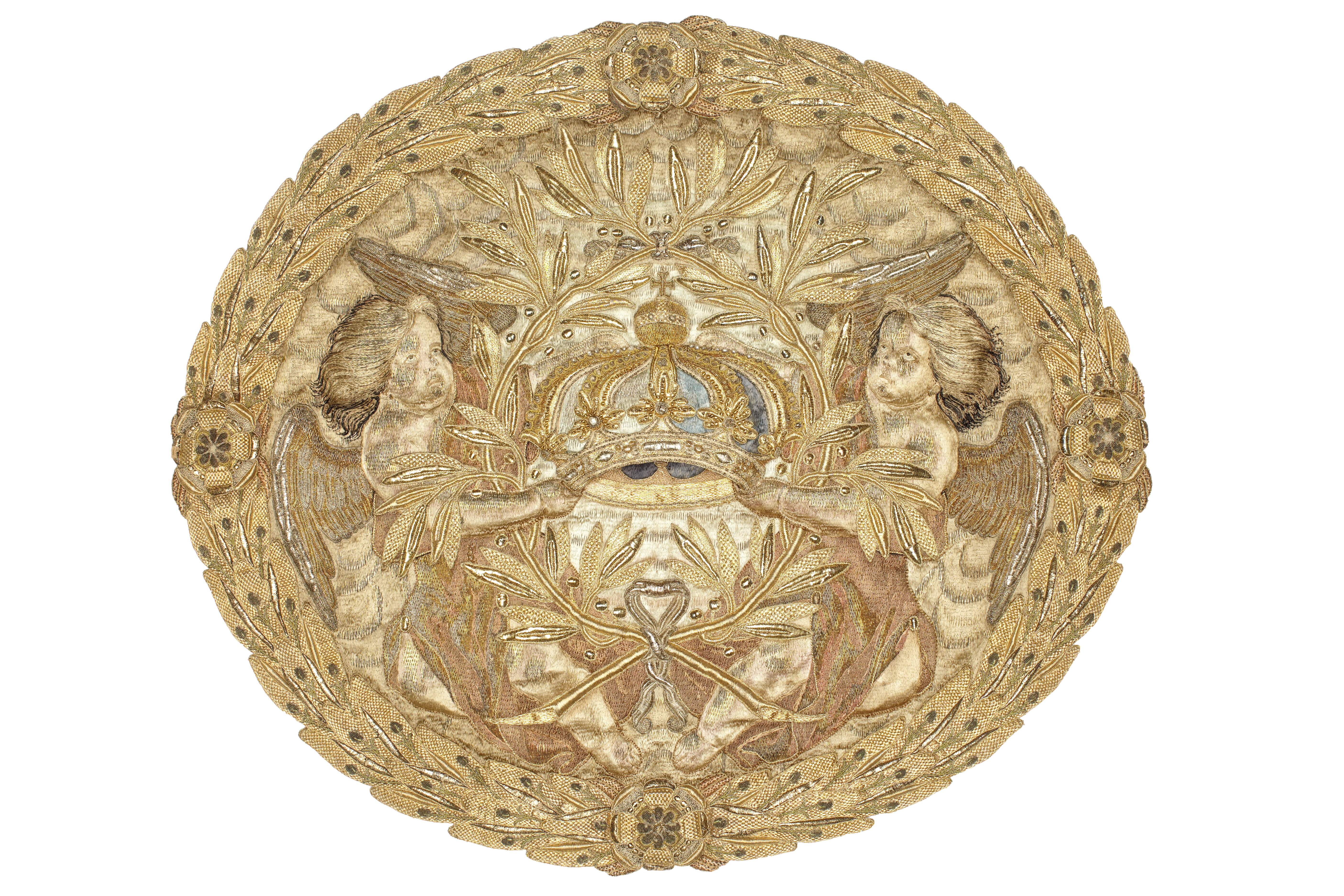 Drottning Kristinas kröningshimmel gjord på 1640-talet i Paris av siden, linne, pärlor, guld och silver.