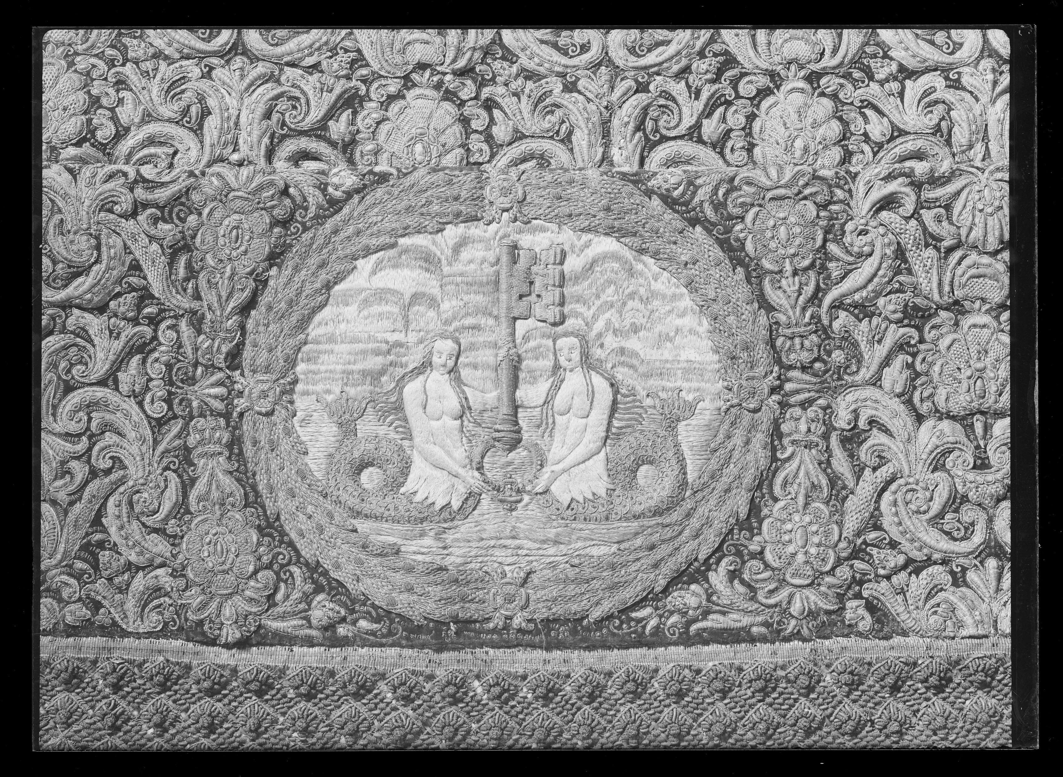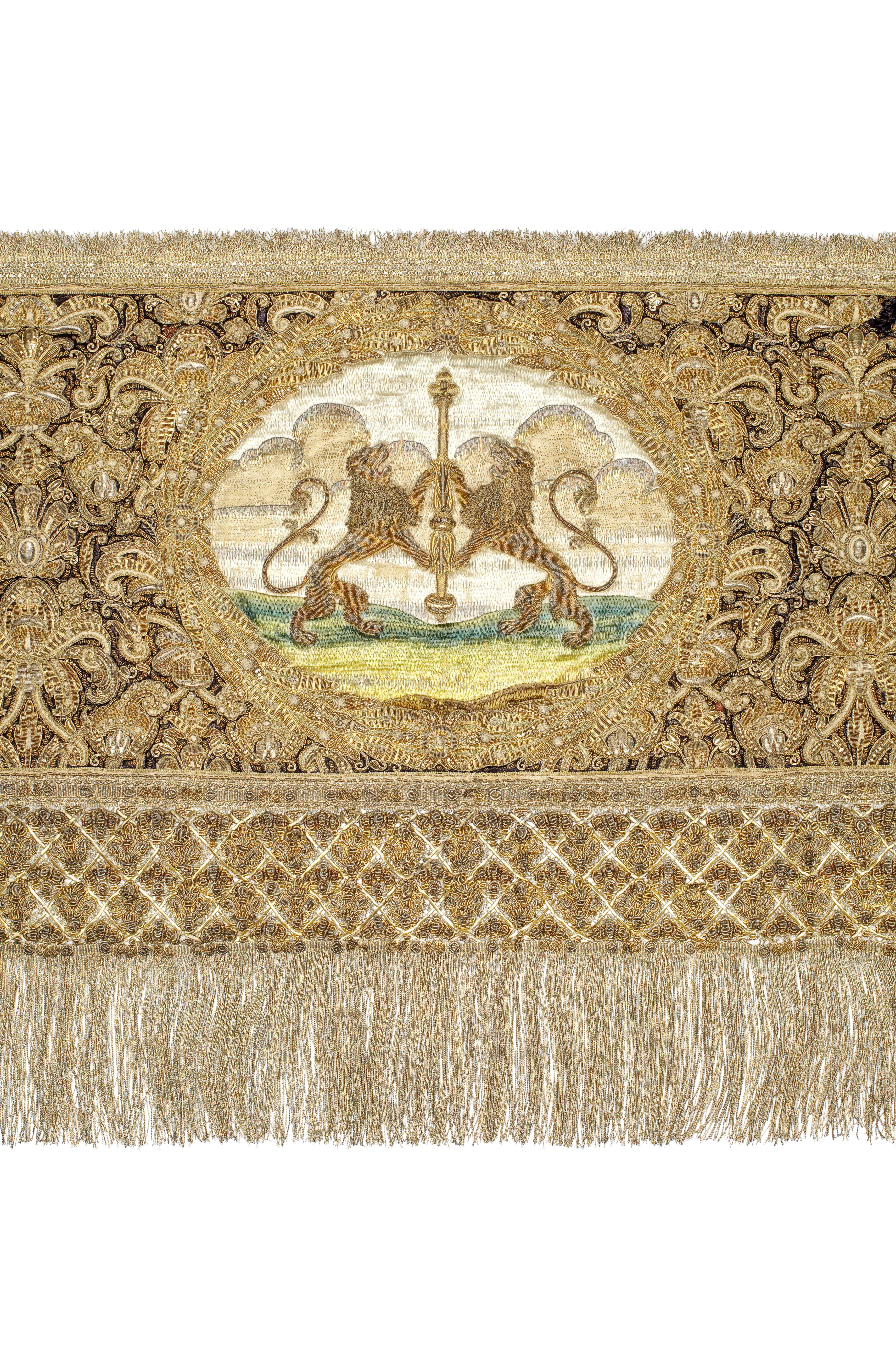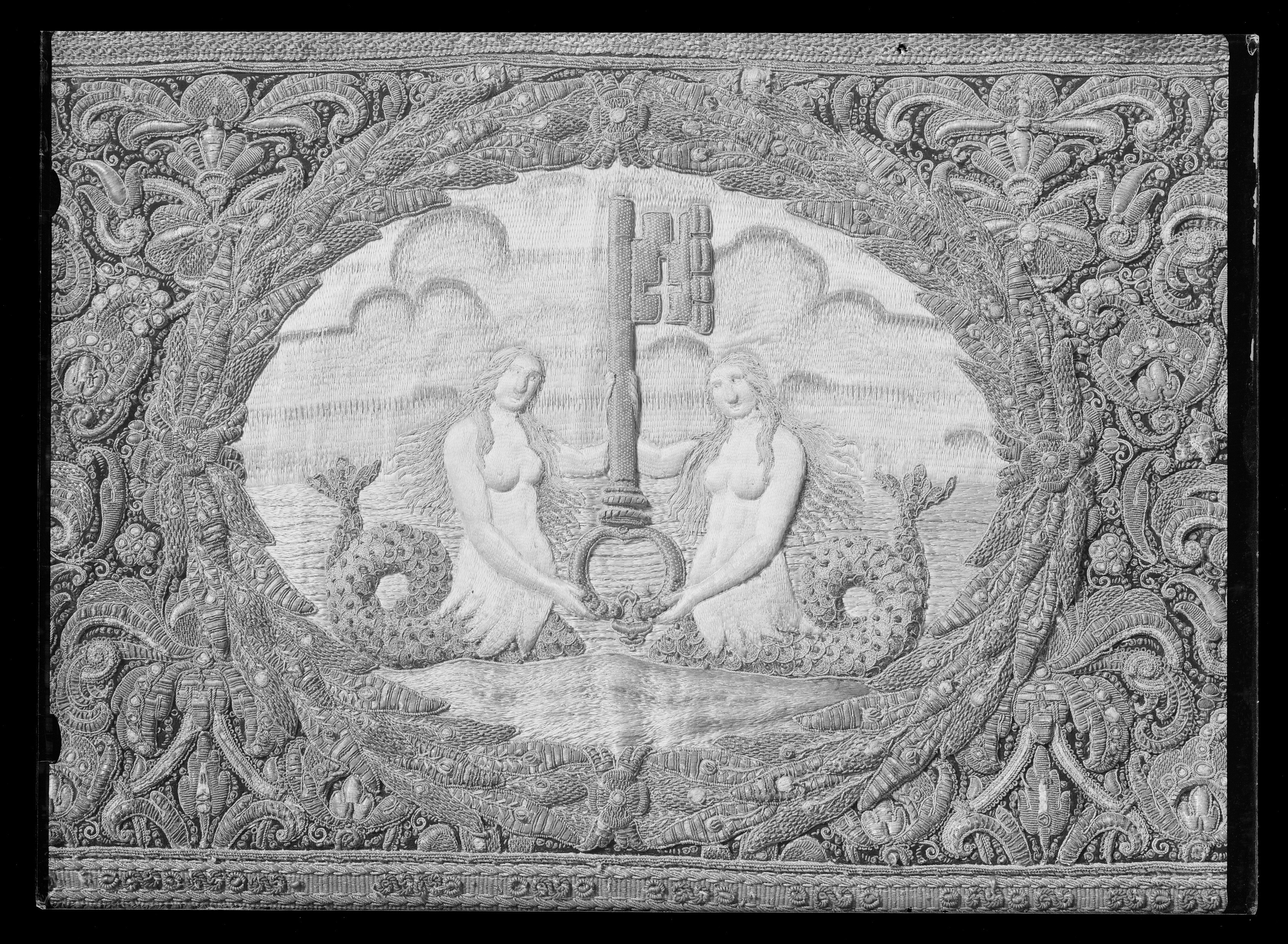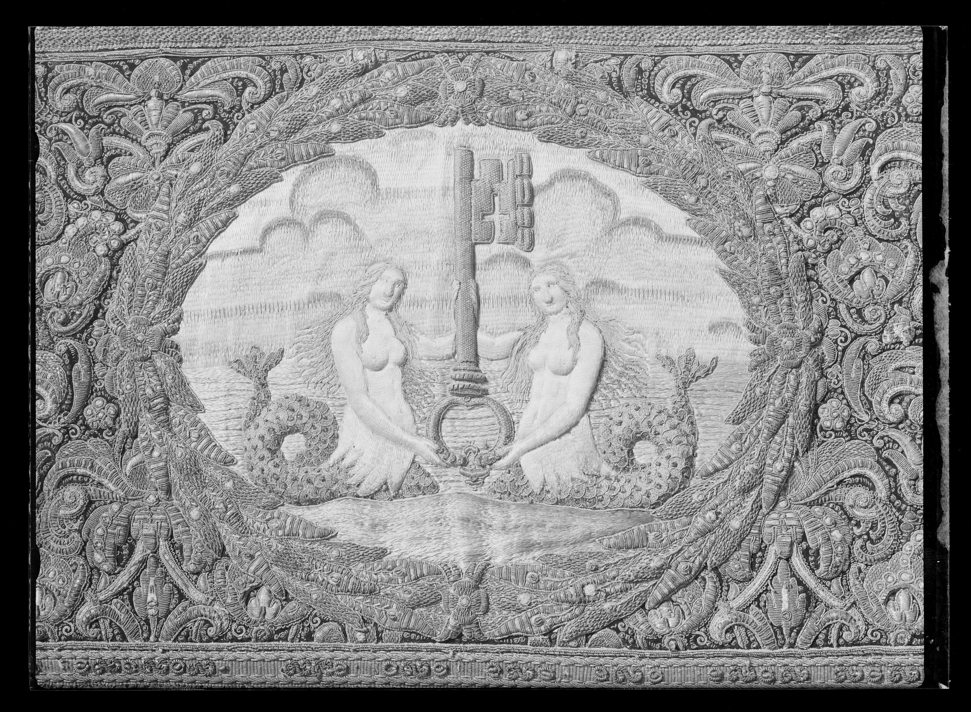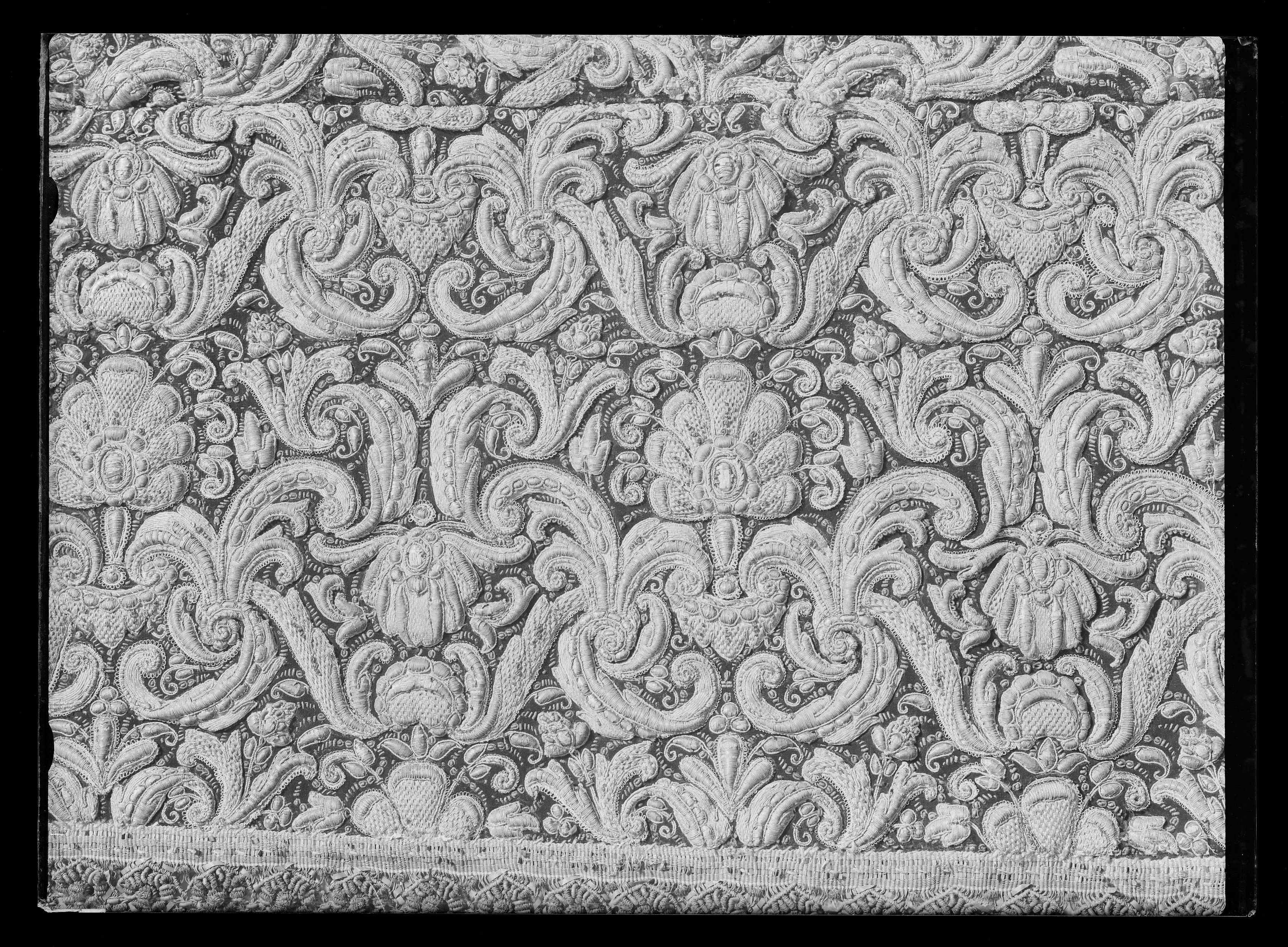 Drottning Kristinas kröningshimmel gjord på 1640-talet i Paris av siden, linne, pärlor, guld och silver.