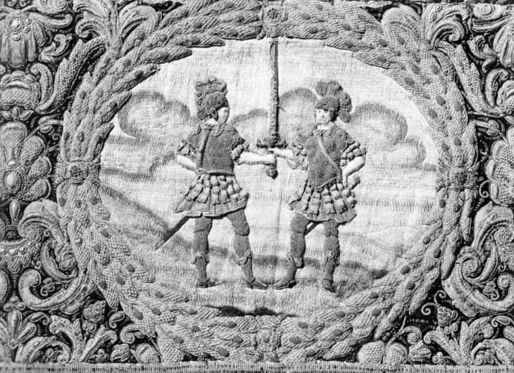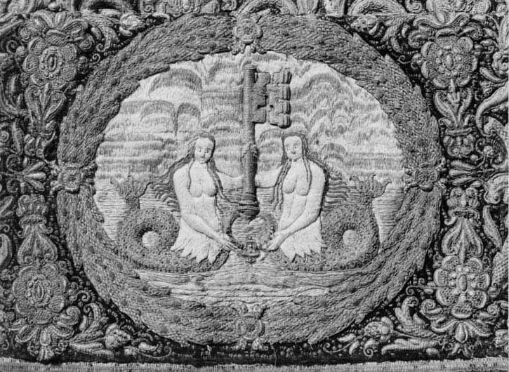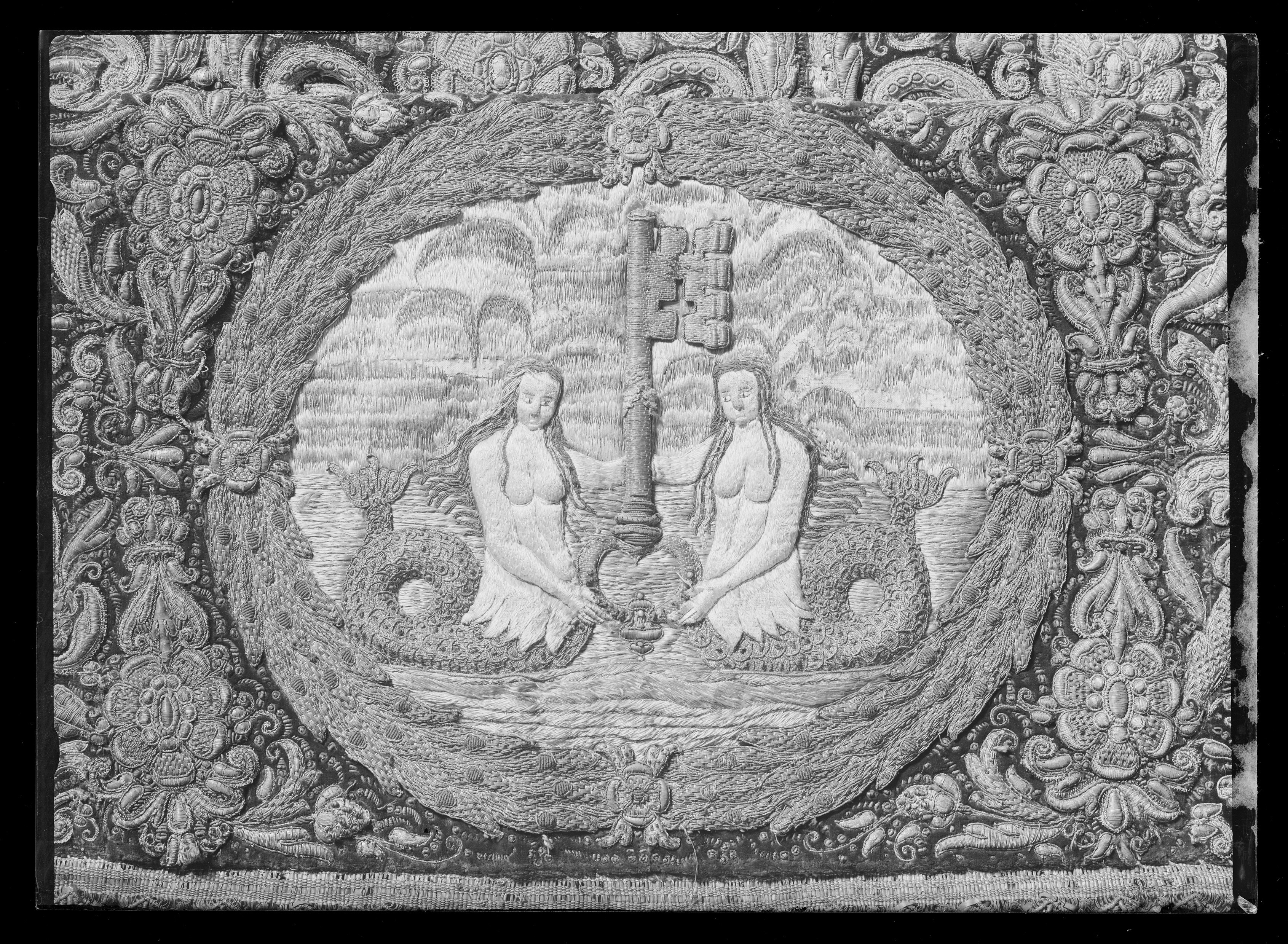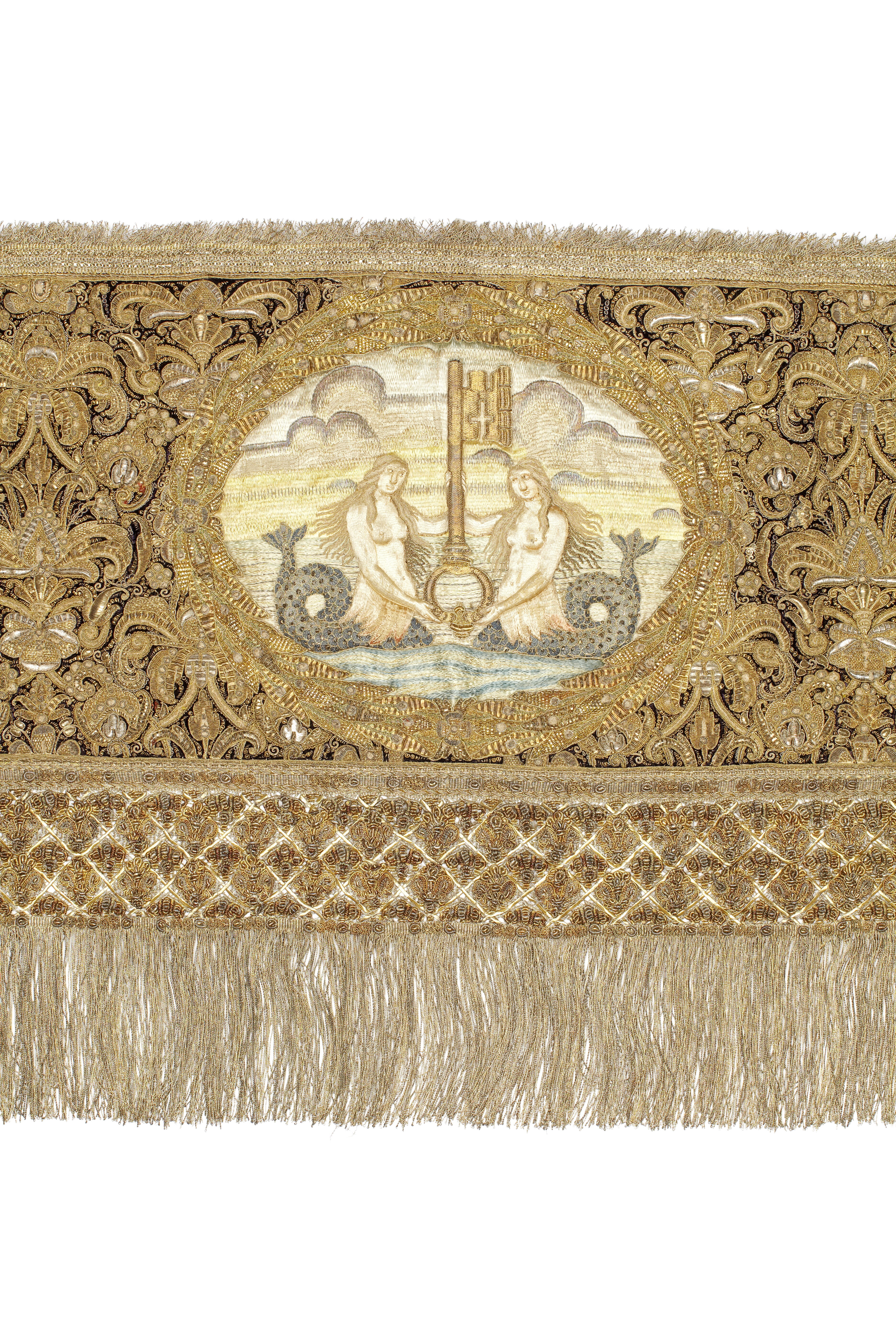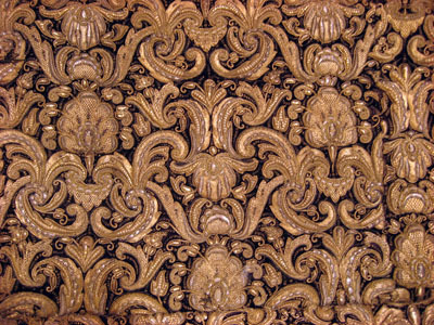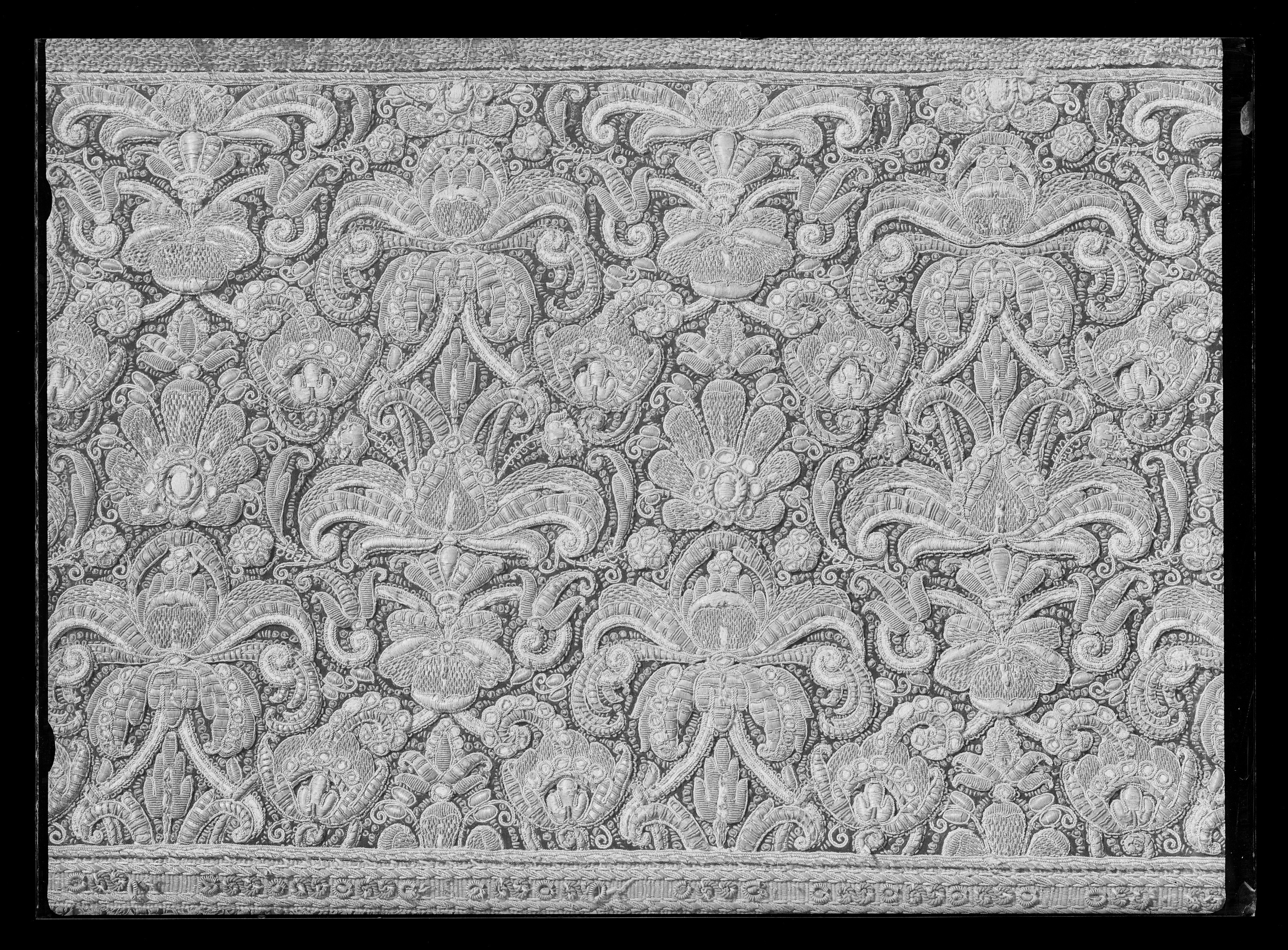 Drottning Kristinas kröningshimmel gjord på 1640-talet i Paris av siden, linne, pärlor, guld och silver.