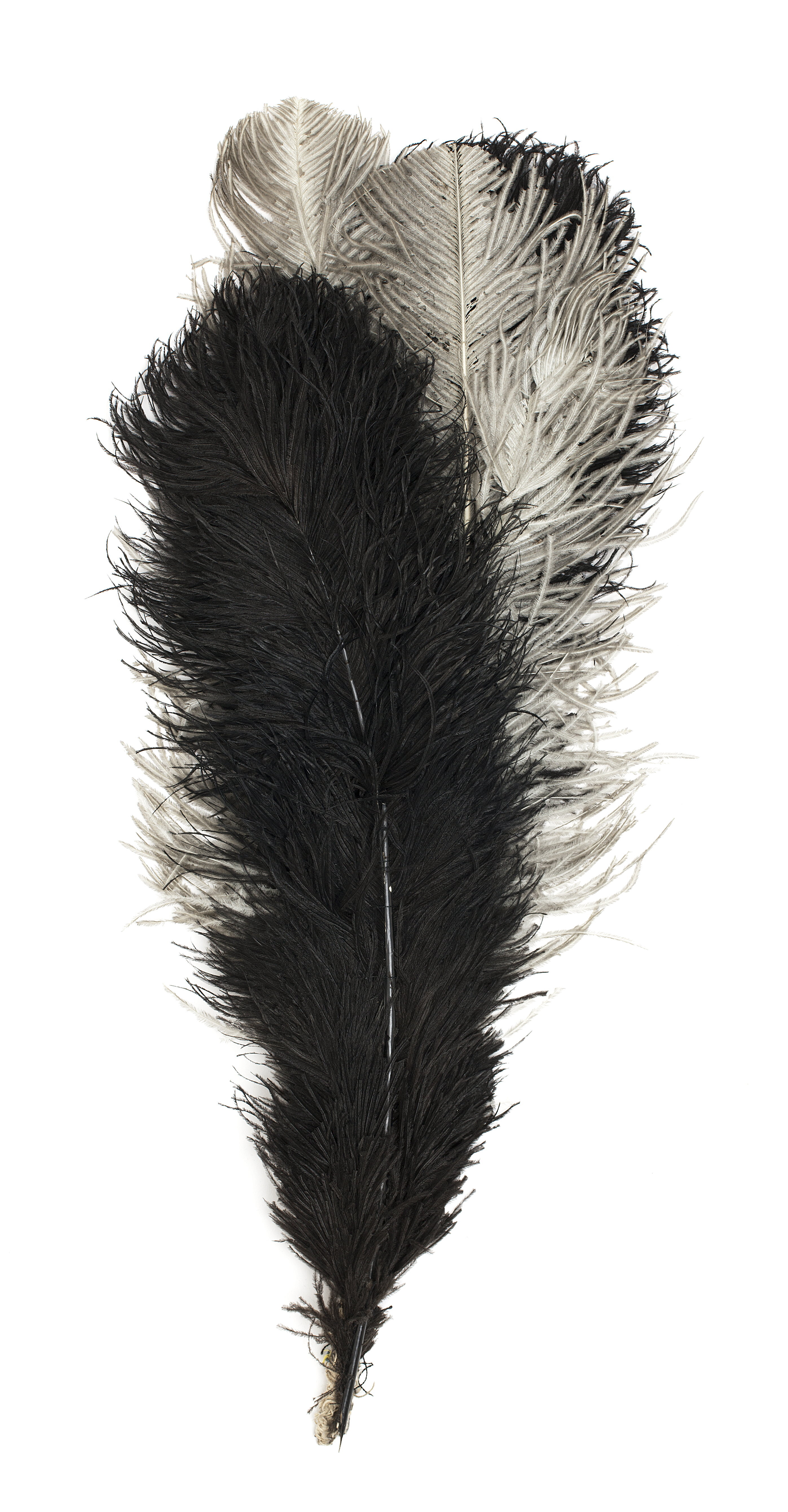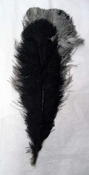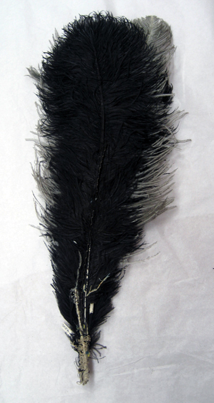 Hattplym bestående av fyra strutsfjädrar. Två svarta fjädrar och två vita, de svarta fjädrarna ytterst- och de två vita fjädrarna mellan dessa. Fjädrarna är nedtill sammanbundna med ett snöre virat runtom ett skaft av en stålskena.