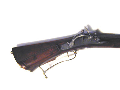 Åttsidig pipa av brunerat stål, åtta räfflor. På kammarens ena sida en stämpel: I S P C (Stöckelnr 3620). Riktmedel: Blånerat, profilerat solsikte av stål, stolpkorn av mässing. Fästning: Två häften. Pipan fäst med krysskruv samt två pipstift av stål. Snapplås, springlås med plant låsbleck, sparsam, graverad dekor på bakre spetsen, stämpel på samma ställe I S B(?). Böjd hane med hake på hanfoten, graverad blomma, inlaxad överkäke, graverade streck på käksidorna. Batteri med omvändningseldstål. Kommaformig nöt. Fästning: En låsskruv. Rak avtryckare. Helstock av björk(?) med triangulär kolv med snidad bladvolut på vingen. Kolvlåda med lock av trä, snidad kantdekor. Beslag av stål. Böjd bakplåt med stödkula, graverat nummer: "No 12". Låsskruvbricka i form av en blomma med sex blad. Bandformig överrörka och näsband. Varbygel med nedåtsvängd bakre arm med kulformig avslutning, bygelns främre del profilerad. Tillbehör: Laddstock av trä med hornskoning, krats av stål.