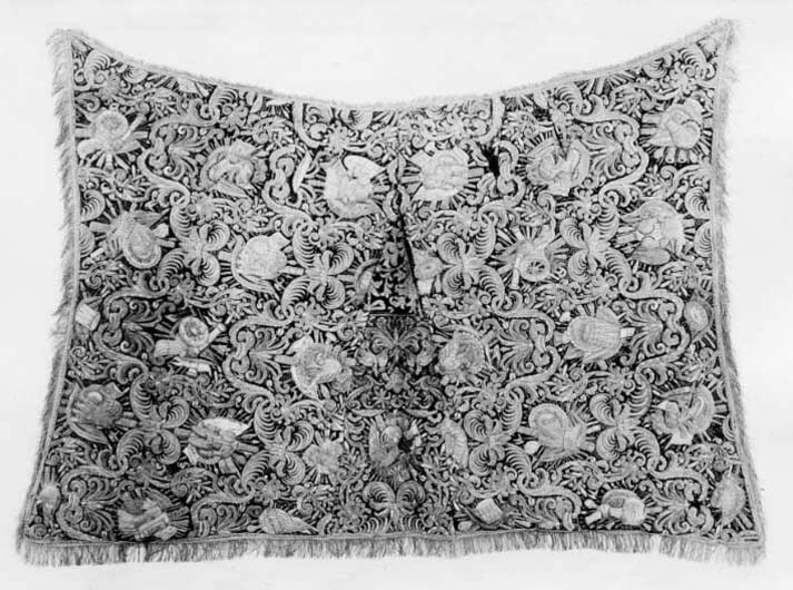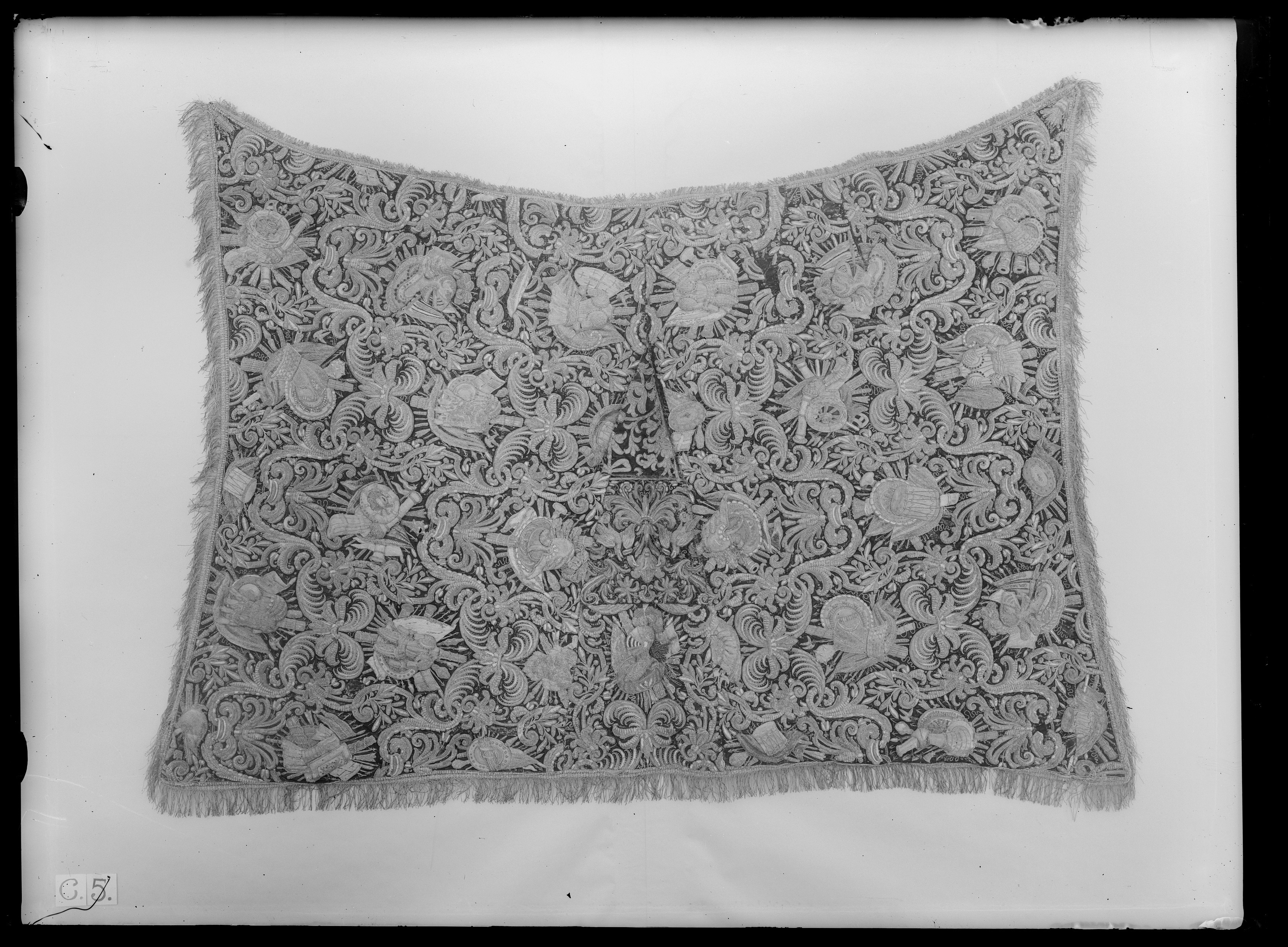 Täcke ur en serie av sex (6042-6047) tillhörande drottning Kristinas kröningskaross med trofémotiv, 1650, Paris