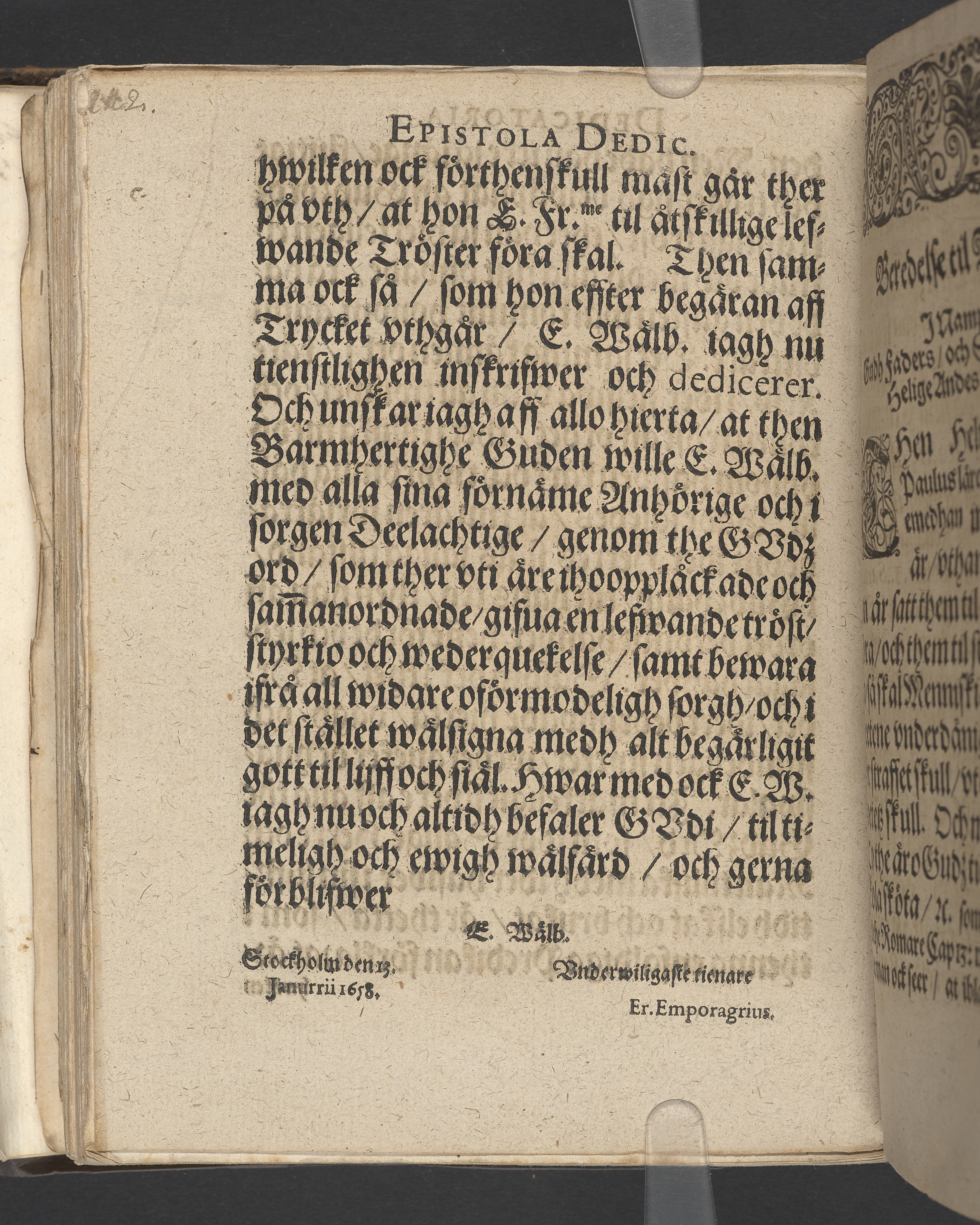 1658; 1700 (bandets tillverkning); 1658 (tryckår) |