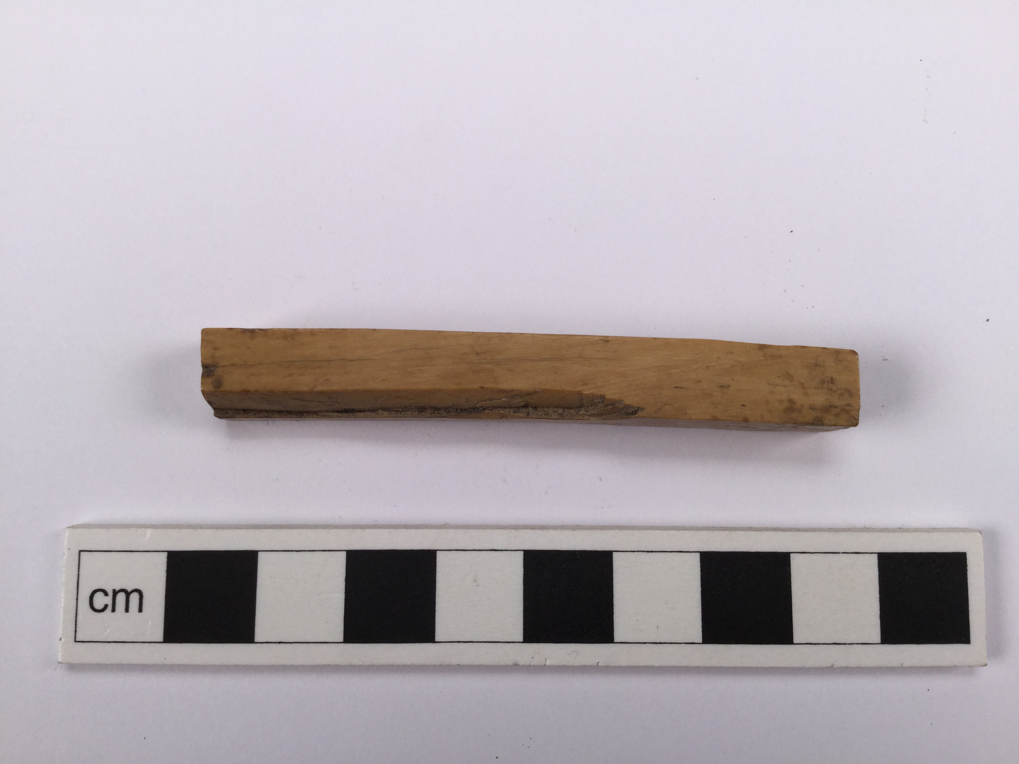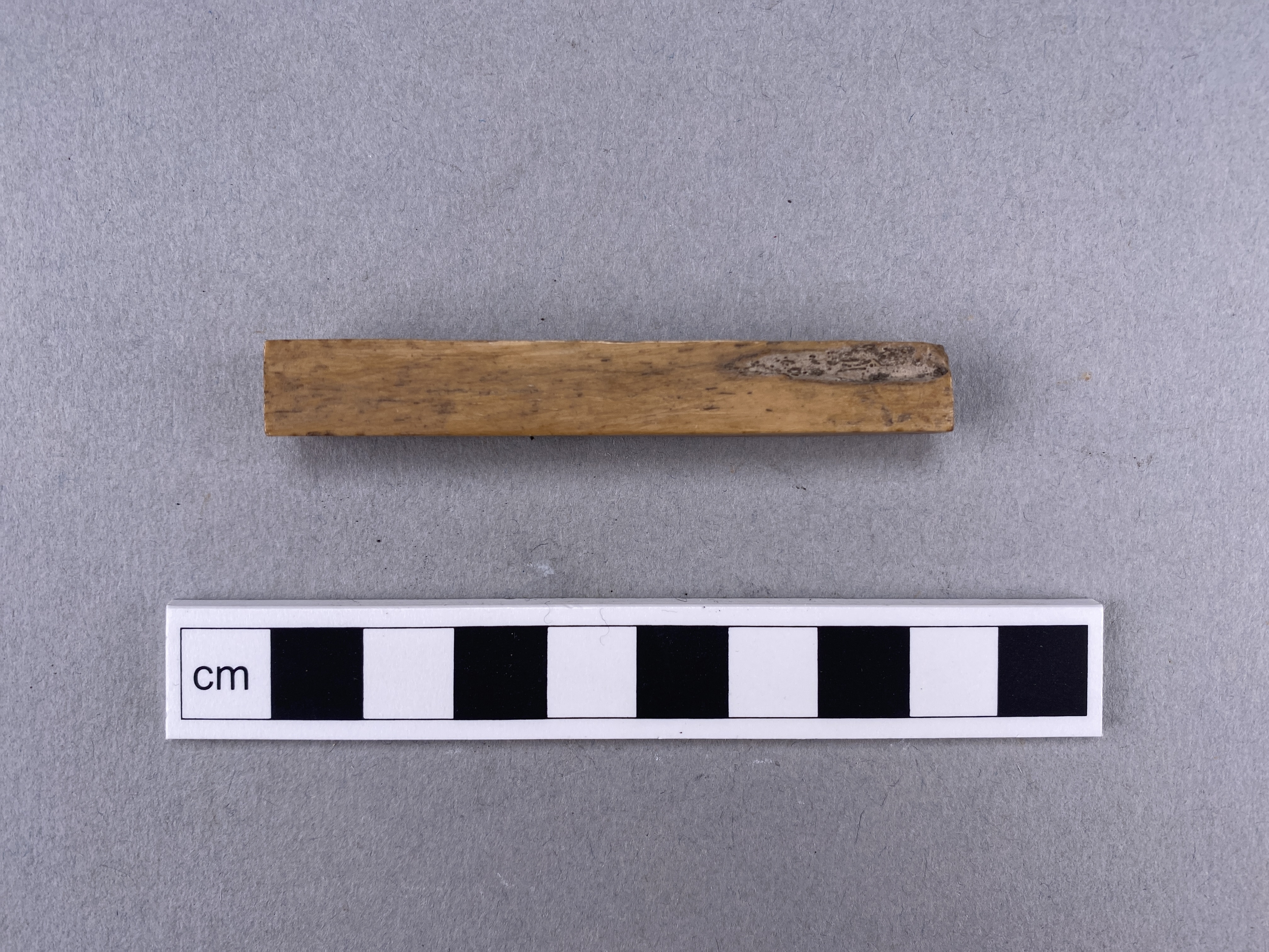 Förarbete till tärningar i form av lång rektangulär hornbit.