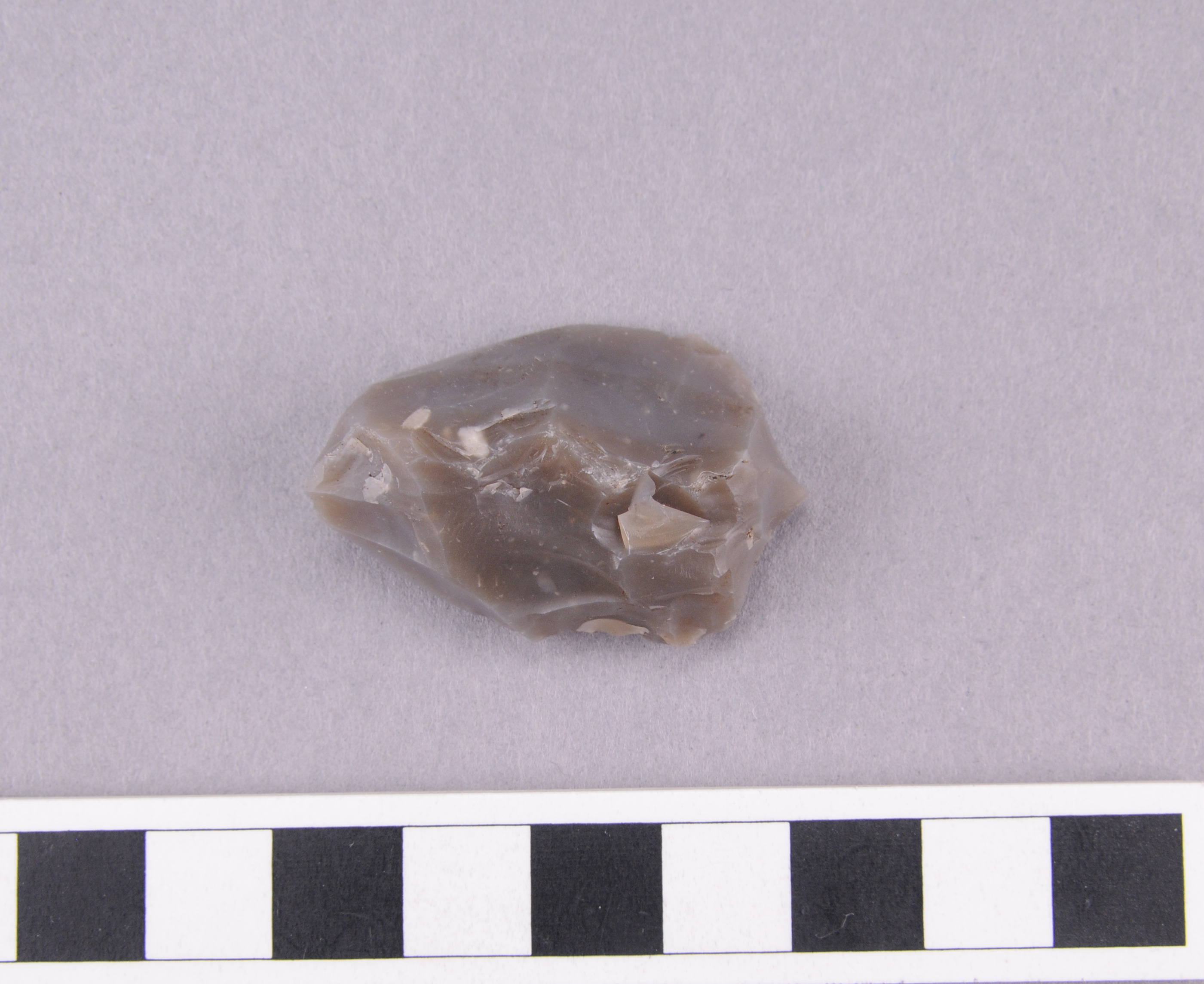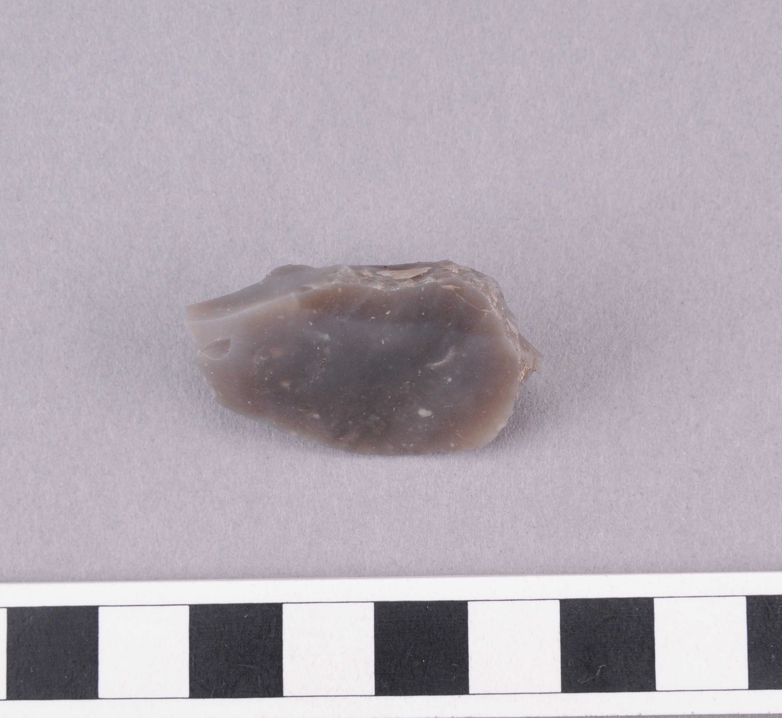gjort av ryggat avslag, har en glansig fläck dorsalt (möjligen ytglans)