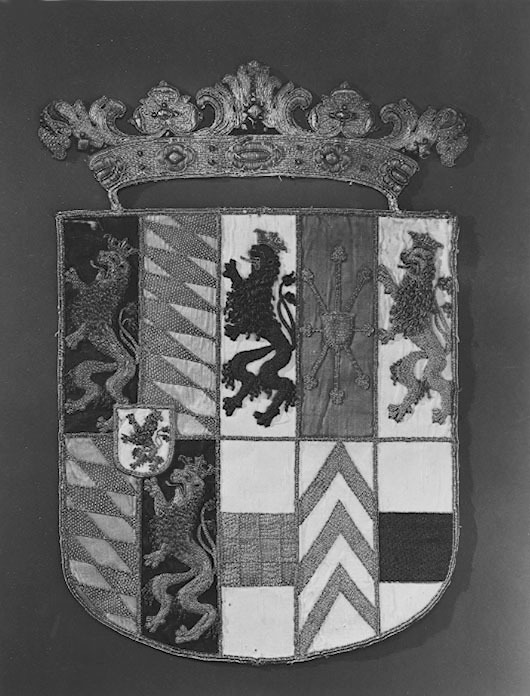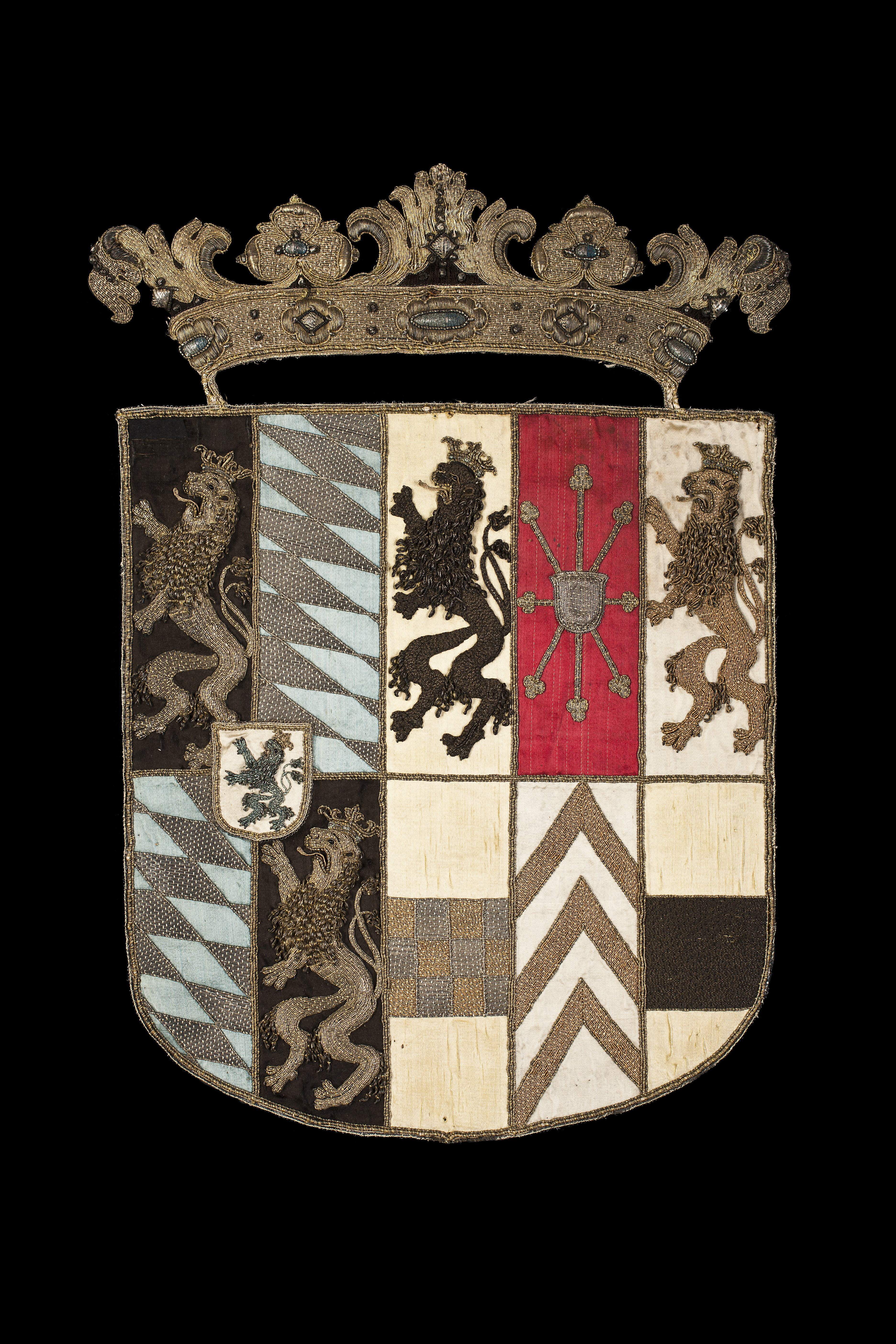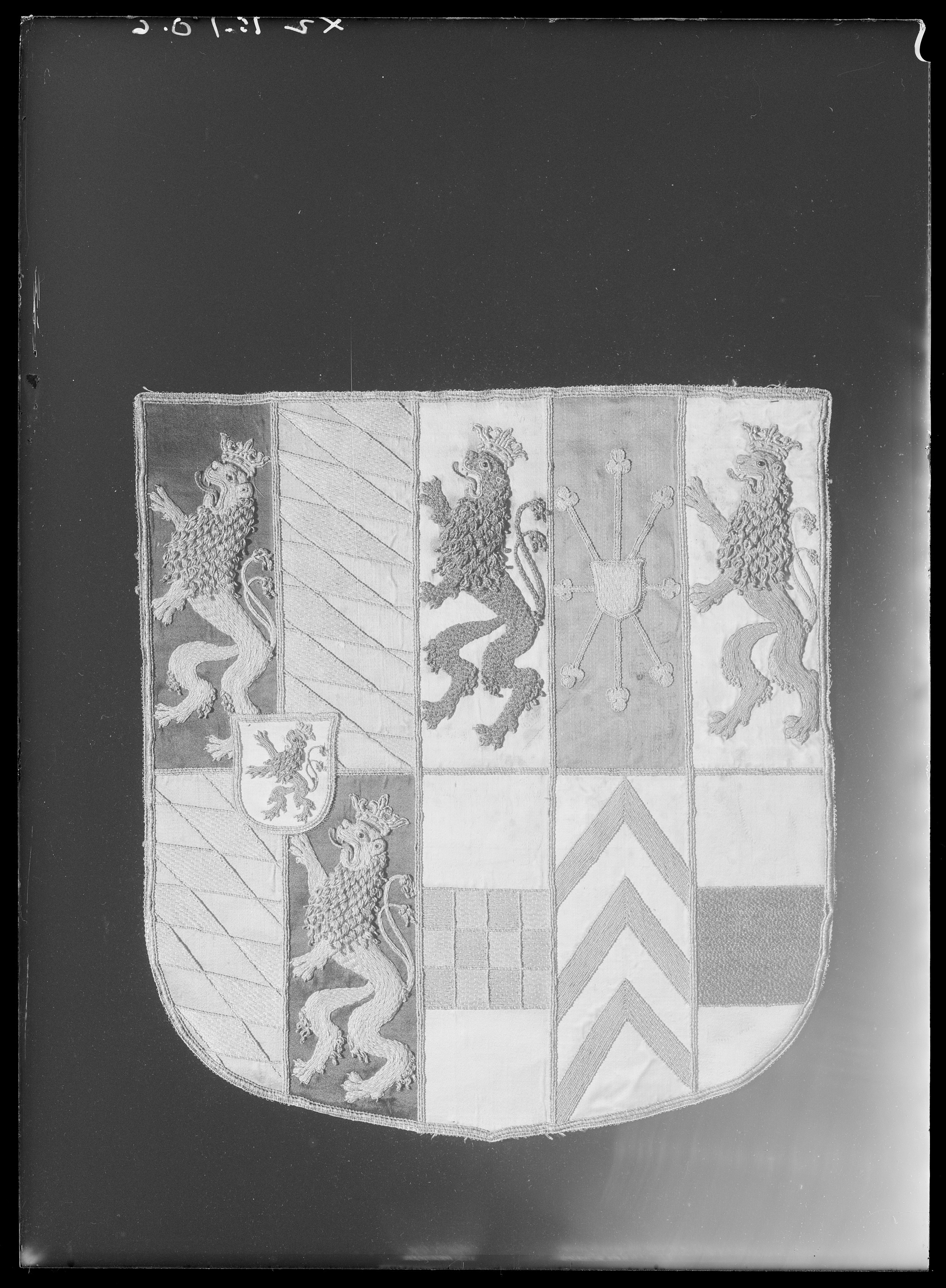 Pfalz vapen, broderat för hästtäcke buret vid Karl X Gustavs begravning den 4 november 1660.