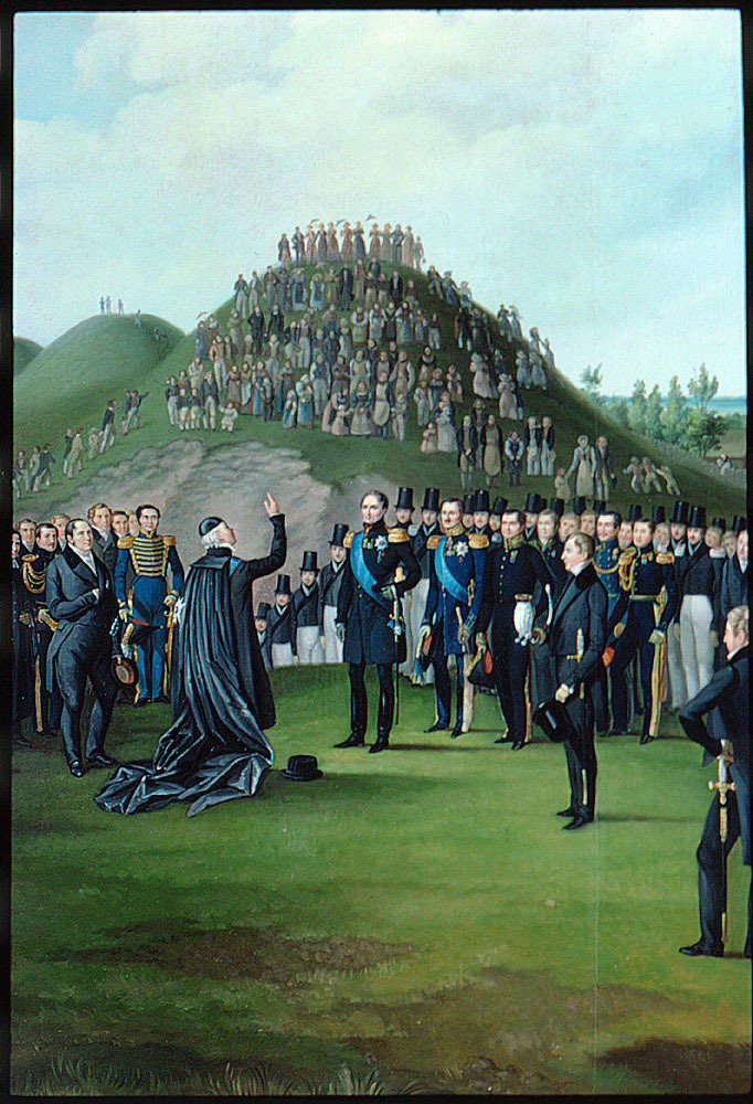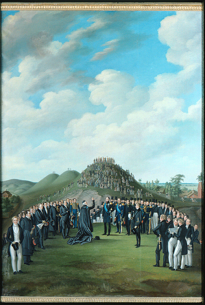 Karl XIV Johan vid Uppsala högar. Oljemålning på duk.