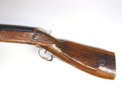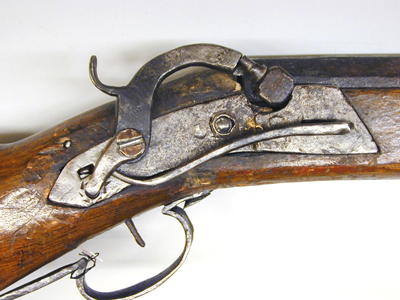 Åttsidig, brunerad pipa, åtta hårt nednötta räfflor. Riktmedel: Ståndsikte av stål, stolpkorn av mässing. Slaglås av enkel konstruktion med smal böjd hane och utanpåliggande slagfjäder. Stock av ljusbrunt trä med kolv av fransk typ och litet snidat kindstöd. Stocken målad med rödbrun färg, därefter med ljusbrun färg. Liten oval varbygel av stål. Tillbehör: En något krokig, 765 mm lång laddstock av mässing, i ena änden formad till en enkel krats.Vid varbygeln fästat rektangulär lapp med text: L.R.K.N:8.(med blå krita).