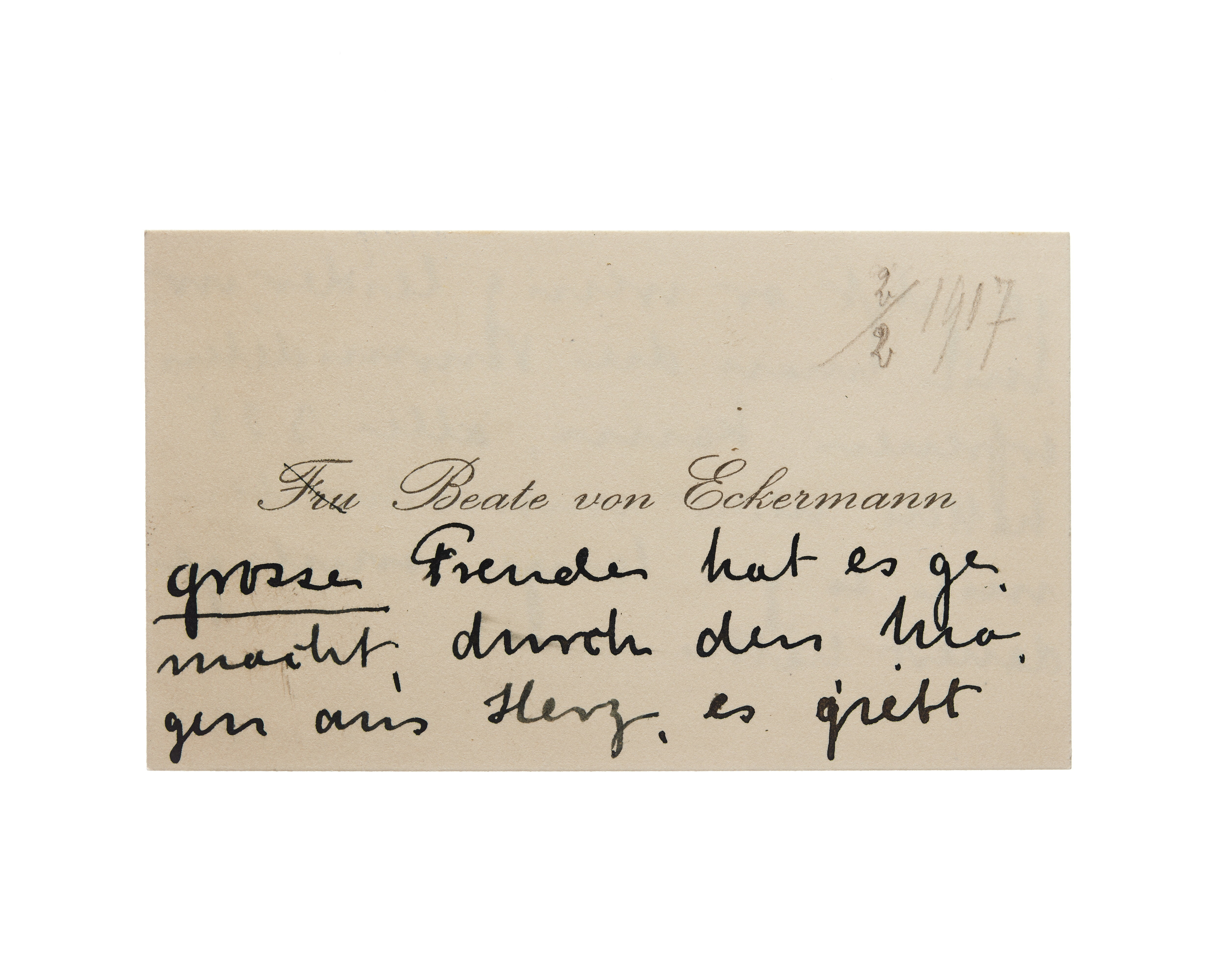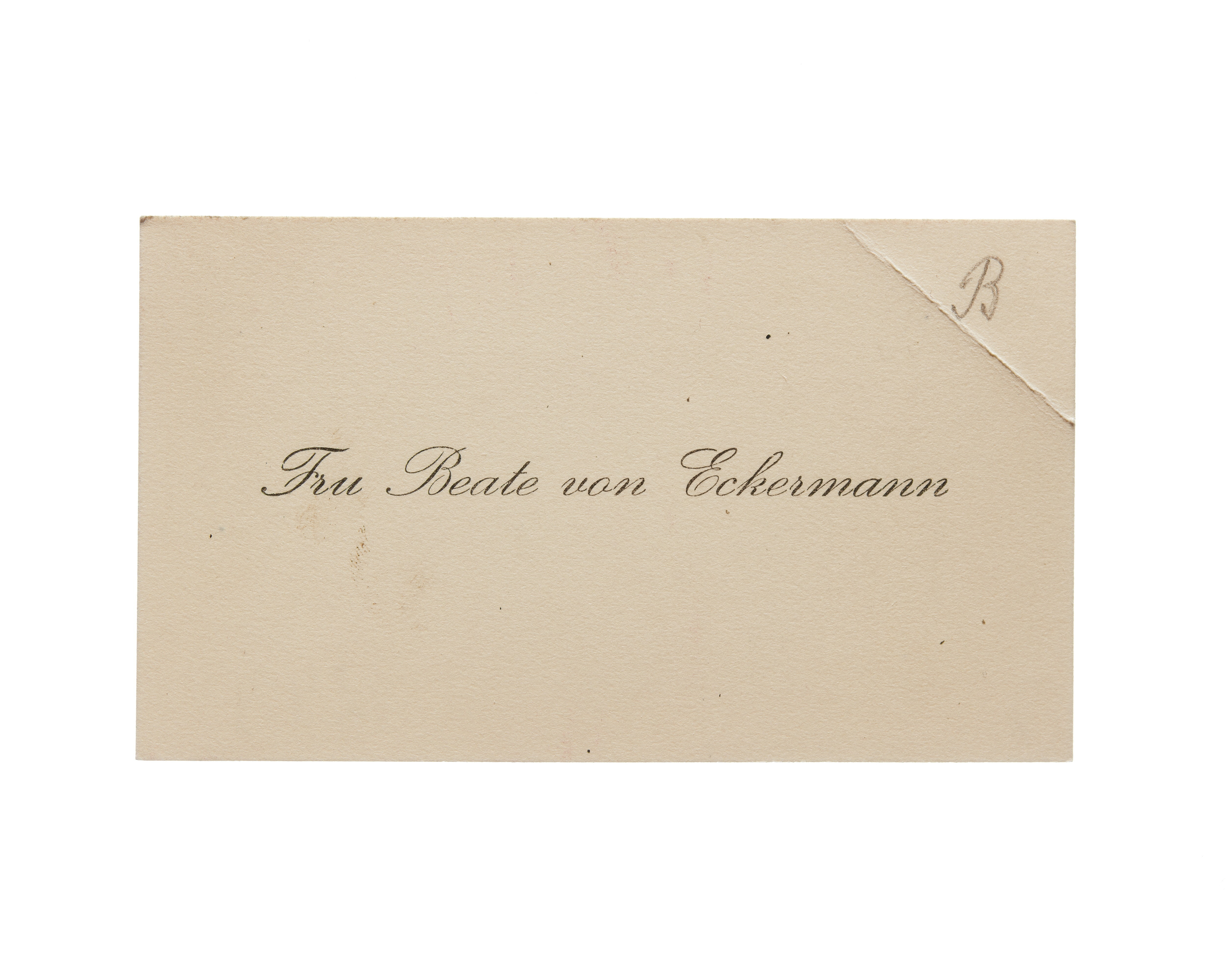 Visitkort från Fru Beate von Eckermann, f. Busch.