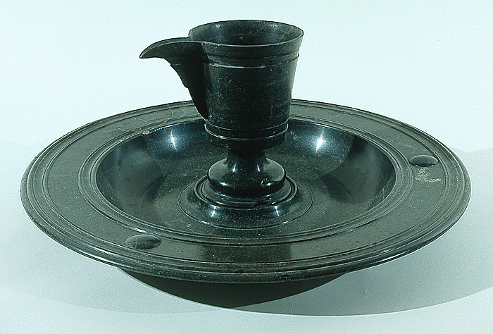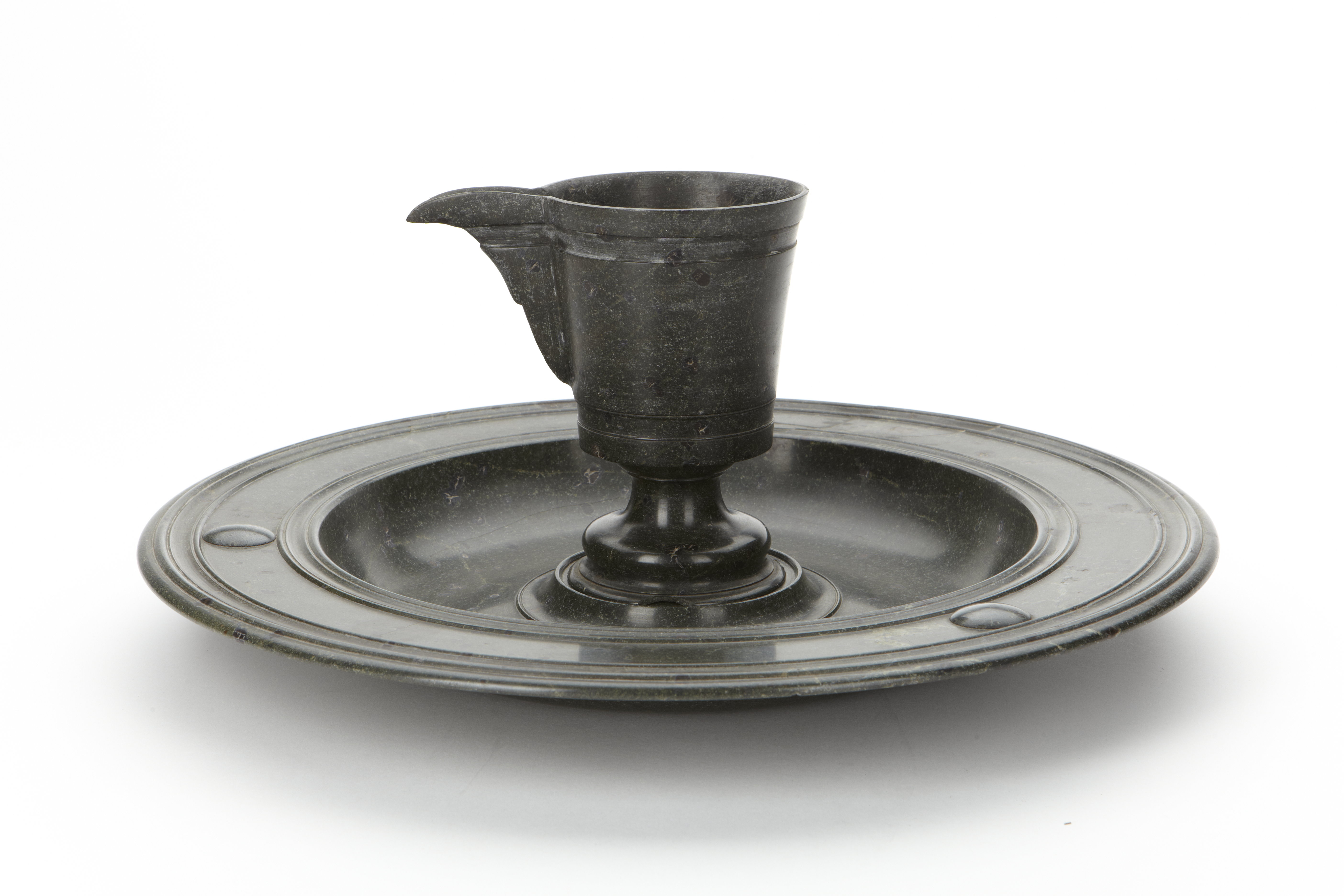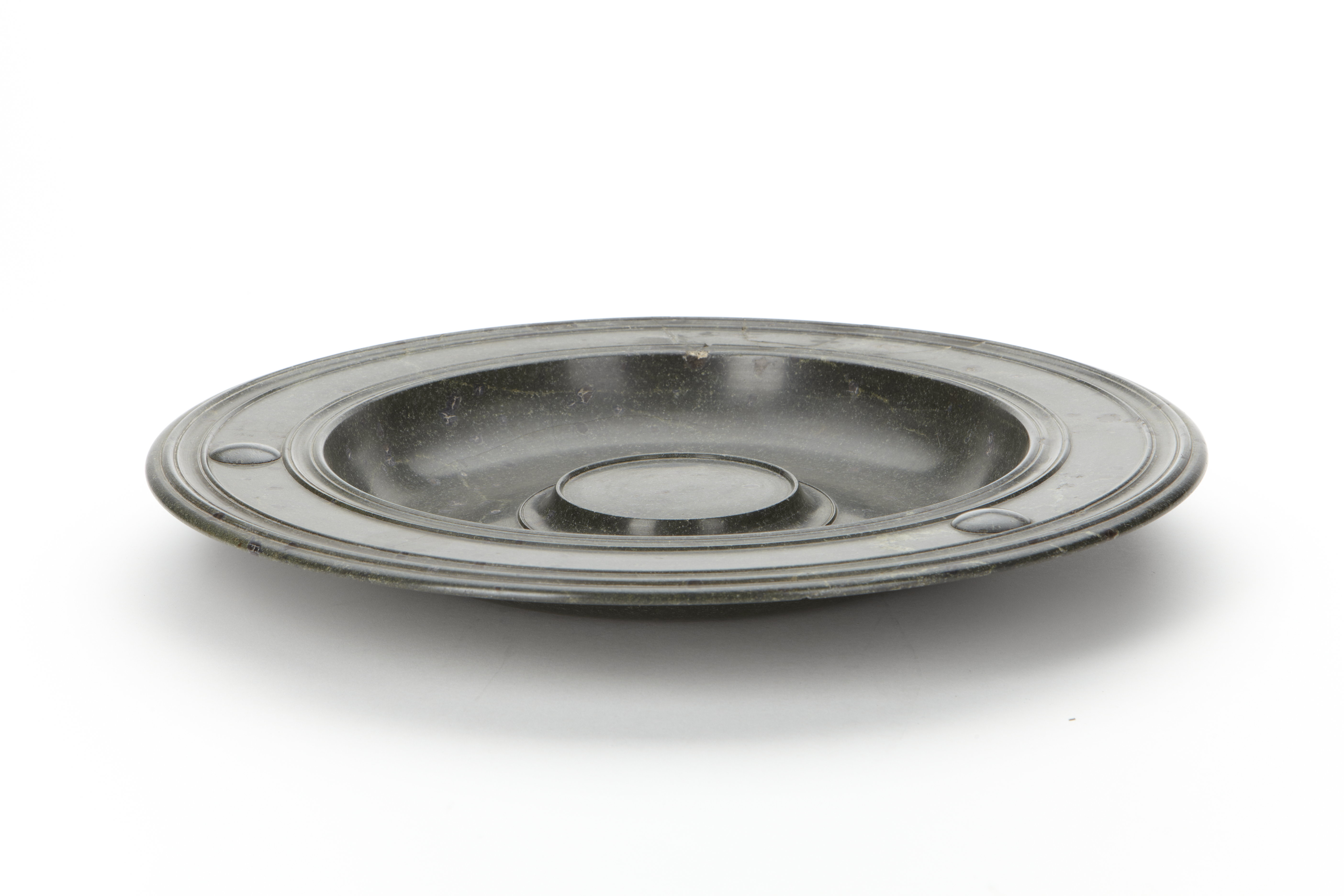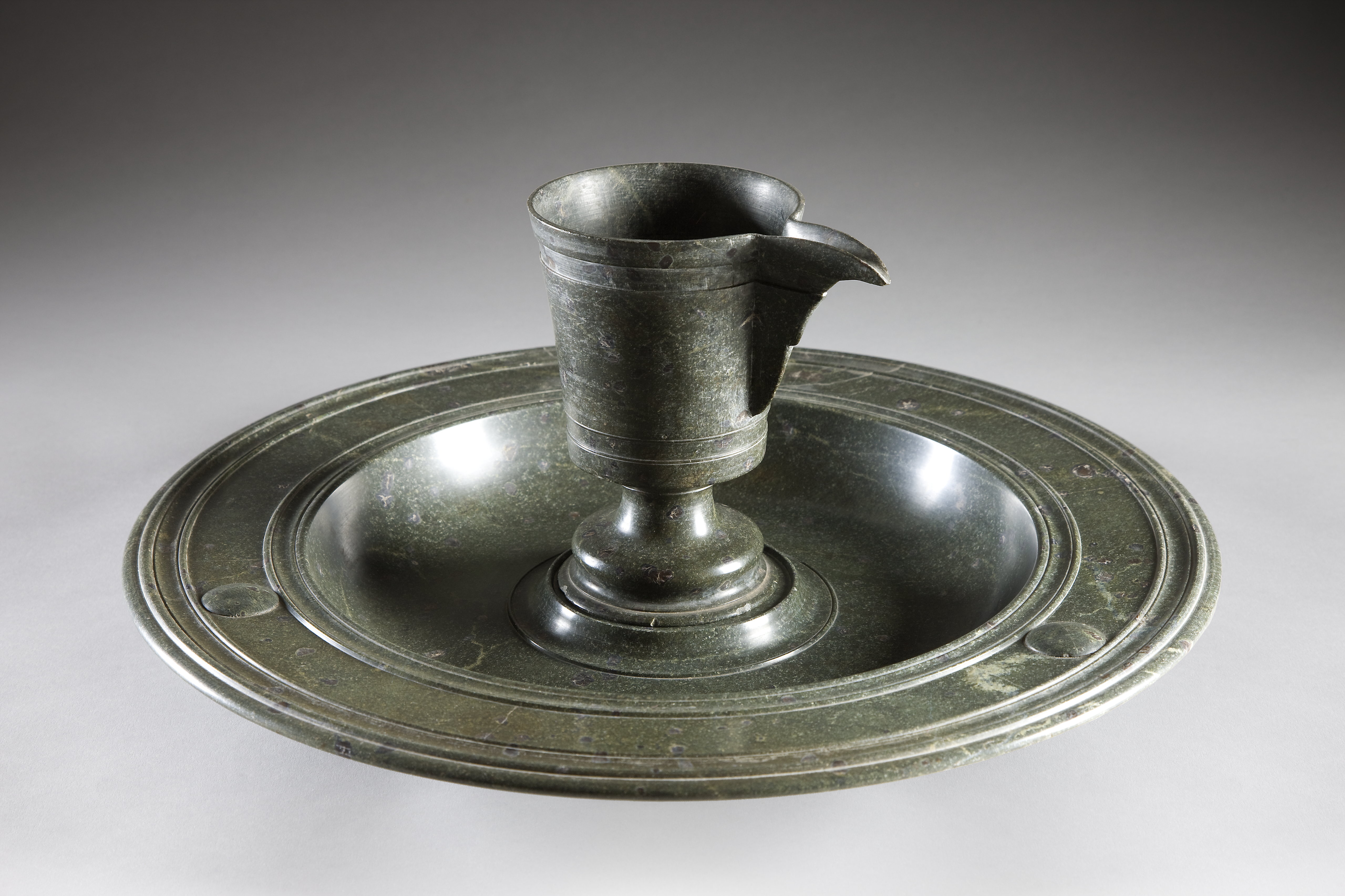 Handfat av svarvad grön serpentin.
