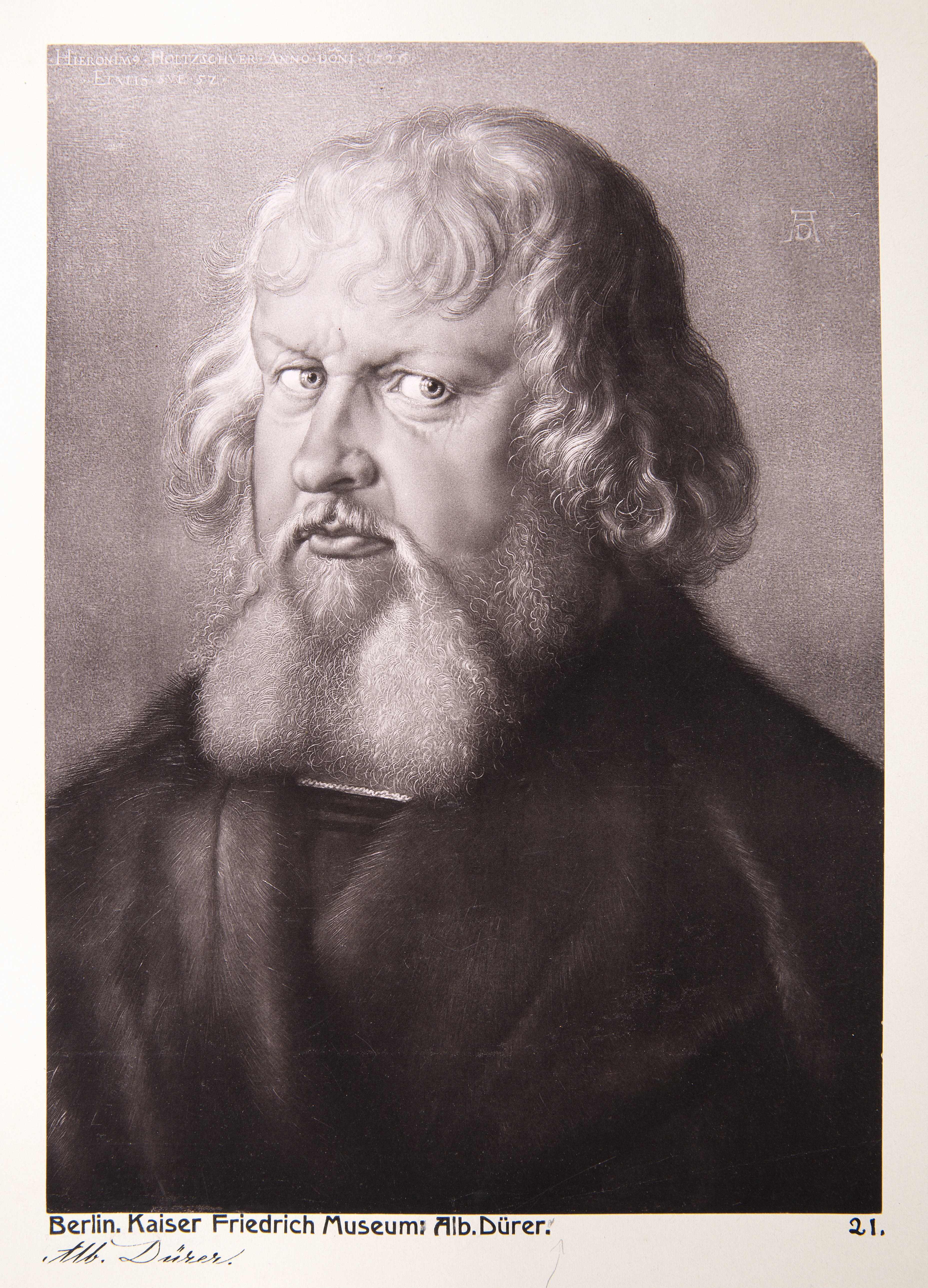 Berlin, Kaiser Friedrich Museum. Målning av Albrecht Dürer: Hieronim. Holzschuher. På originalet: "Berlin. Kaiser Friedrich Museum. Alb. Dürer." Fotografierna LXVI:K.A.01.-22. är inköpta av Johanna Kempe, f. Wallis, under hennes resor genom Tyskland och Schweiz tillsammans med fröken Caroline Pflaum på 1880-1890-talet.