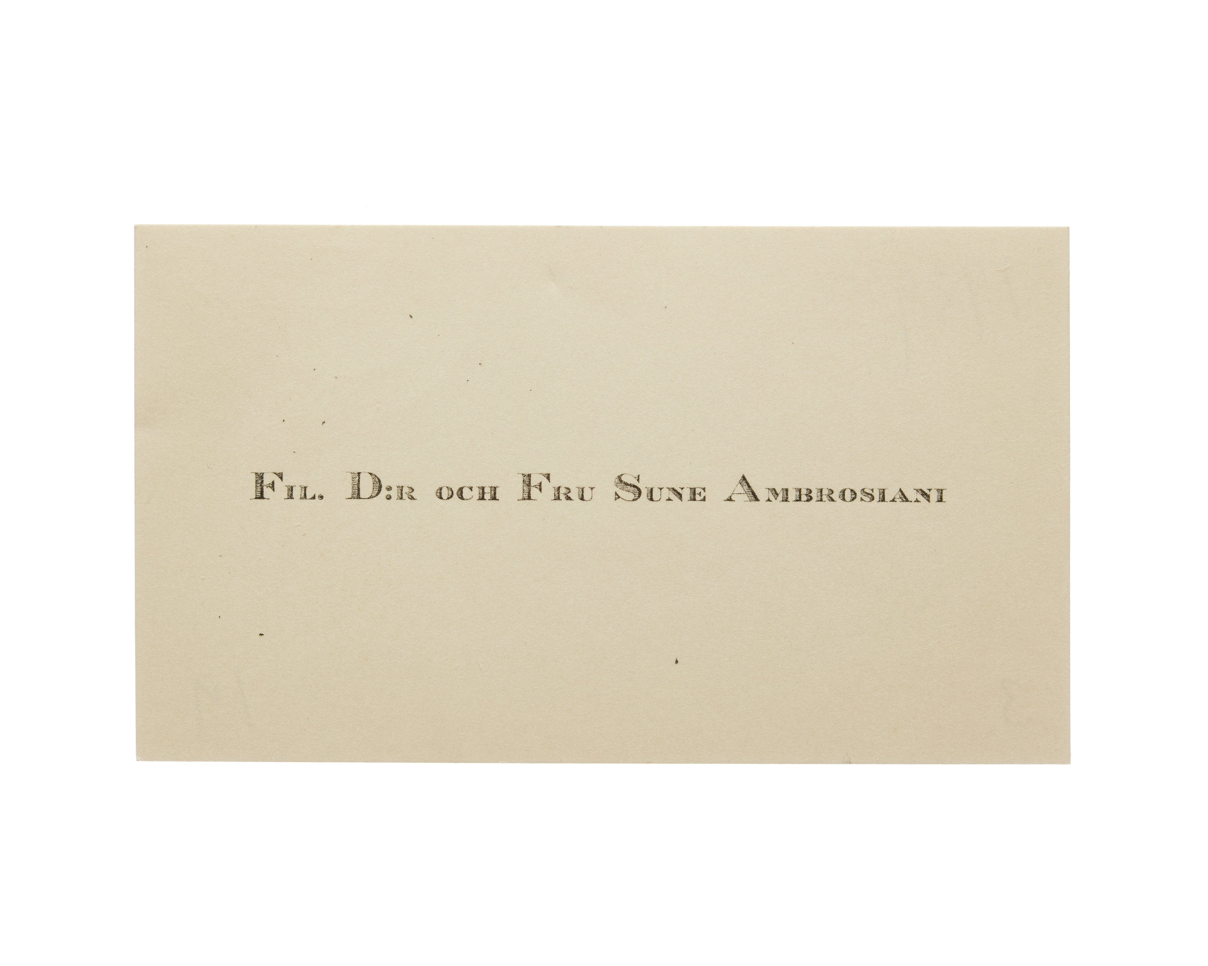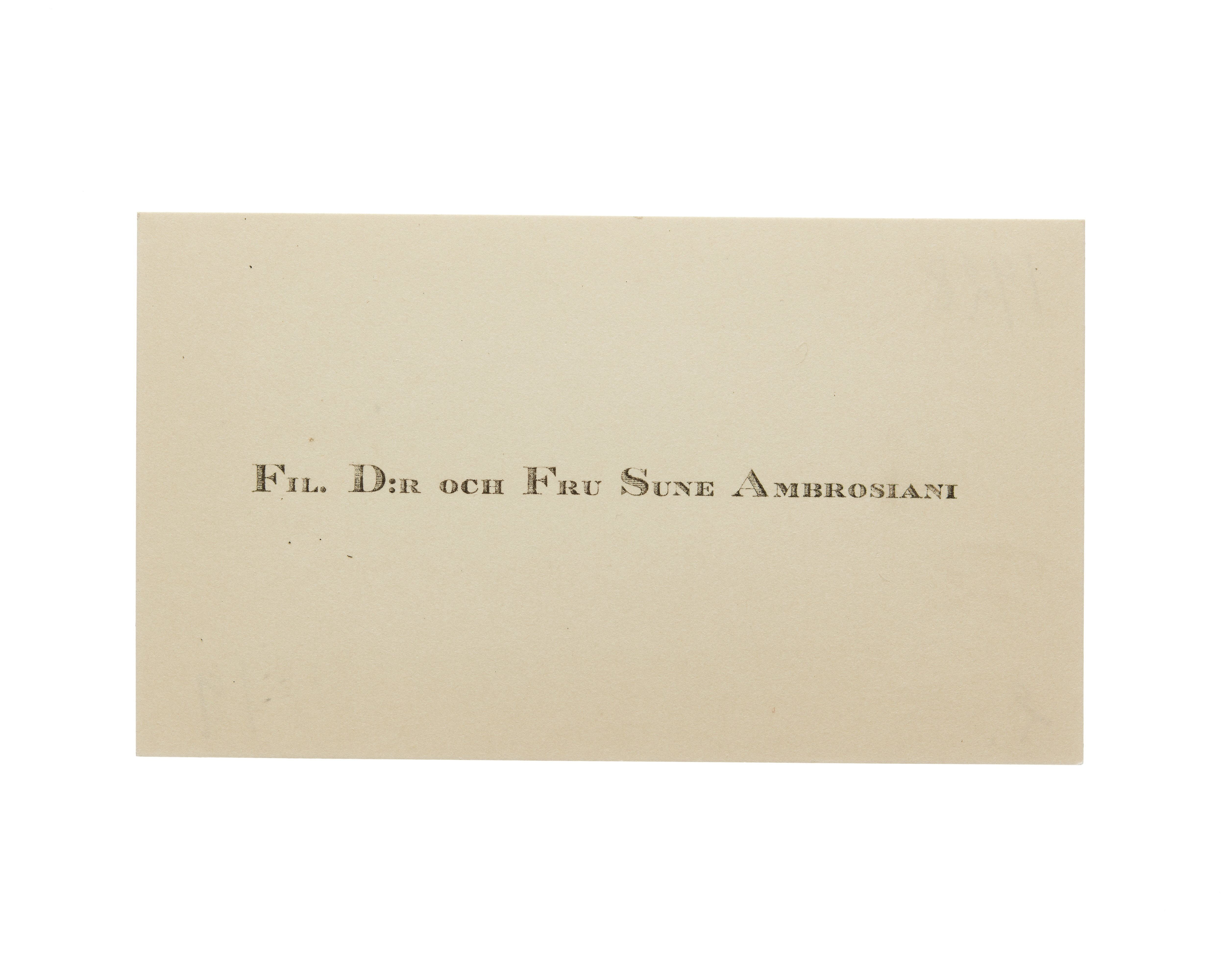 Visitkort från Fil. Dr. och Fru Sune Ambrosiani.