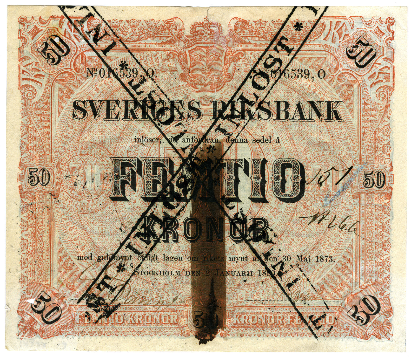 Upphov: Sveriges riksbank, Ekonomiska museet - Kungliga myntkabinettet/SHM (PDM) Upphovsrätten till detta verk har gått ut och är därmed fritt att använda på alla sätt. Ange gärna upphovsperson om denne är känd.