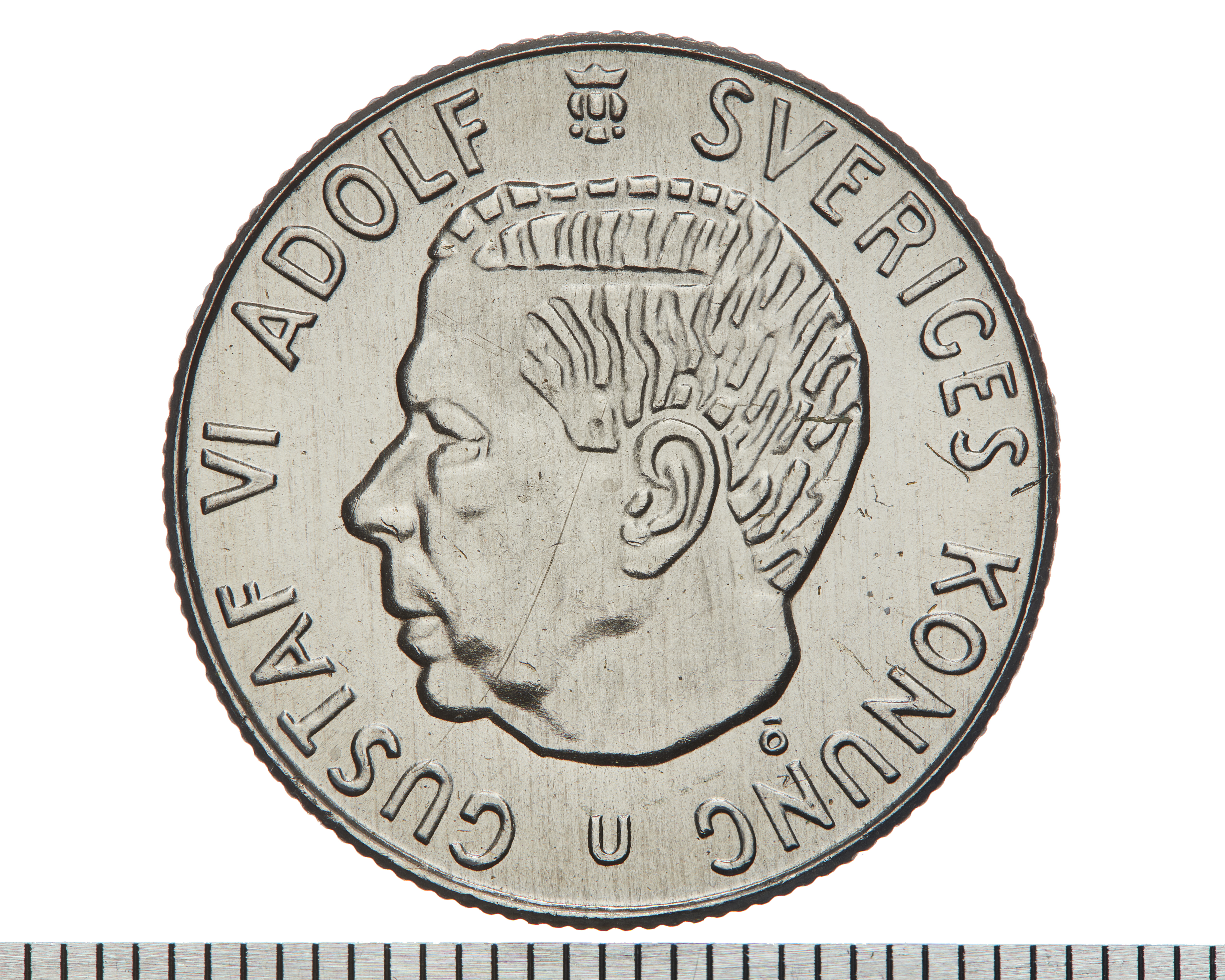 Upphov: Gustaf VI Adolf av Sverige. Media: Bonnevier, Helena. Ekonomiska museet - Kungliga myntkabinettet/SHM, (CC BY 4.0) Du får bearbeta och dela verket för alla ändamål, även kommersiella, så länge du anger upphovsperson och licensgivare.