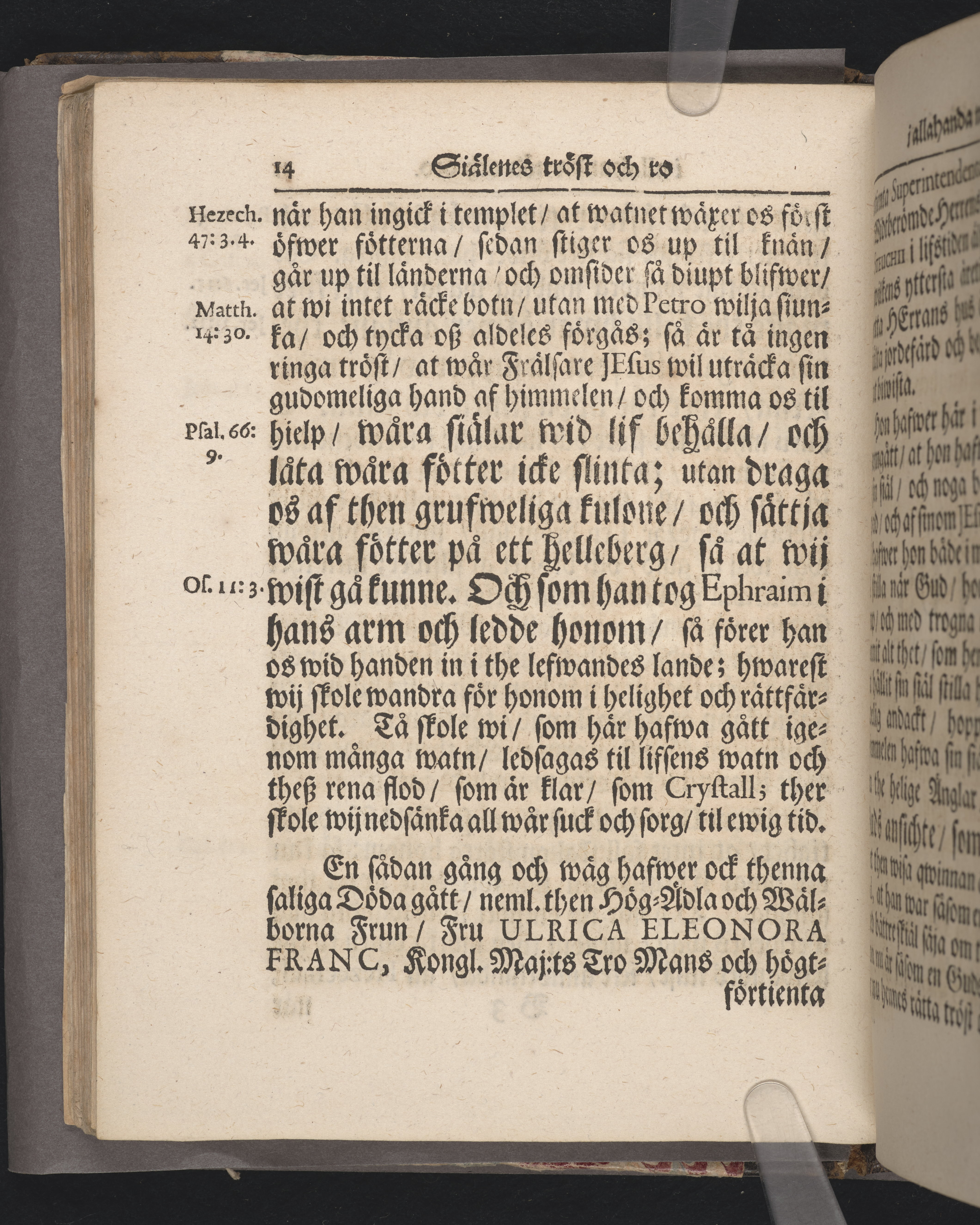 Siälenes tröst och ro, i allahanda nöd och oro. Betrachtad, tå ... fru Ulrica Eleonora Franc, kongl. Maj:ts tro-mans och högtförtienta superintendents öfwer Wermland och Dahl ... Joannis Steuchii i lifstiden älskeliga fru och maka, blef ... befordrad til grafwen, i Kihls kyrckia, then 1 augusti 1725. Af Axel Noreen ... Stockholm, tryckt hos Joh. L. Horrn, kongl. ant. arch. boktr.