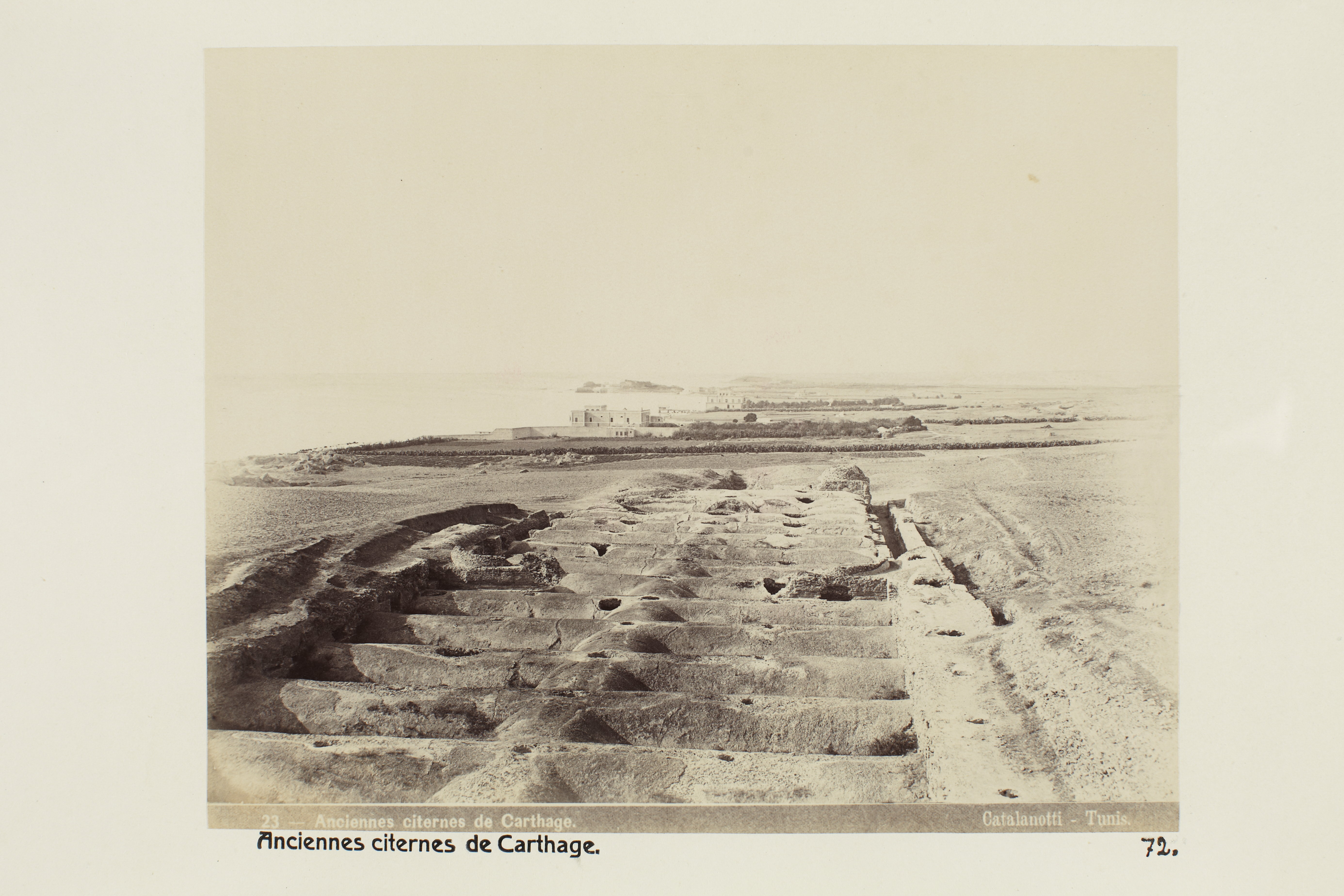 De gamla cisternerna i Karthago, Tunisien. Foto från resa genom Algeriet och Tunisien samt åter över Schweiz, 11 februari - 19 maj 1889. Samtliga foton i gruppen LXVI:F. är inköpta av Wilhelmina von Hallwyl i Alger, Biskra, Tunis, Constantine, Oran och Blidah vid hennes vistelse i nämnda städer tillsammans med sin make, Walther von Hallwyl, sin mor, Johanna Kempe, f. Wallis, dottern Irma samt fröknarna Caroline Pflaum och Ida Uhse. Uppgifterna kommer från fröken Ida Uhses reseanteckningar.