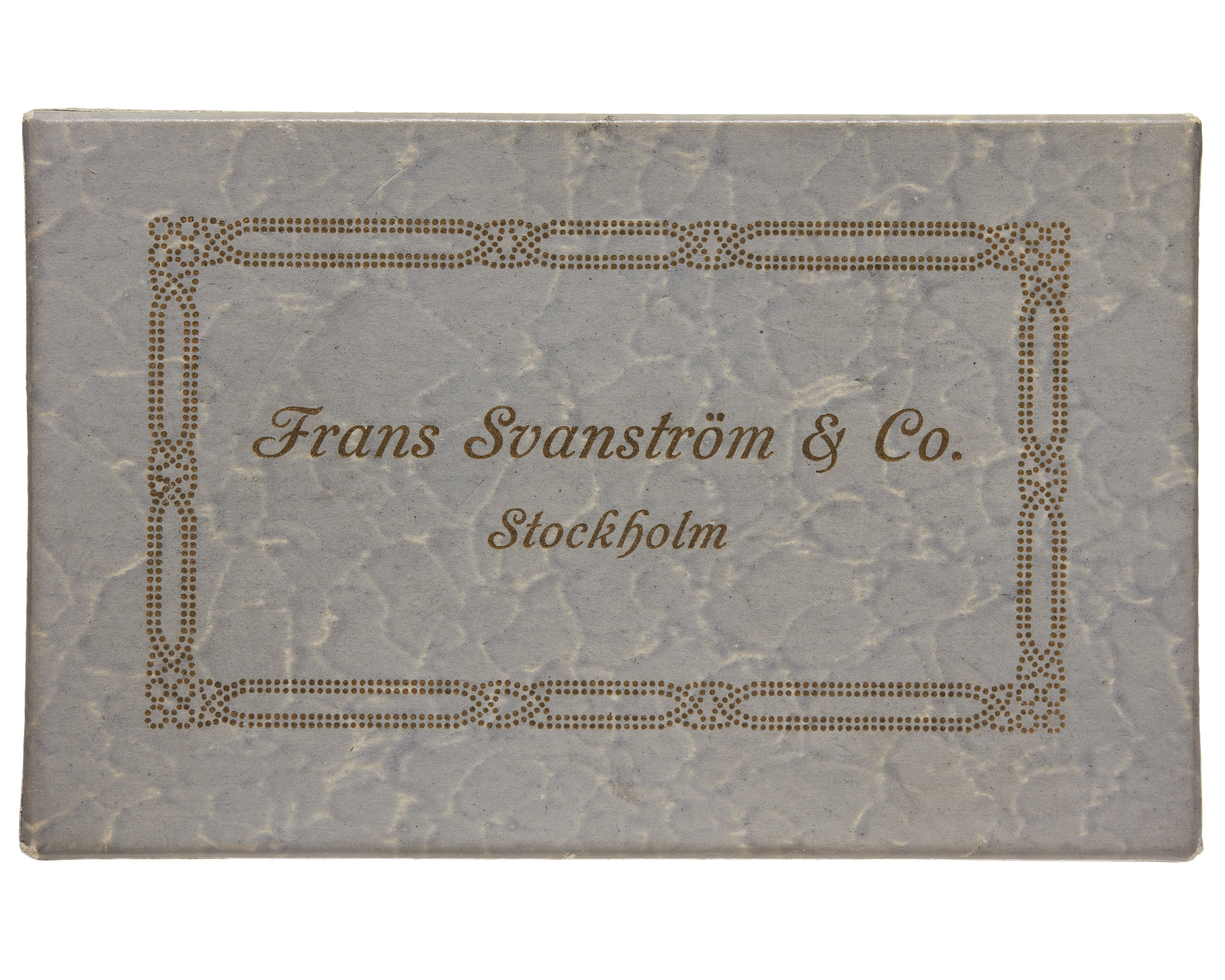 100 visitkort med texten "Grefven och Grefvinnan von Hallwyl" i grå pappask från Frans Svanström & Co., Stockholm.
