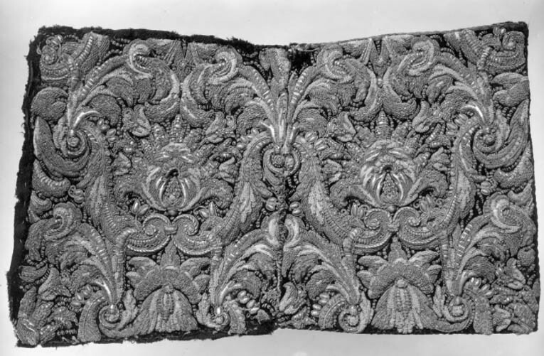 En Kappa till Dito af lika sammet och guldbroderi med perlor. Flera perlor äro borta