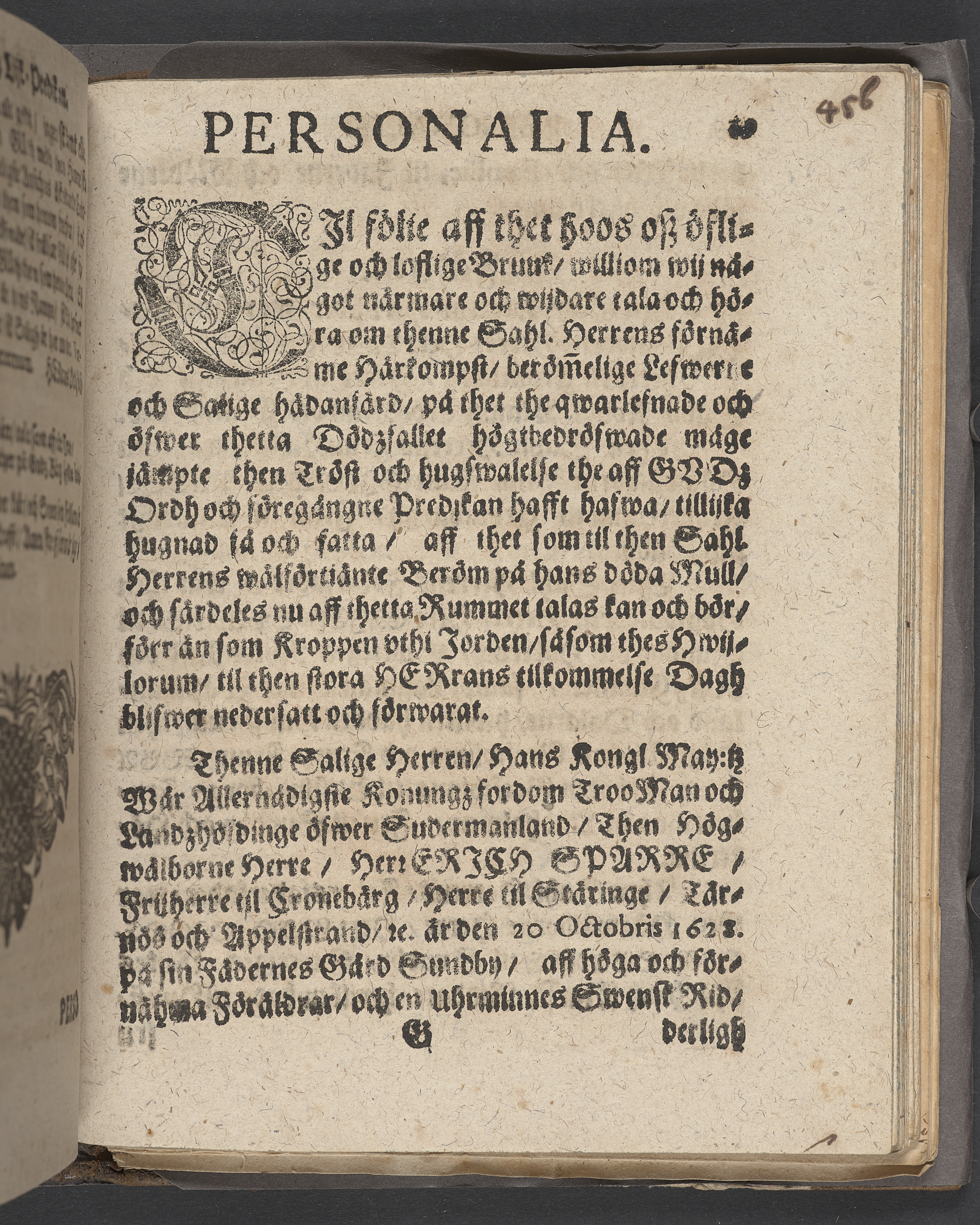 Ahrons blomstrande staf ... i een christelig lijk-predikan, öfwer ... Herr Erich Sparre, frijherre til Kronebärg, herre til Stäringe, Tärnöö och Kappastrand, tå hans saligen döde lekamenmedh een höganseenlig och folckrijk försambling beledsagades ifrån Allhelgona kyrckia i Nyköping at nidersättias och begrafwas i St. Nicolai, den 23. februarij åhr 1679. Til hörsam ödmiuk tiänst enfaldigst förestält och förklarad aff Abrahamo Walingio, p. & p. Nycop. ad occid. Stockholm, tryckt hoos Niclas Wanlijff, kongl. booktr. åhr 1680.