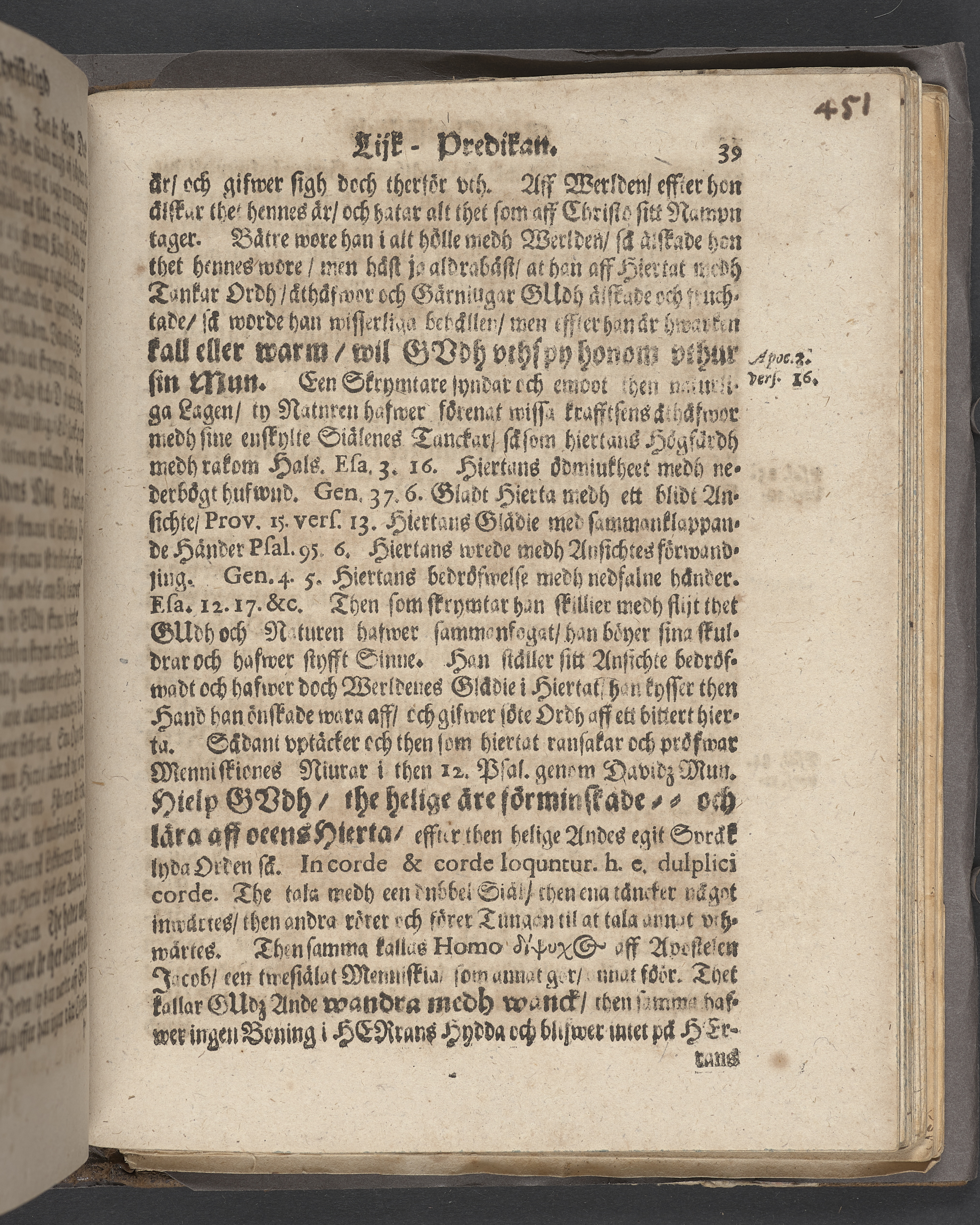 Band m. pärmar av marmorerat papper, rygg och hörn av fårskinn. Pärmfyllnad: papp. Inlagan häftad på tre bind, fast rygg. 16 skrifter samlade i en volym.