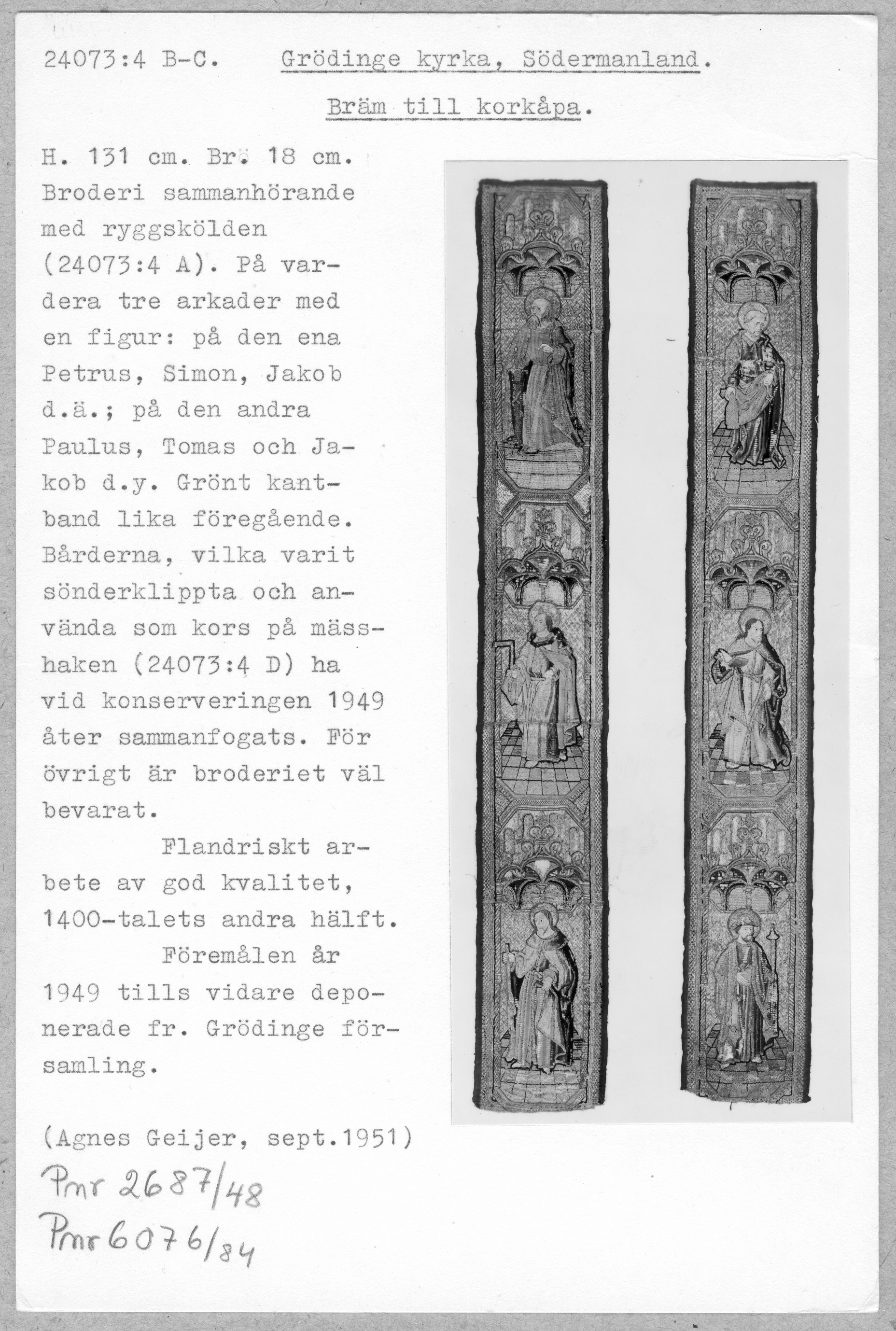Broderat bräm med S. Paulus, S. Tomas och S. Jakob dy. deposition från församlingen.