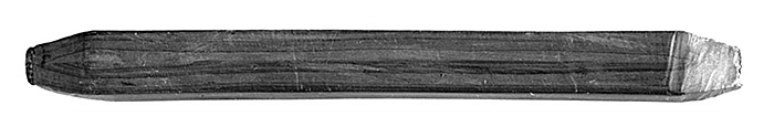 Fyrsidig, bestående av en grå gummistång, klädd med cederträ, båda ändar handspetsade. Tillhört inventarierna i Wilhelm H Kempes privata kontorsrum, inrymt i Schinkelska huset, dåvarande adress Kornhamnstorg 2, ( nuvarande Kornhamnstorg 4), Stockholm.