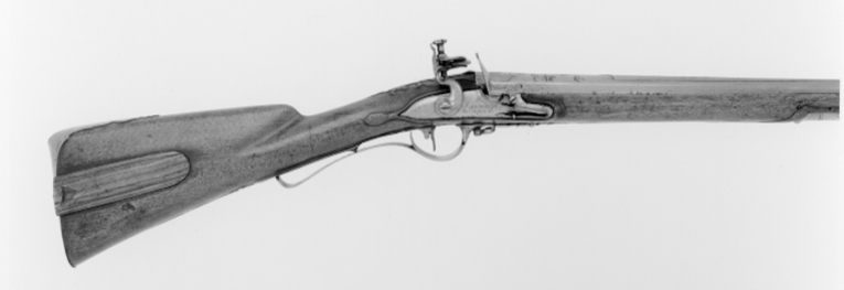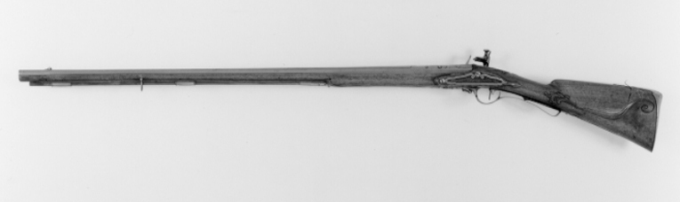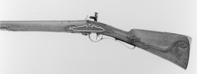 Rund, slätborrad pipa, stämplar på undersidan: ZEL (Stöckelnr 1774), Sachsens vapen (Stöckelnr 1615?) samt H.G. På kammaren inlagt i silver rankornament, jägare, 2 hundar och två öppna kronor. Därframför lång siktbana, på bakre änden inlagt en öppen krona samt spegelmonogram F (Fredrik I av Sverige?). Guldfodrat fänghål. Riktmedel: Lång siktbana, skålat sikte på svansskruvbladet, korn av silver. Fästning: Pipan fäst med krysskruv, ett (urspr. två) pipstift av stål samt däremellan rembygelns skruv. Flintlås med välvt låsbleck, graverad signatur framför hanen: "REICHARDT // STOCKHOLM". S-formig, rundad hane med platt käkskruv. Invändiga skruvhuvuden blånerade. Fästning: Två låsskruvar. Helstock av valnöt med enkla, skurna bladornament, kolvlådelock av stockens trä. Beslag av stål, bakplåt, varbygel med lång bakre arm, därpå graverat: S, kortare främre arm. På varbygel och bakplåt graverad linjedekor. Genombrutet sidbleck av låsbleckets form. Tre rörkor. Näsband av horn. Rembygel av stål framför mellanrörkan, den andra rembygeln sitter framför varbygelns framstolpe. Tillbehör: Laddstock, 1: 930 mm, hornskodd i ena änden, invändigt gängad stålskoning, l: 165 mm i den andra.