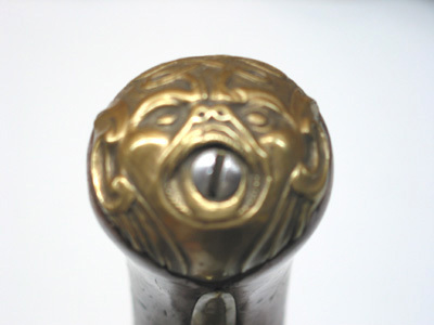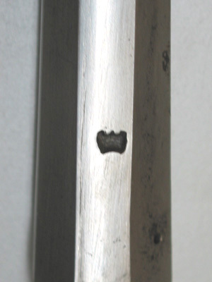 Rund, rakräfflad pipa med sex skålade räfflor, kantig kammare, övergång i form av en dubbel ring. På v sida mycket otydlig stämpel A D(?), på kammarens högra sidofas en otydlig stämpel I E ligatur (?). Svansskruvblad med ändblad, mellan skruvhålet och änden graverat 9. Riktmedel: På svansskruvbladet en infilad skålad, spetsoval siktskåra. Inlaxat, spolformigt korn av mässing. Fästning: Två häften. Pipan fäst med krysskruv ovanifrån samt ett pipstift av stål (det främre saknas). Flintlås med plant låsbleck, graverad dekor i form av stiliserade, tunna bladrankor med talrika nerver. S-formig hane med lös överkäke, käkskruv med päronformigt huvud. Fängpanna med fasetterad utsida, skålad kantlist. Batteri med åsad rygg, batterifjäder med fasade kanter, fjäderlöv i form av treflikigt blad. Under batterifjädern en otydlig stämpel. Blånerad nöt utan studel. Fästning och avtryckare:Två låsskruvar. Avtryckare med upprullad ände. Ovalt avtryckarbleck av stål. Helstock av valnöt med snidat blad vid svansskruvbladet. S-formigt svängt, välvt sidbleck av stål med rund mittplatta. Övriga beslag av mässing. Kolvkappa med flik på ryggen, dekor i form av maskaron och rankor lagda i korsande öglor. En + en fasetterad rörka, slät spets. Varbygel med fasade kanter, slät bakre arm till kolvkappan, främre arm avslutad med flikigt bladknippe. Tillbehör: Laddstock av trä, l: 264 mm.