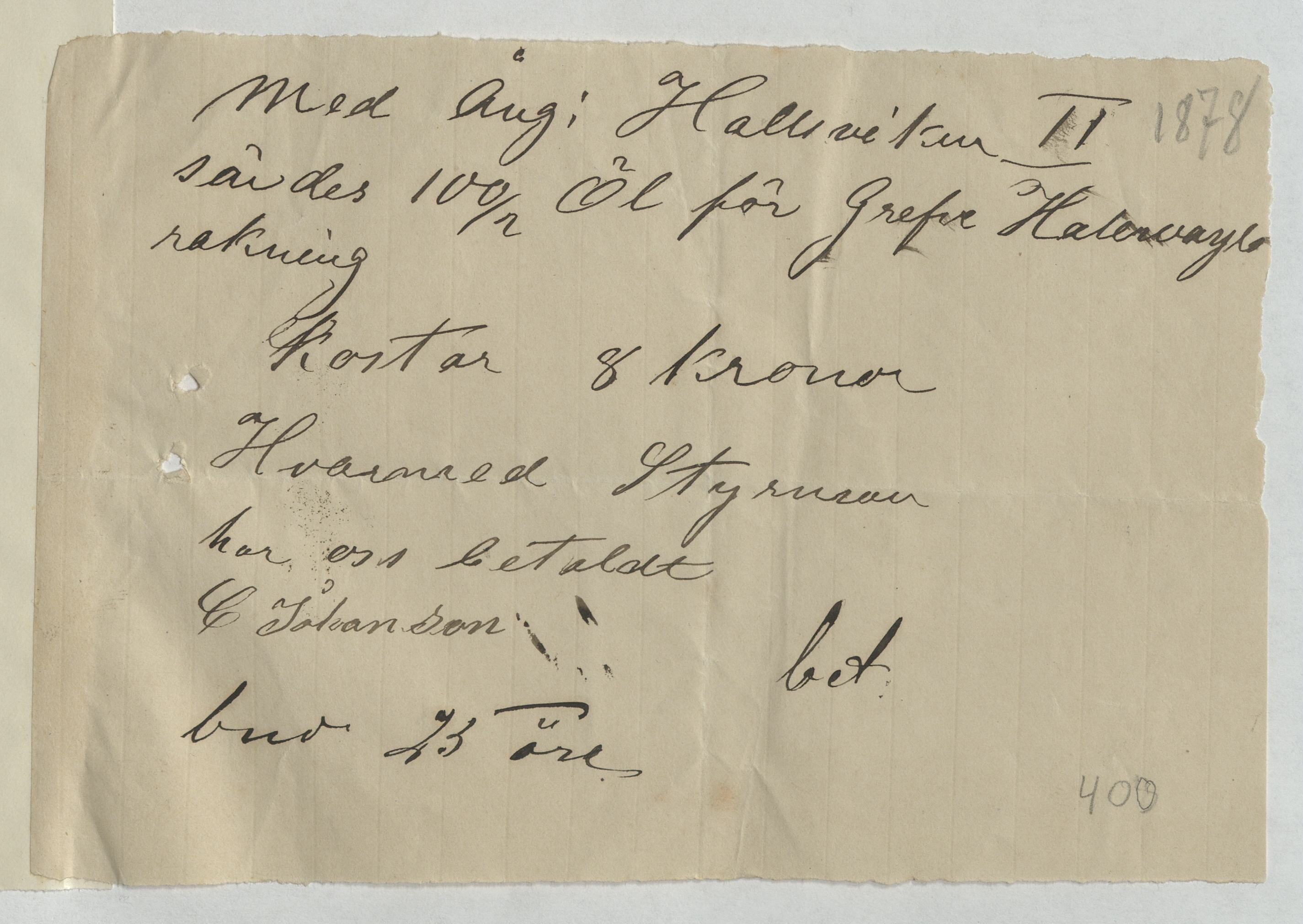 Kvitto från C. Johanson gällande öl som fraktats med ångfartyget Hållsviken II.