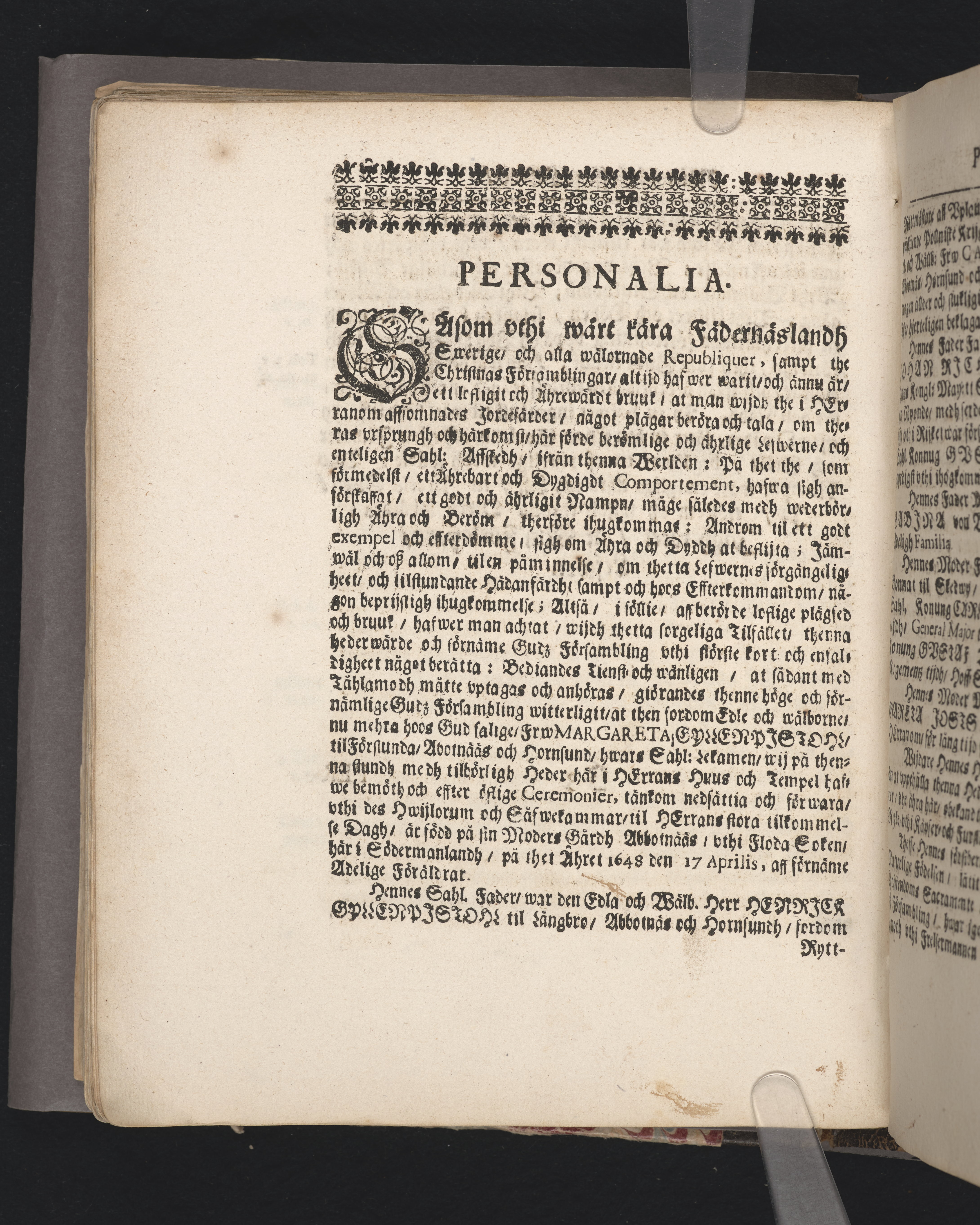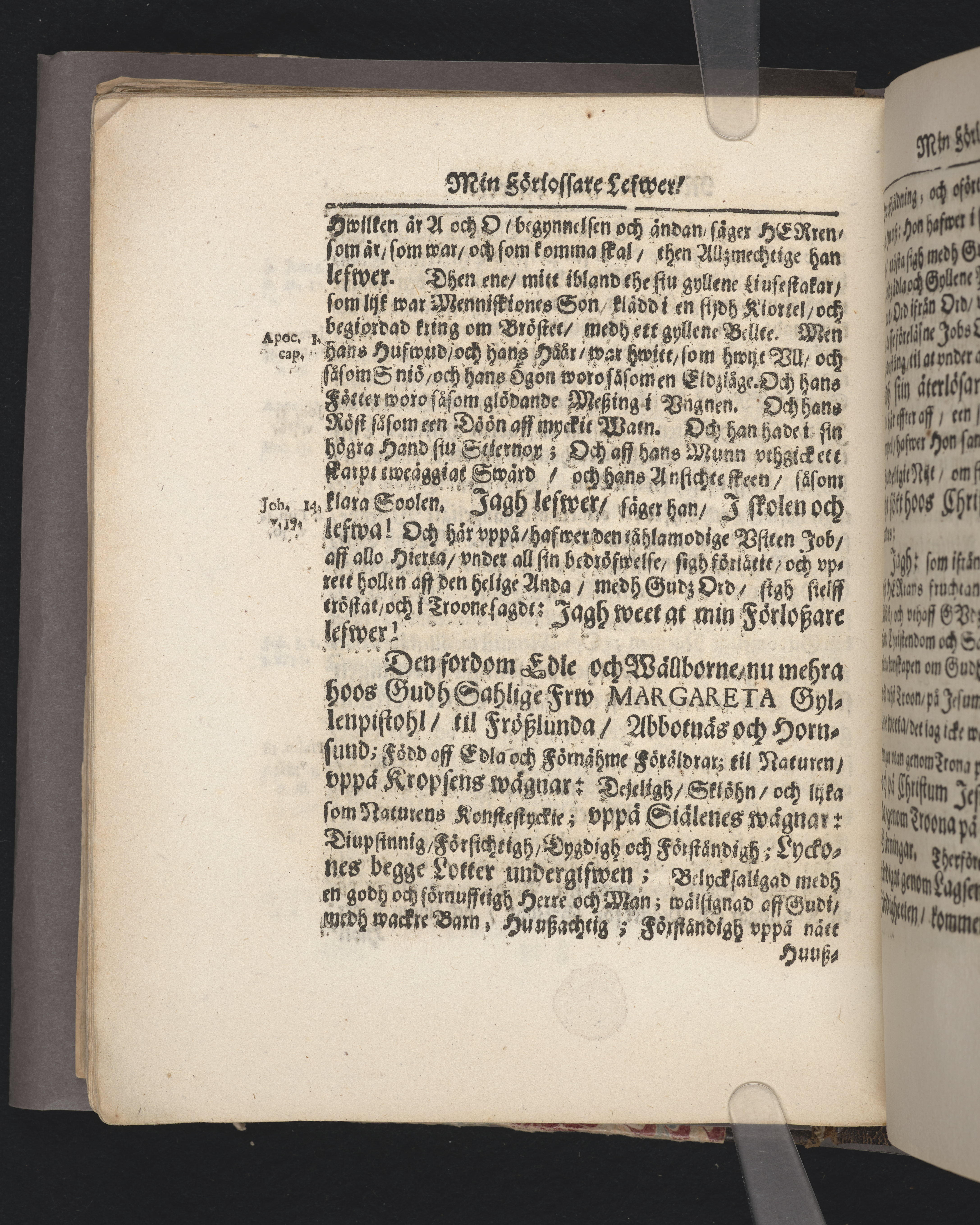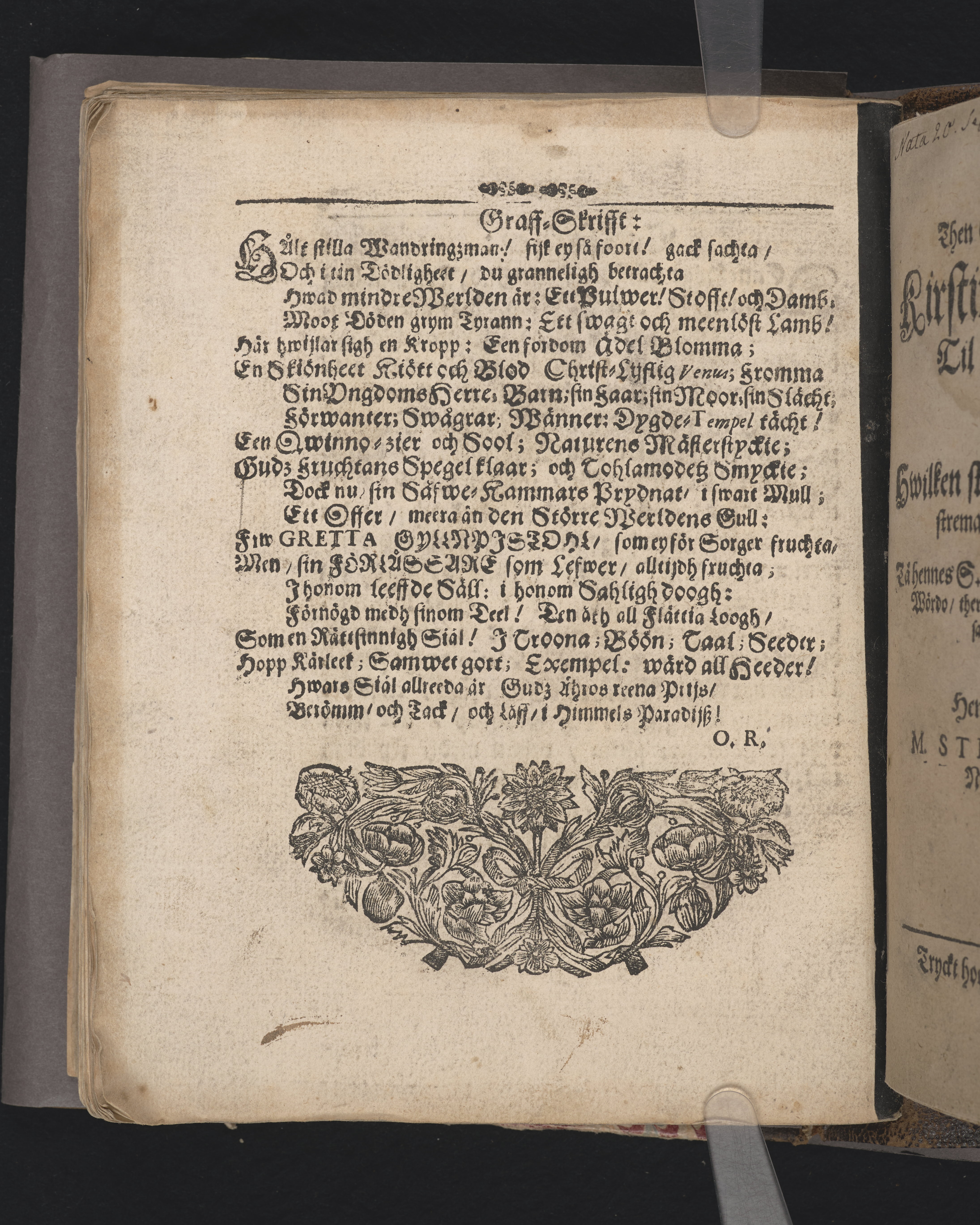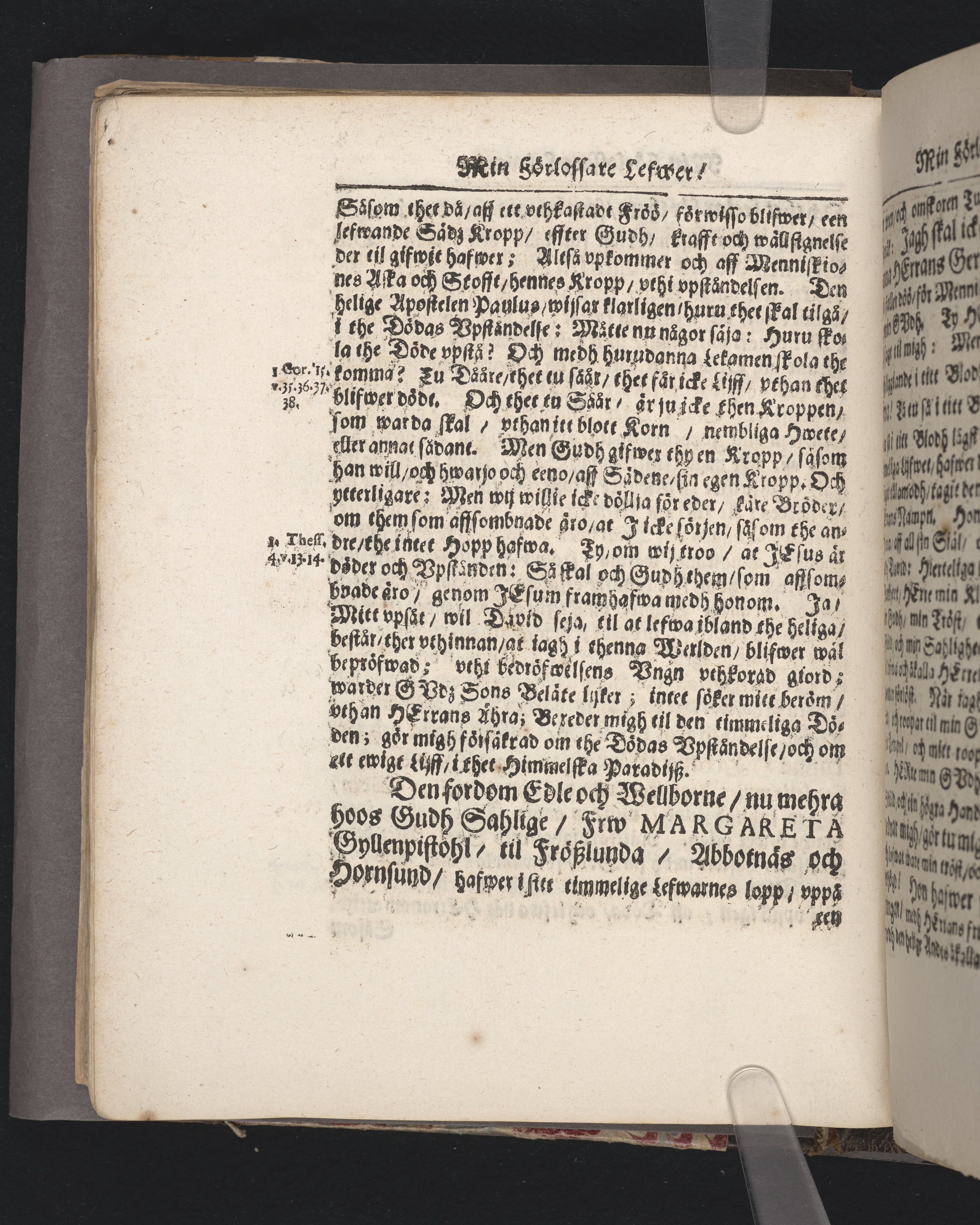 Min förlossare lerwer ... vthi en christeligh lijk-sermon, öfwer ... frw Margareta Gyllenpistohl, til Fröszlunda, Abbotnäs och Hornsund, tå hennes sahlige lekamen ... vthi Nyköpingz stadz östre körkia, den 25 februarii anno 1683, bleff infördh och begrafwen ... förestäld aff Olao E. Rosendalio ... Strengnäs, tryckt aff Zacharia Asp, Cap. booktr.