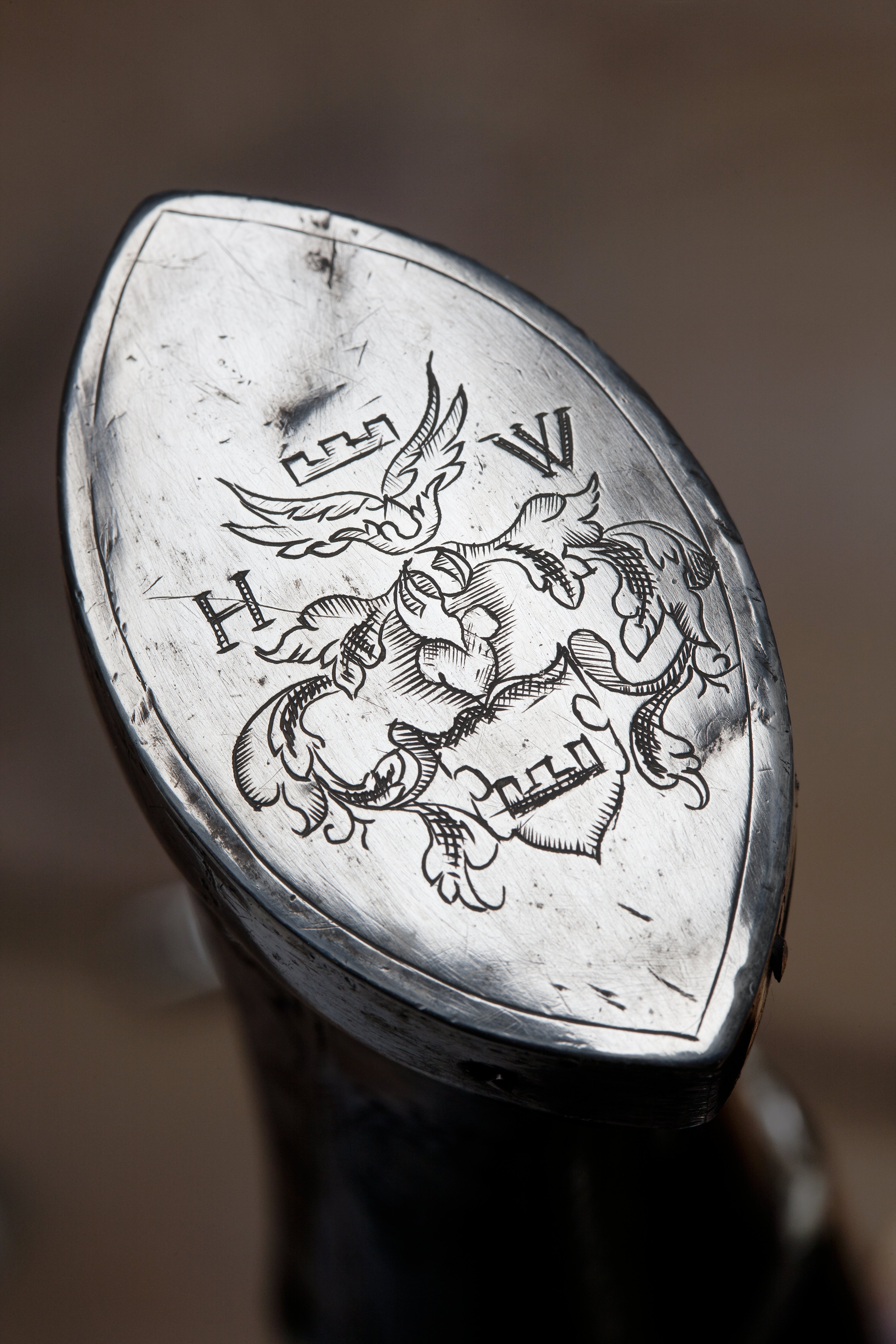 Hjullåspistol med Herman Wrangels initialer och vapen. Pipan tillverkad i Nürnberg c. 1625.