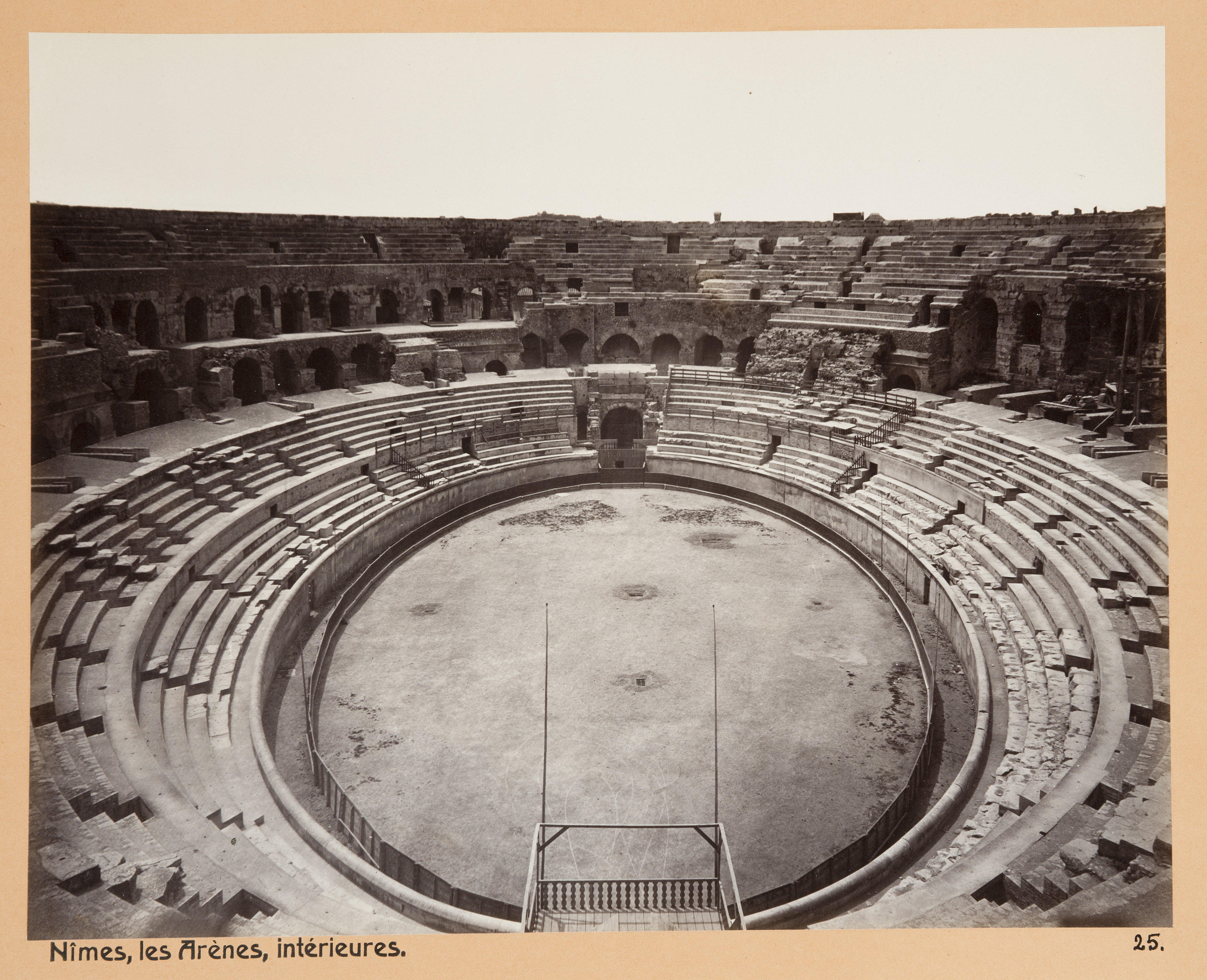 Inuti arenan i Nîmes. Inköpta av Wilhelmina von Hallwyl, f. Kempe, i Turin, Genua, San Remo, Cannes, Marseilles, Nîmes, Nizza, Menton, Spezia, Pisa, Florens, Bologna, Venedig, Verona, Milano, Pallanza, Lugano, Bellagio och Bad Sulz vid hennes vistelse å nämnda orter tillsammans med sin make, Walther von Hallwyl, dottern Irma samt fröken Ida Uhse under deras resa genom Rivieran och norra Italien samt åter öfver Schweiz och Tyskland 20 September 1880 - 20 Juni 1881. Förestående uppgifter lämnade med ledning af fröken Ida Uhses Reseanteckningar.
