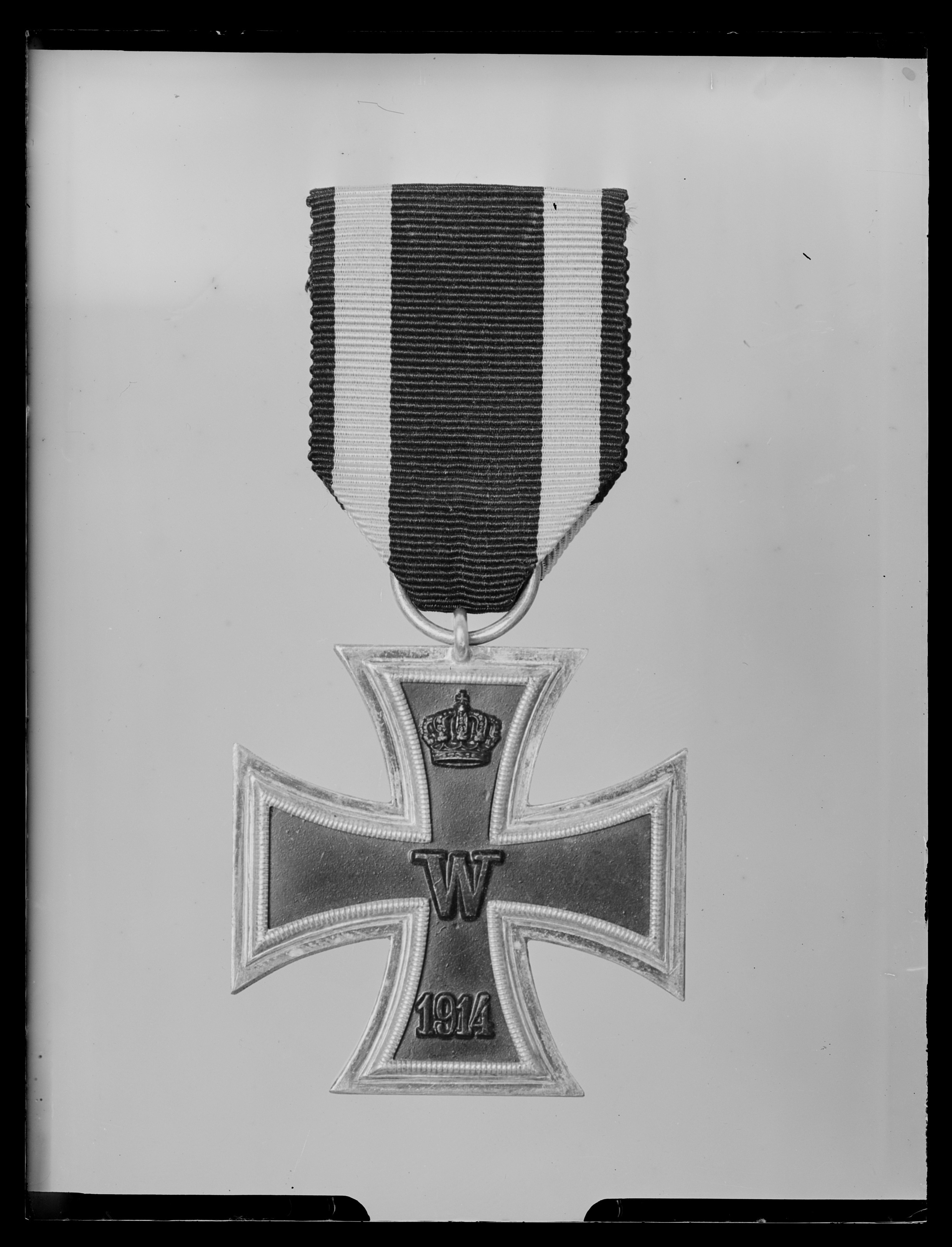 Mantuakors av svärtat järn med infattning av silver. Åtsida: på korsmittenW, på övre korsarmen en kunglig krona, på nedre korsarmen 1914. Frånsida: på korsmitten tre eklöv, på övre korsarmen FW, krönt av kunglig krona, på nedre armen: 1813. På den övre korsarmen en fast, tvärställd ring, däri fäst bandring.