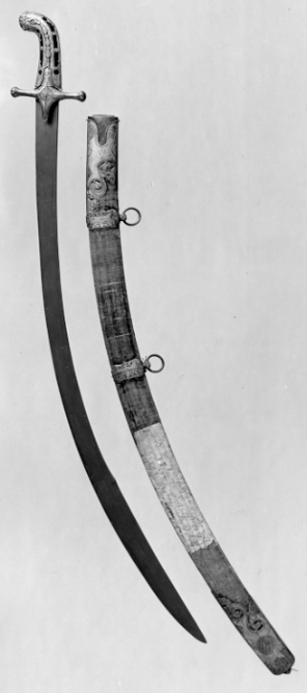 (Sabeln är tagen från vice paschan Ismael, hvilken var vice kommendant i Ofen, när denna fästningen den 2 september 1686 med storm intogs. Från Ungern hitförd af kongl. Rådet och Fältmarskalken Nils Bjelke som skänkte den till konung Carl XI den 17 Mars 1687).