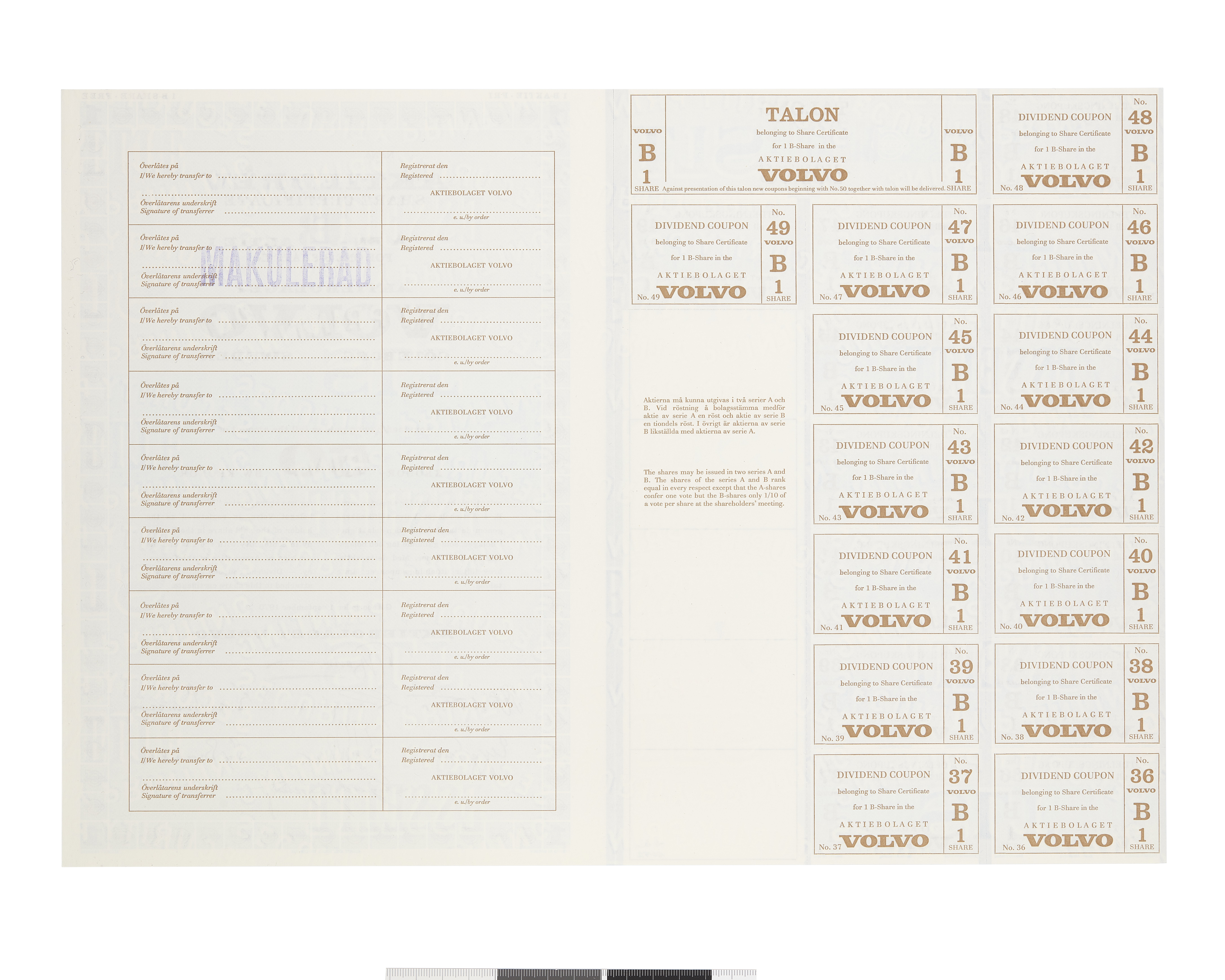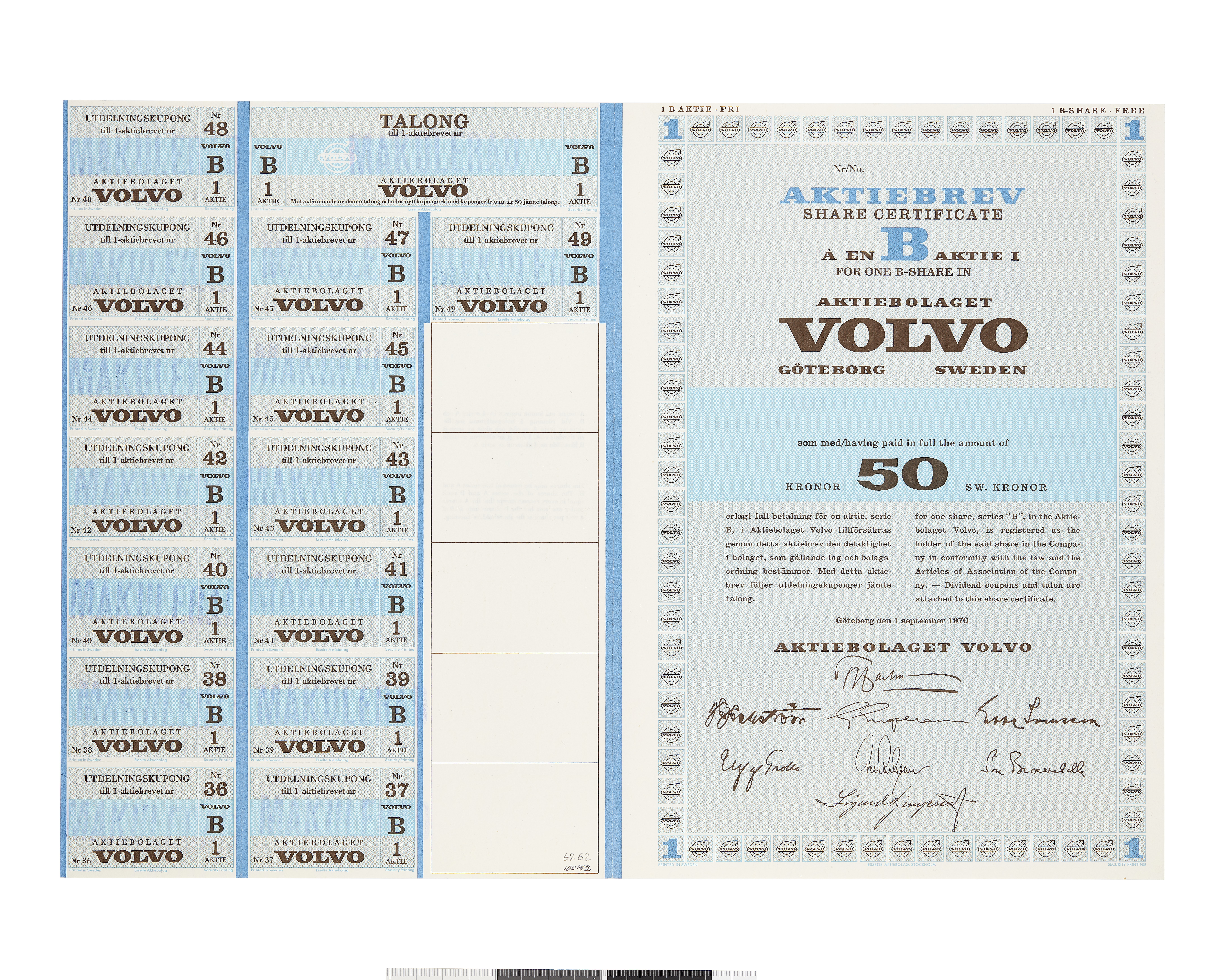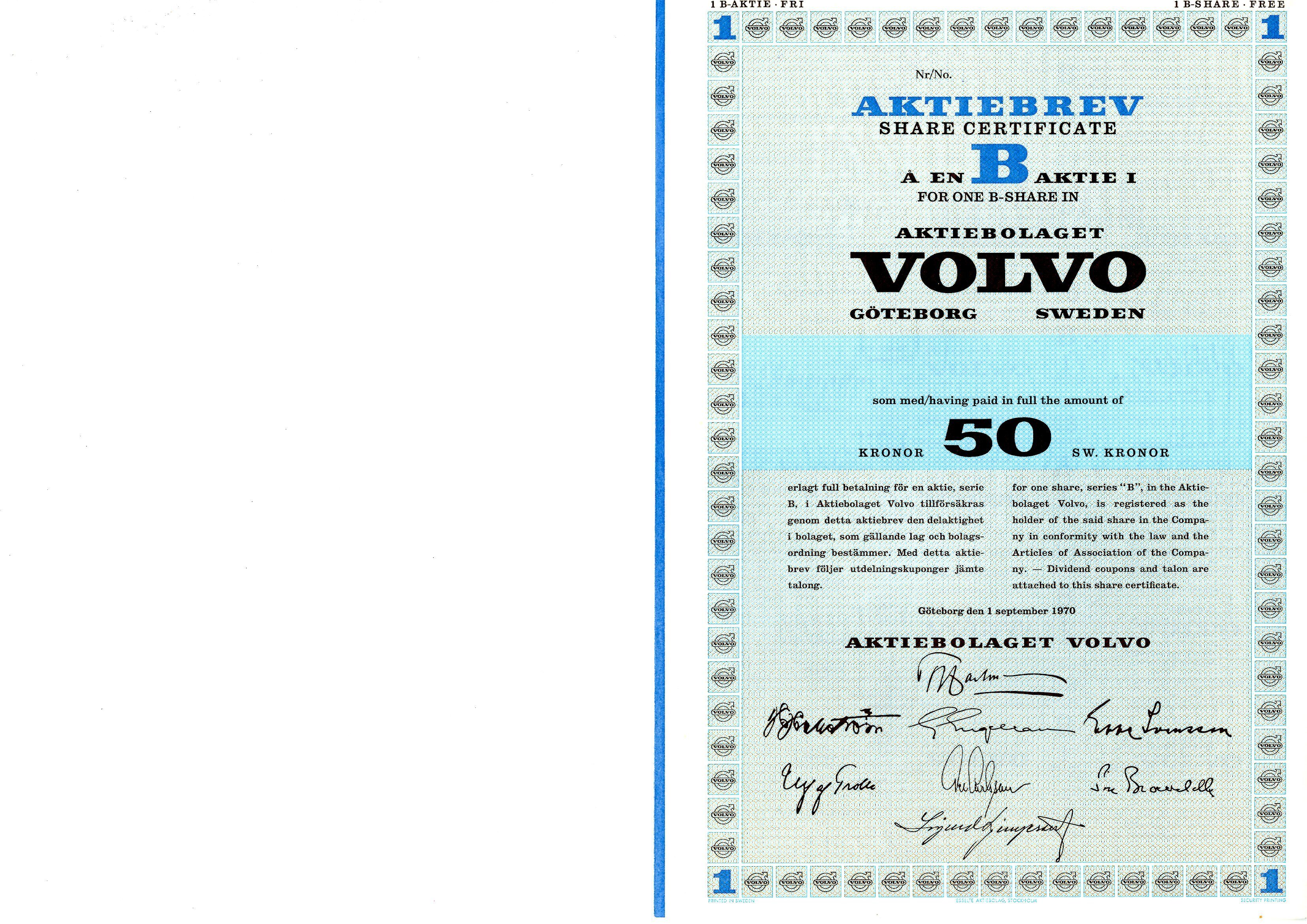 AKTIEBREV SHARE CERTIFICATE Å EN B AKTIE I FOR ONE B-SHARE IN AKTIEBOLAGET VOLVO GÖTEBORG SWEDEN