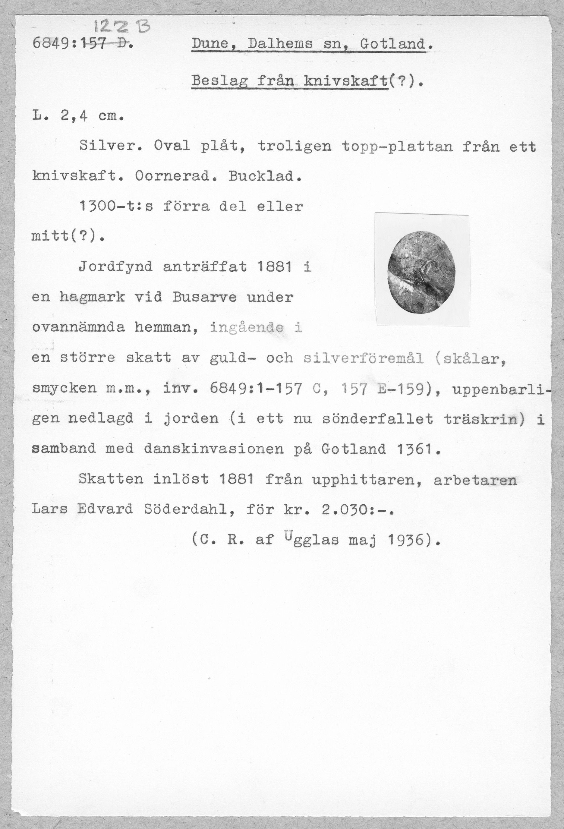 Media: Historiska museet. Historiska museet/SHM, (PDM) Upphovsrätten till detta verk har gått ut och är därmed fritt att använda på alla sätt. Ange gärna upphovsperson om denne är känd.